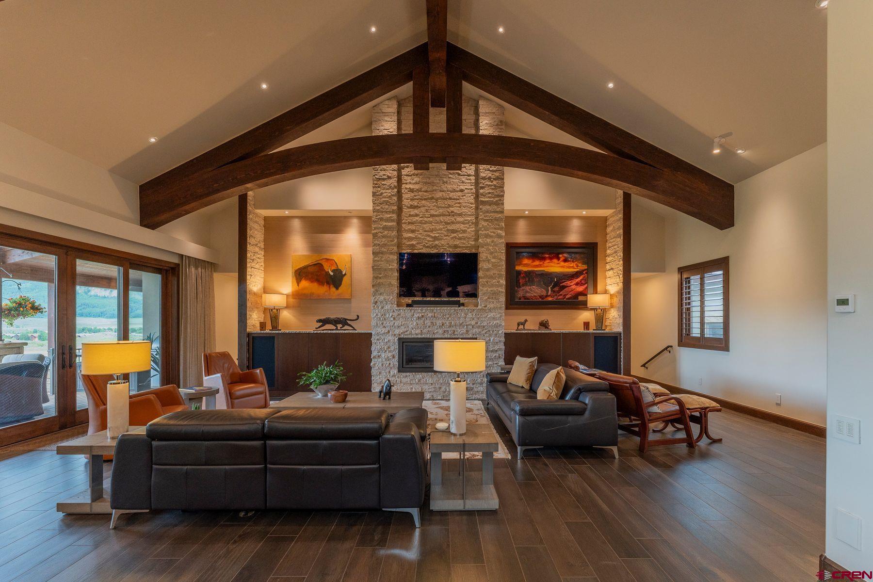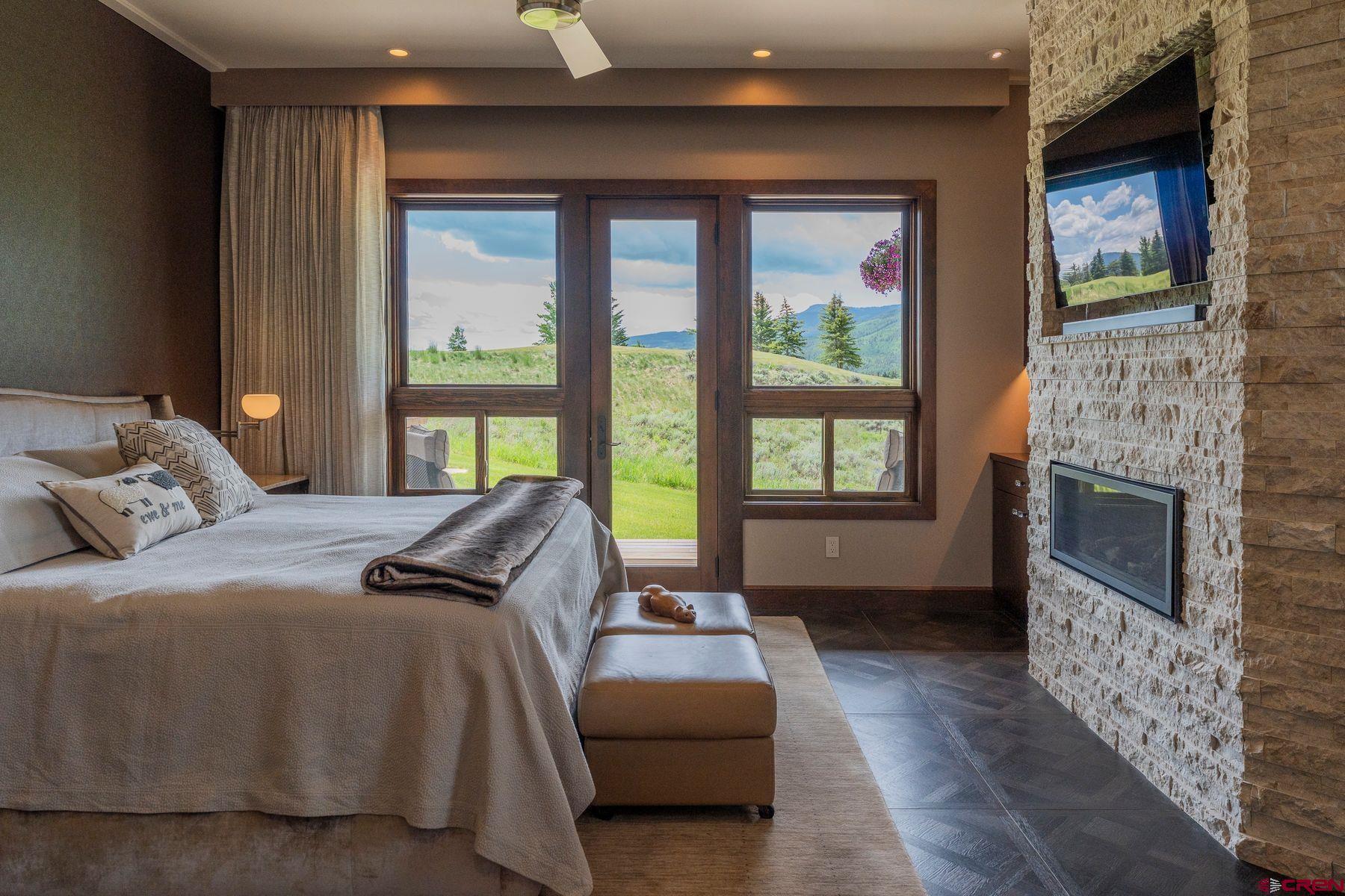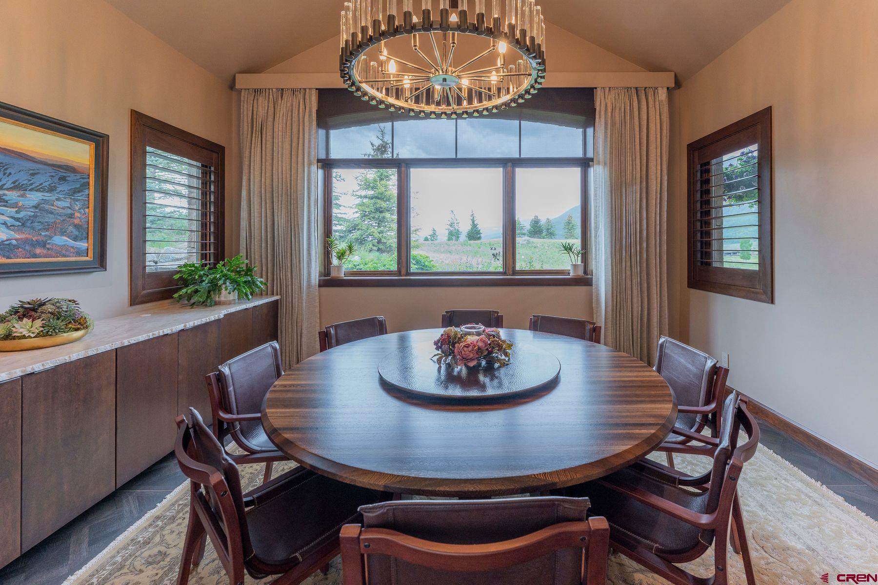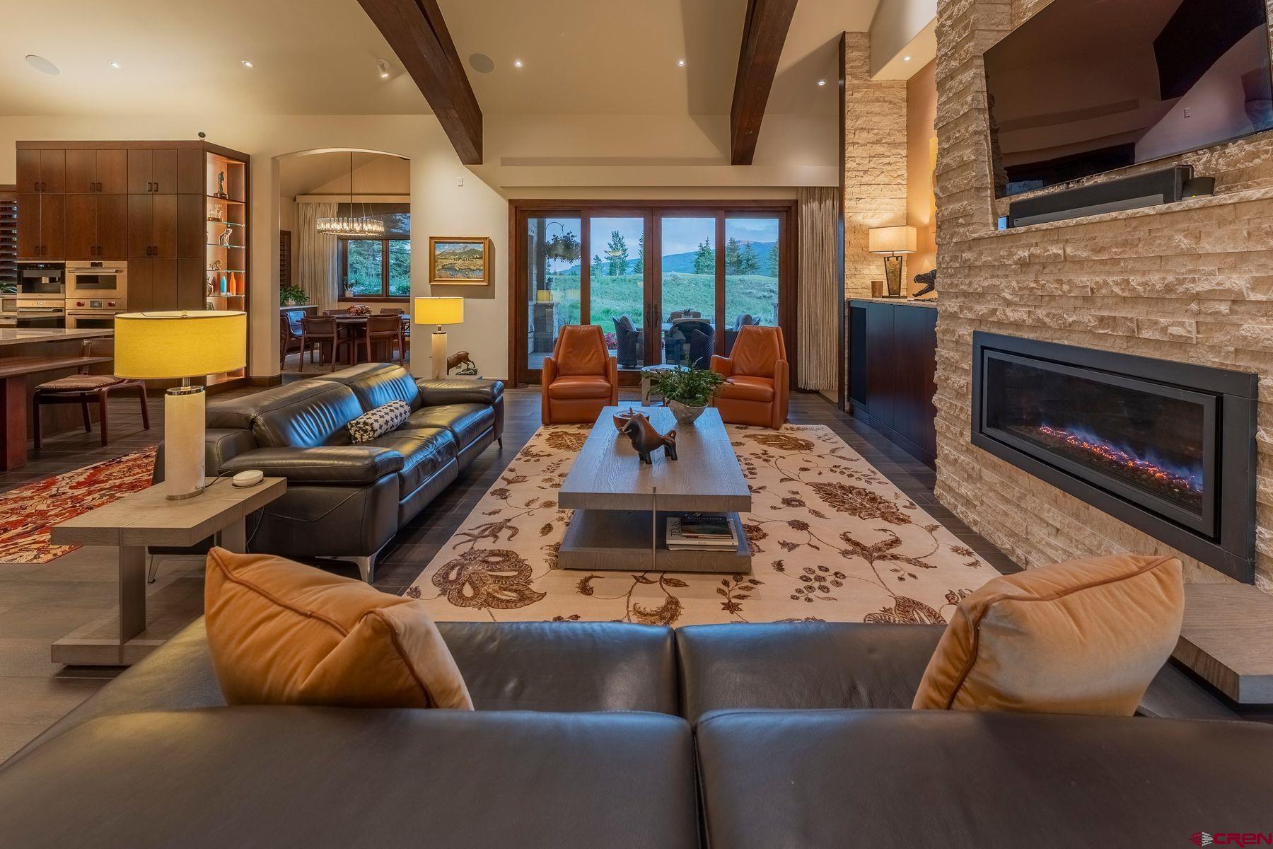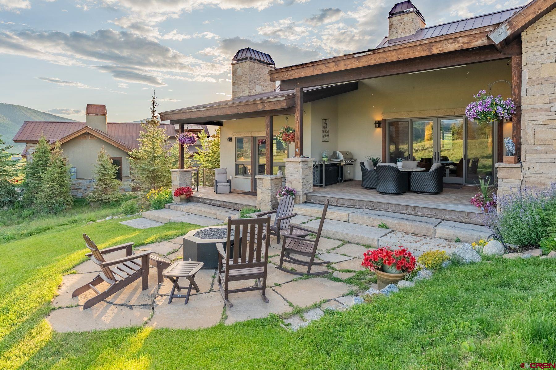 Welcome to 193 Trent Jones Way, a refined estate set along the scenic 10th fairway of the Robert Trent Jones Jr. Golf Course at The Club at Crested Butte. This 3,256-square-foot, partially furnished residence offers three bedrooms and three bathrooms, plus an additional 750-square-foot flex space above the heated, two-car garage. Step inside to a world of curated luxury: The great room impresses with vaulted ceilings, handmade wood trusses, a stunning floor-to-ceiling marble fireplace, and porcelain wood-style floors that flow seamlessly through the home. This grand space opens to a covered patio and the beautiful grounds which were carefully curated to maximize privacy and views. The chef's kitchen is fully equipped with top-of-the-line Wolf appliances, including a steam oven, warming drawer, and range. Hidden, double Sub-Zero refrigerators, freezer drawers, plus an additional garage freezer offer plenty of space. Counters and backsplashes are finished in elegant Taj Mahal quartzite, and Swarovski crystal pendant lights add an opulent touch. The walk-in pantry provides floor-to-ceiling cherry cabinetry for expansive storage and could easily be converted to an additional creative space. The kitchen opens to a large dining room with oversized windows, creating an airy gathering space for the whole family, while the private study/office is a comfortable space to find focus when needed. Retreat to the primary suite with private terrace and marble fireplace, spa-like ensuite featuring Jacuzzi tub, steam shower with dual rain heads, double vanities, makeup station, a heated Toto toilet and bidet, plus his and hers walk-in closets. Two additional bedrooms include ensuite baths with floor-to-ceiling tile, one with its own Jacuzzi tub. The large laundry / craft room is lined with custom cabinets and ample counter space, plus a thoughtful mudroom offers easy storage of seasonal clothes and gear. Luxurious details abound throughout this artistic home. All interior doors are solid-core cherry, with matching custom cherry cabinetry and bookshelves throughout. Each space is accented by Hunter Douglas plantation shutters, and electric drapes. Lutron programmable lighting with Hubbardton Forge lighting fixtures, and surround sound throughout the home set the stage for effortless ambiance, and LED art lighting is wired to showcase numerous stunning masterpieces. Outside, heated stone walkways, IPE wood decking with overhead heaters, and a built-in outdoor stereo and fireplace make the covered patio an entertainer's dream. The exterior is thoughtfully designed with low-maintenance stucco, stone, and wood accents, centralized irrigation, insulated doors and windows, and a European-style entry door. A fenced dog run, and minimal-maintenance landscaping complete this remarkable property. A transferable Legacy Golf Membership to the Club at Crested Butte is available, further enhancing this unique opportunity in one of Colorado's most coveted communities. Members of the Club at Crested Butte enjoy access to golf, tennis, pickleball, swimming, fitness facilities, and fine dining. Residents of Skyland enjoy private fishing rights on the Slate River and Grant Lake, plus easy access to walking trails and paddle boarding. Known for its stunning views of Mt. Crested Butte and Whetstone Mountain, meticulously maintained common areas, and strict architectural guidelines that preserve its mountain character, Skyland is highly desired for those seeking the very best. Experience luxury, comfort, and timeless mountain living at 193 Trent Jones Way—your ideal home in Crested Butte awaits.