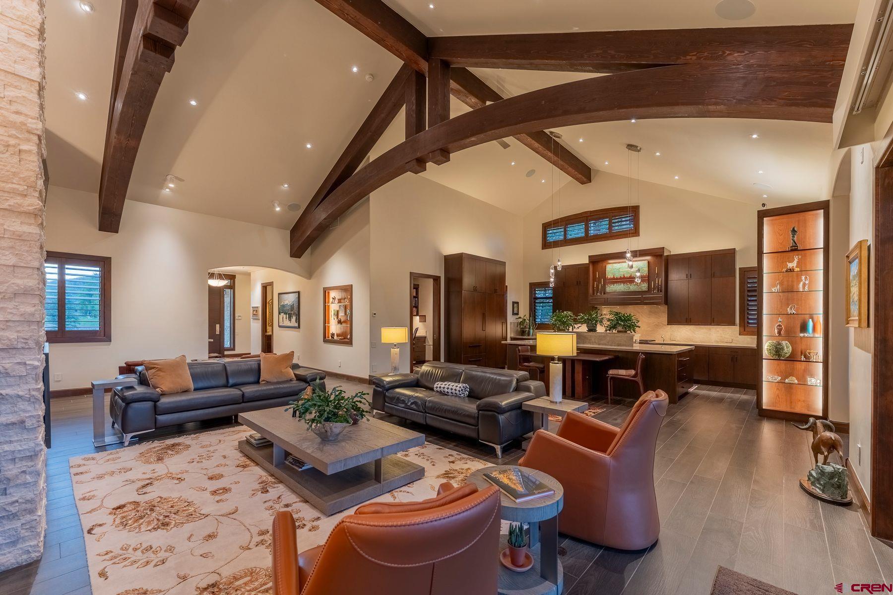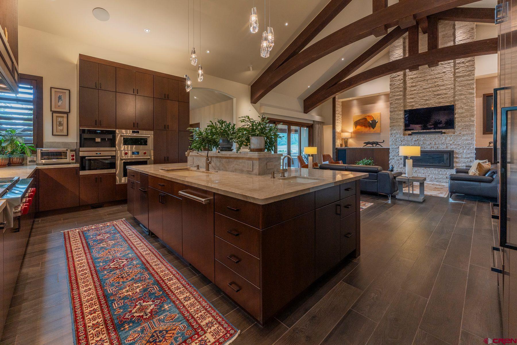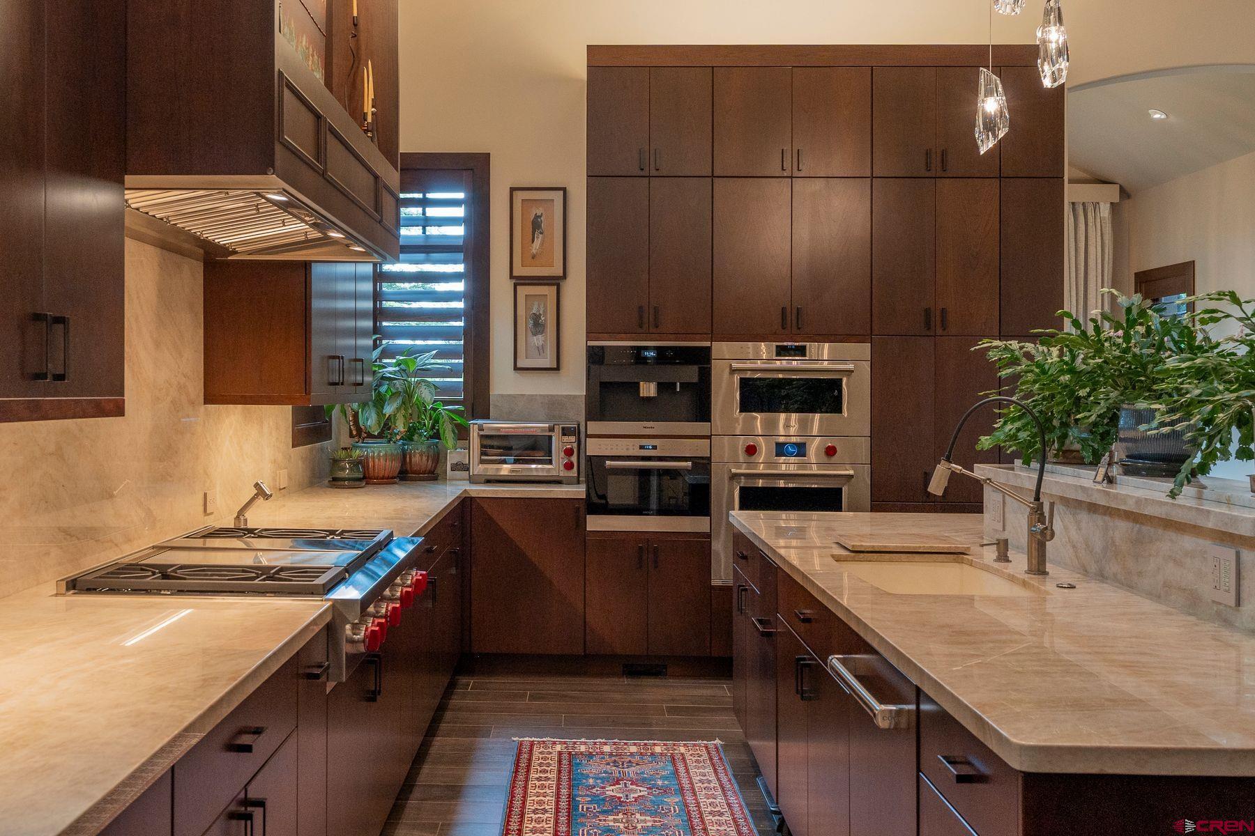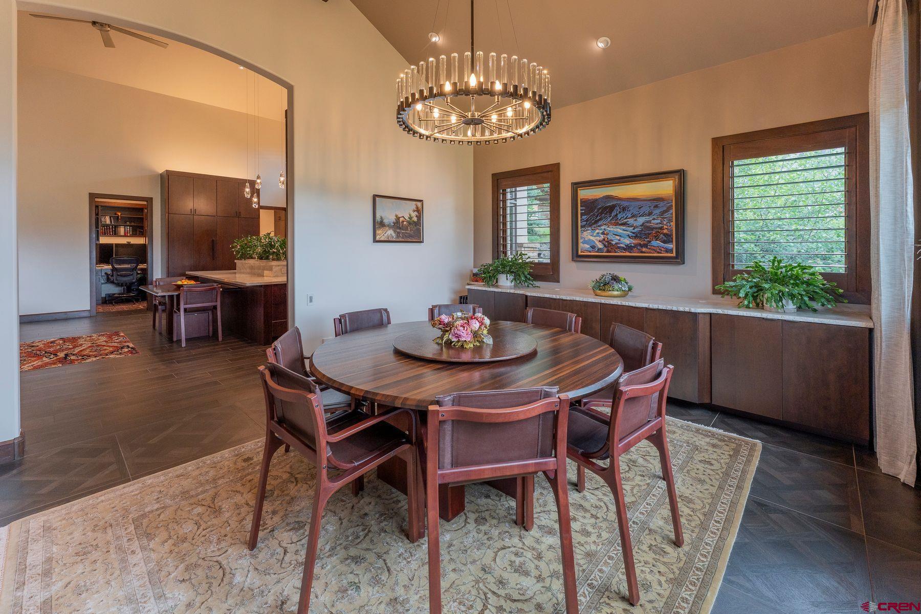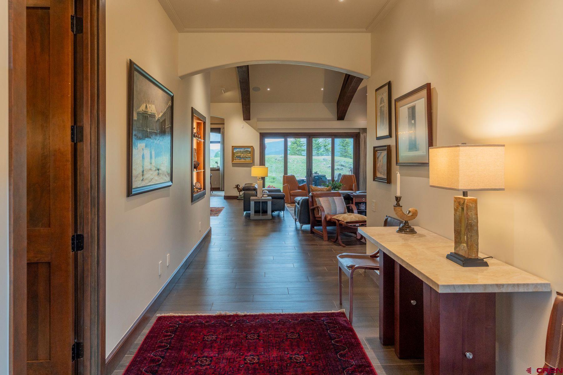 Welcome to 193 Trent Jones Way, a refined estate set along the scenic 10th fairway of the Robert Trent Jones Jr. Golf Course at The Club at Crested Butte. This 3,256-square-foot, partially furnished residence offers three bedrooms and three bathrooms, plus an additional 750-square-foot flex space above the heated, two-car garage. Step inside to a world of curated luxury: The great room impresses with vaulted ceilings, handmade wood trusses, a stunning floor-to-ceiling marble fireplace, and porcelain wood-style floors that flow seamlessly through the home. This grand space opens to a covered patio and the beautiful grounds which were carefully curated to maximize privacy and views. The chef's kitchen is fully equipped with top-of-the-line Wolf appliances, including a steam oven, warming drawer, and range. Hidden, double Sub-Zero refrigerators, freezer drawers, plus an additional garage freezer offer plenty of space. Counters and backsplashes are finished in elegant Taj Mahal quartzite, and Swarovski crystal pendant lights add an opulent touch. The walk-in pantry provides floor-to-ceiling cherry cabinetry for expansive storage and could easily be converted to an additional creative space. The kitchen opens to a large dining room with oversized windows, creating an airy gathering space for the whole family, while the private study/office is a comfortable space to find focus when needed. Retreat to the primary suite with private terrace and marble fireplace, spa-like ensuite featuring Jacuzzi tub, steam shower with dual rain heads, double vanities, makeup station, a heated Toto toilet and bidet, plus his and hers walk-in closets. Two additional bedrooms include ensuite baths with floor-to-ceiling tile, one with its own Jacuzzi tub. The large laundry / craft room is lined with custom cabinets and ample counter space, plus a thoughtful mudroom offers easy storage of seasonal clothes and gear. Luxurious details abound throughout this artistic home. All interior doors are solid-core cherry, with matching custom cherry cabinetry and bookshelves throughout. Each space is accented by Hunter Douglas plantation shutters, and electric drapes. Lutron programmable lighting with Hubbardton Forge lighting fixtures, and surround sound throughout the home set the stage for effortless ambiance, and LED art lighting is wired to showcase numerous stunning masterpieces. Outside, heated stone walkways, IPE wood decking with overhead heaters, and a built-in outdoor stereo and fireplace make the covered patio an entertainer's dream. The exterior is thoughtfully designed with low-maintenance stucco, stone, and wood accents, centralized irrigation, insulated doors and windows, and a European-style entry door. A fenced dog run, and minimal-maintenance landscaping complete this remarkable property. A transferable Legacy Golf Membership to the Club at Crested Butte is available, further enhancing this unique opportunity in one of Colorado's most coveted communities. Members of the Club at Crested Butte enjoy access to golf, tennis, pickleball, swimming, fitness facilities, and fine dining. Residents of Skyland enjoy private fishing rights on the Slate River and Grant Lake, plus easy access to walking trails and paddle boarding. Known for its stunning views of Mt. Crested Butte and Whetstone Mountain, meticulously maintained common areas, and strict architectural guidelines that preserve its mountain character, Skyland is highly desired for those seeking the very best. Experience luxury, comfort, and timeless mountain living at 193 Trent Jones Way—your ideal home in Crested Butte awaits.