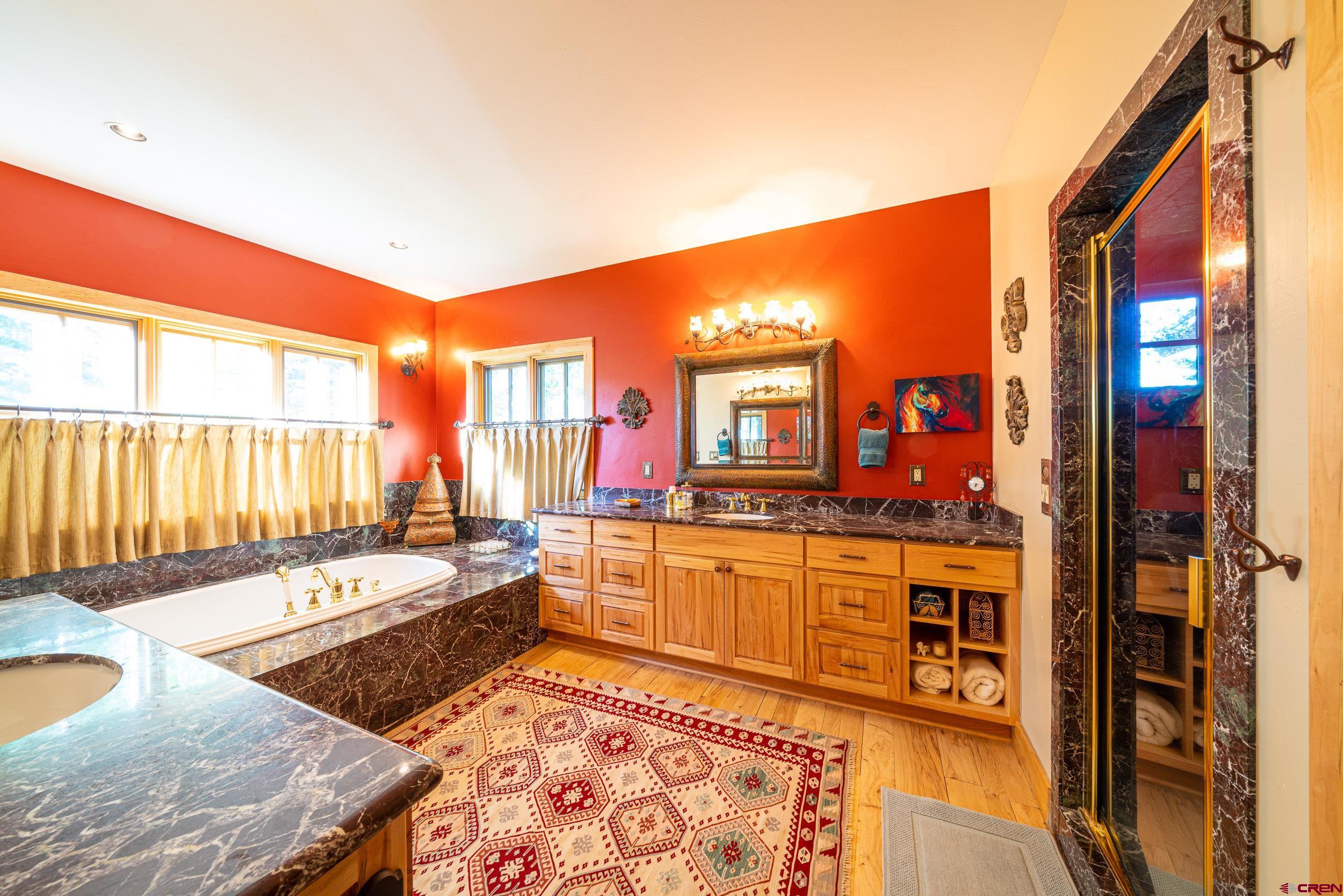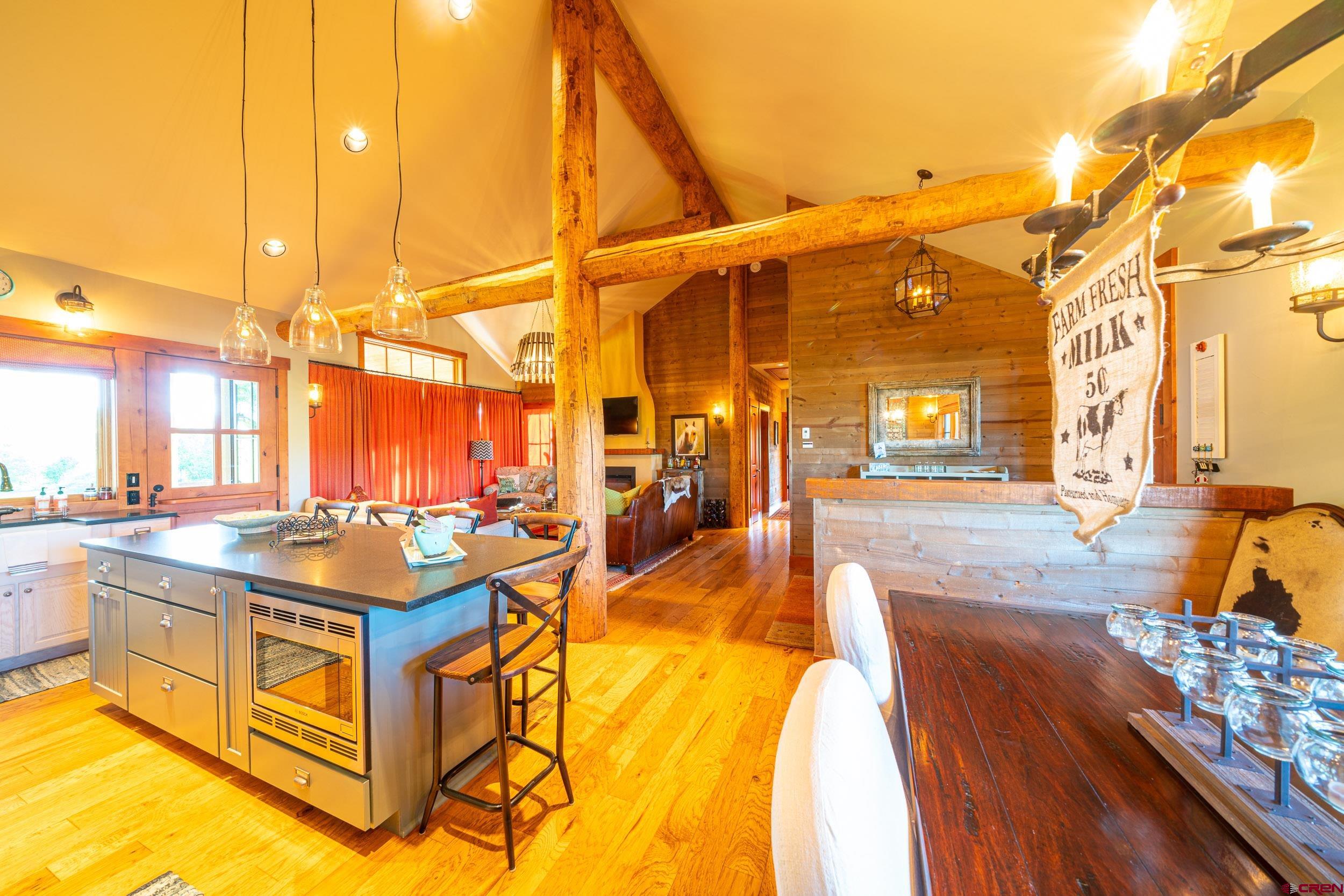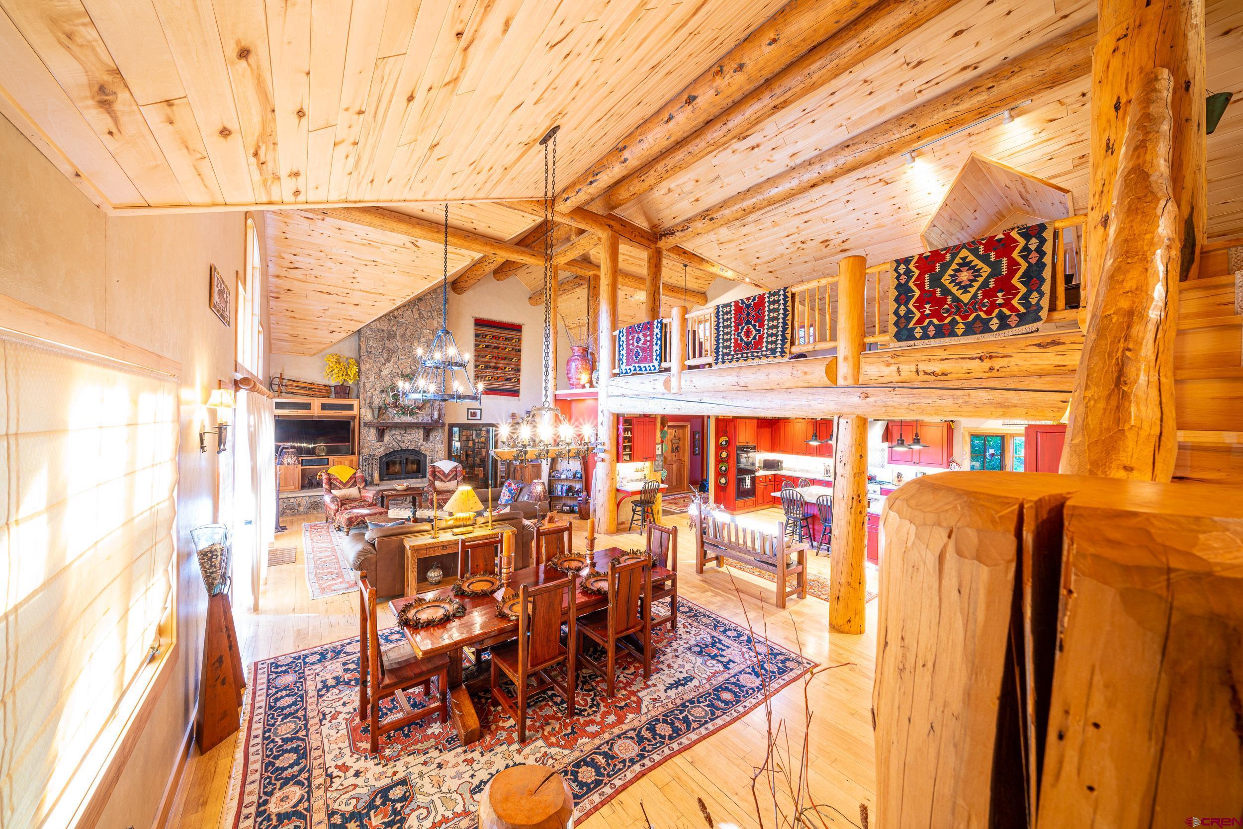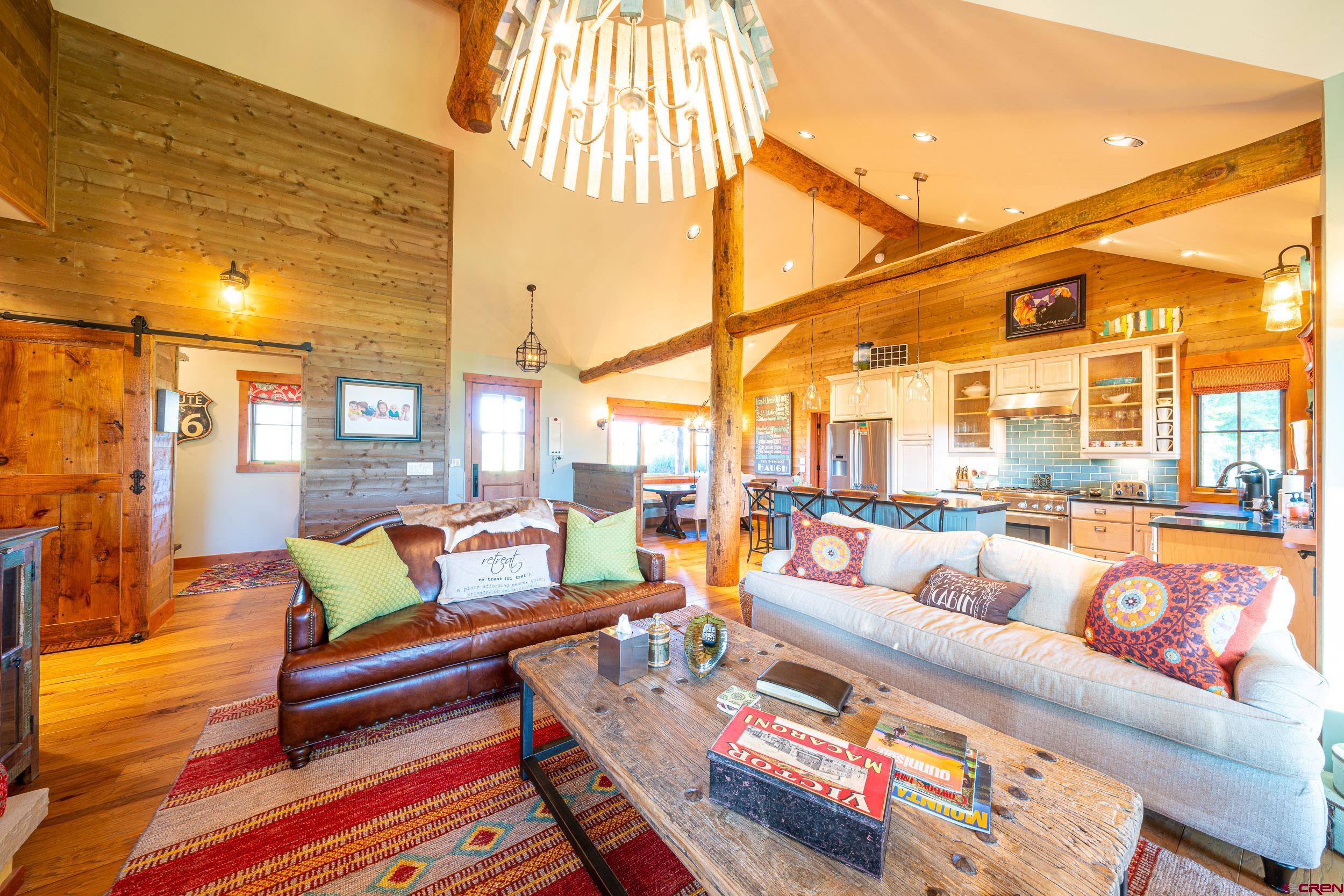 Welcome to an exceptional mountain retreat perched high above the pristine waters of Ohio Creek, offering rare access to the entire Gunnison Valley and an unmatched setting of peace, privacy, and natural beauty. Set on over 10 meticulously maintained acres along the tranquil East bank of Ohio Creek, this luxury estate features a masterfully crafted log home that exudes timeless quality and mountain elegance. Built with superior craftsmanship and attention to detail, the 4,157 sq ft main residence offers three spacious bedrooms, four beautifully appointed bathrooms, and a generous two-car attached garage. Floor-to-ceiling windows capture panoramic views of the surrounding valley and bring the serene outdoors in, creating an inviting space for both relaxation and entertaining. A landscaped stone pathway leads to the charming 1,634 sq ft guest house, built in 2012, complete with three bedrooms, two bathrooms, and its own attached garage. This secondary home is ideal for hosting friends and family while offering comfort and privacy. Both homes come fully furnished with high-end pieces and designer finishes, ready for immediate, turnkey enjoyment. Outdoors, you'll find manicured grounds that blend seamlessly with the surrounding wilderness. Ohio Creek borders the entire property, offering private fishing rights in one of the region's most picturesque trout streams. The detached garage is a perfect place for housing equipment. With easy access to the vast wonders of the Gunnison Valley, from world-class fly fishing and hiking to skiing and vibrant local culture, this property delivers the ultimate Colorado mountain lifestyle. Offered fully furnished with minimal exclusions, this is a once-in-a-lifetime opportunity to own a serene and luxurious retreat in one of the West’s most sought-after locations. Don’t miss your chance to experience this extraordinary property in person—where high-end log construction meets unspoiled natural beauty.