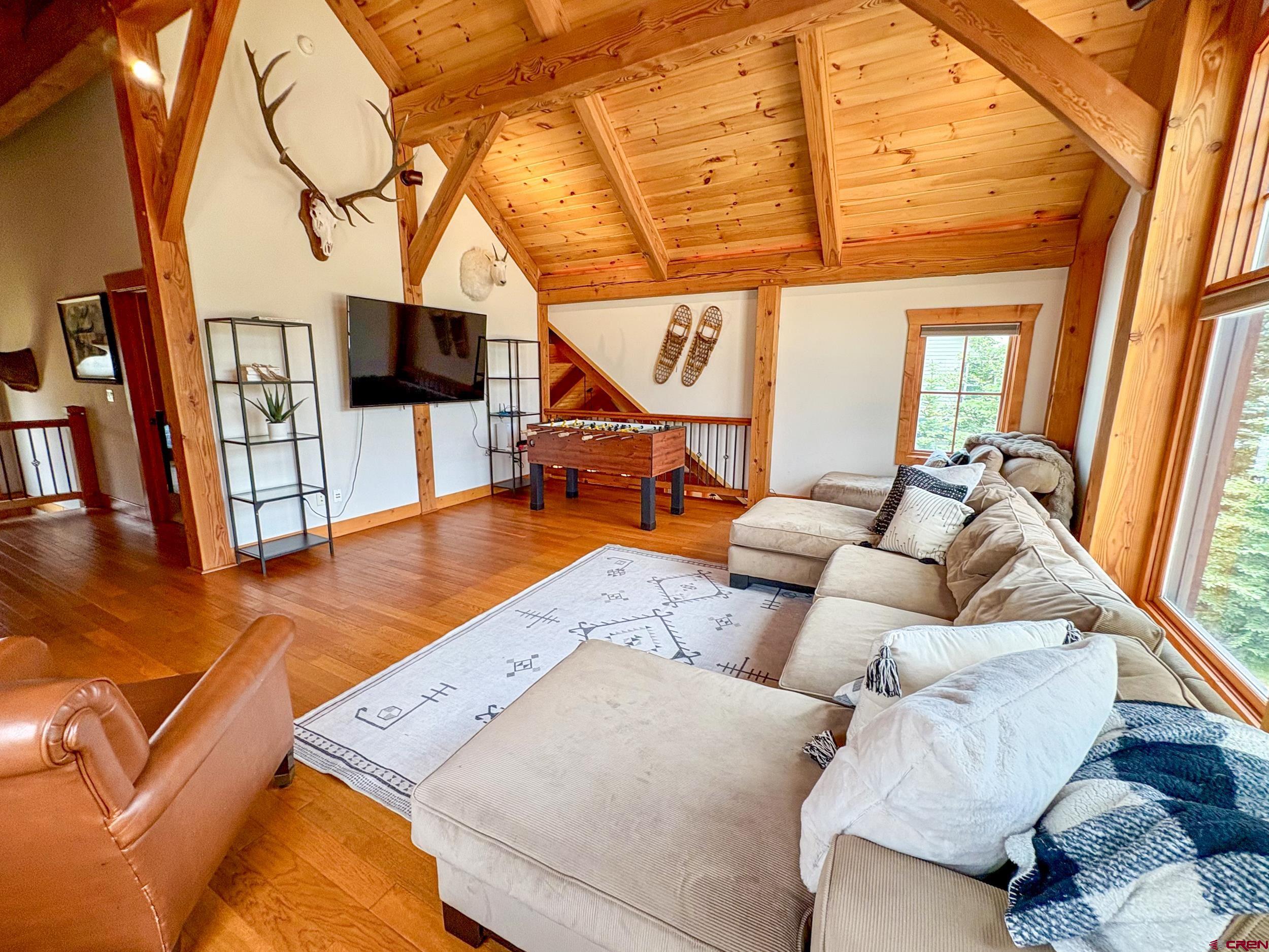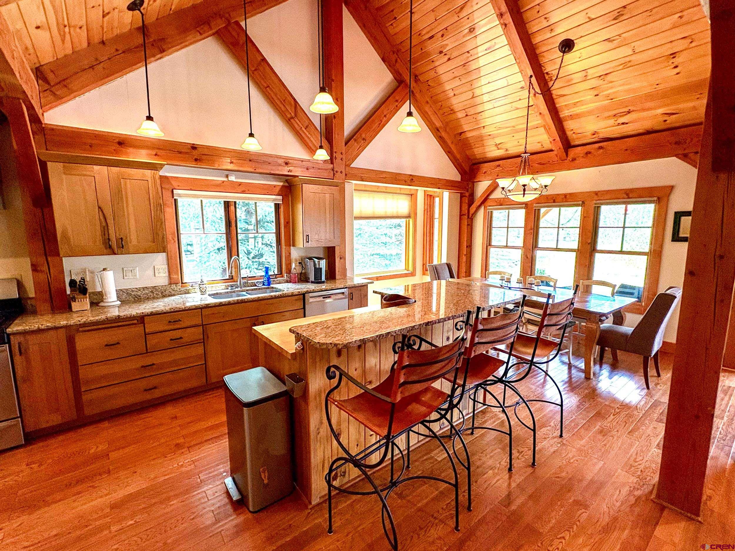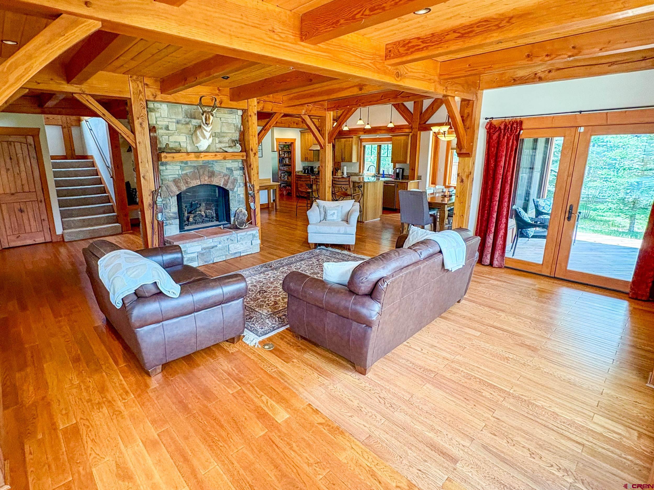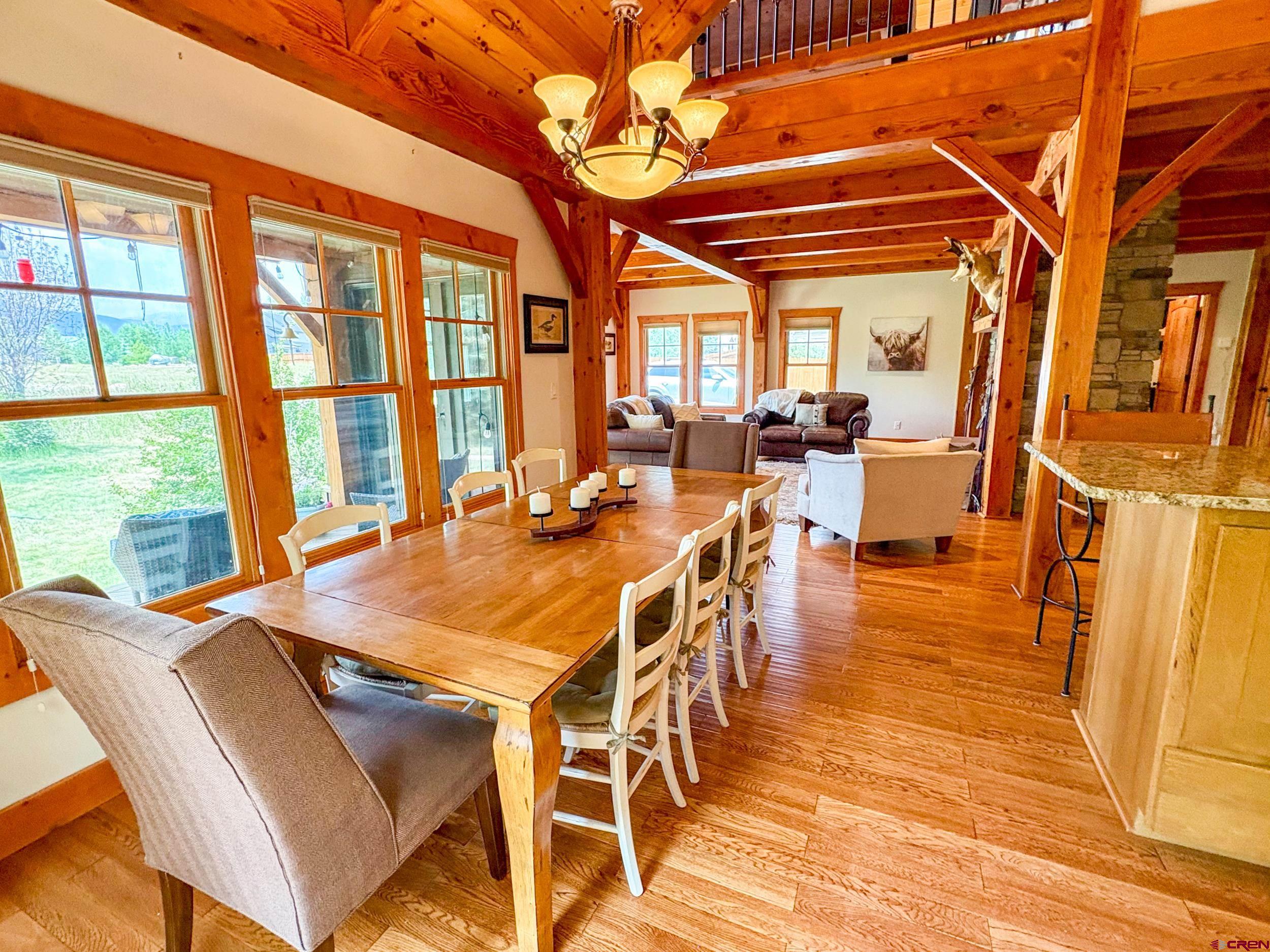 Welcome to 252 Cascadilla Street, a beautifully crafted timber frame mountain home nestled in the desirable community of Crested Butte South. Situated on 0.360 acres, this 3-bedroom, 2.5-bath property offers the perfect blend of timeless design and modern comfort. Step through the covered entryway into warm, light-filled living spaces featuring vaulted wood-beam ceilings, hardwood floors, and LED lighting. The open-concept layout seamlessly connects the kitchen, dining, and living areas, creating an ideal setting for both everyday living and entertaining. A striking stone gas fireplace anchors the living area, which flows out onto the covered deck, perfect for taking in the mountain views. The kitchen is a chef’s delight with stainless steel appliances, granite countertops, a large island, and an expansive pantry. Just off the kitchen is a convenient laundry room. The main-level primary suite offers a peaceful retreat with a spacious ensuite bath, while upstairs you’ll find two additional bedrooms, a three-quarter bath, and a bonus living area with large windows and even more mountain views. The outdoor living space is just as inviting, with a large fenced yard, a storage shed for extra gear, and an attached two-car garage to keep vehicles protected year-round. Upgrades include a new $15,000 boiler and fresh exterior stain completed in 2024. Residents of Crested Butte South enjoy access to a variety of amenities including East River fishing, tennis courts, a playground, and more. The RTA bus stop, with hourly service, offers easy access to the Gunnison Valley. Plus, the shops and restaurants of downtown Crested Butte and the slopes of Crested Butte Mountain Resort are just a short drive or bus ride away. Whether as a full-time residence or a peaceful getaway, this home offers a great opportunity to settle into Crested Butte living.