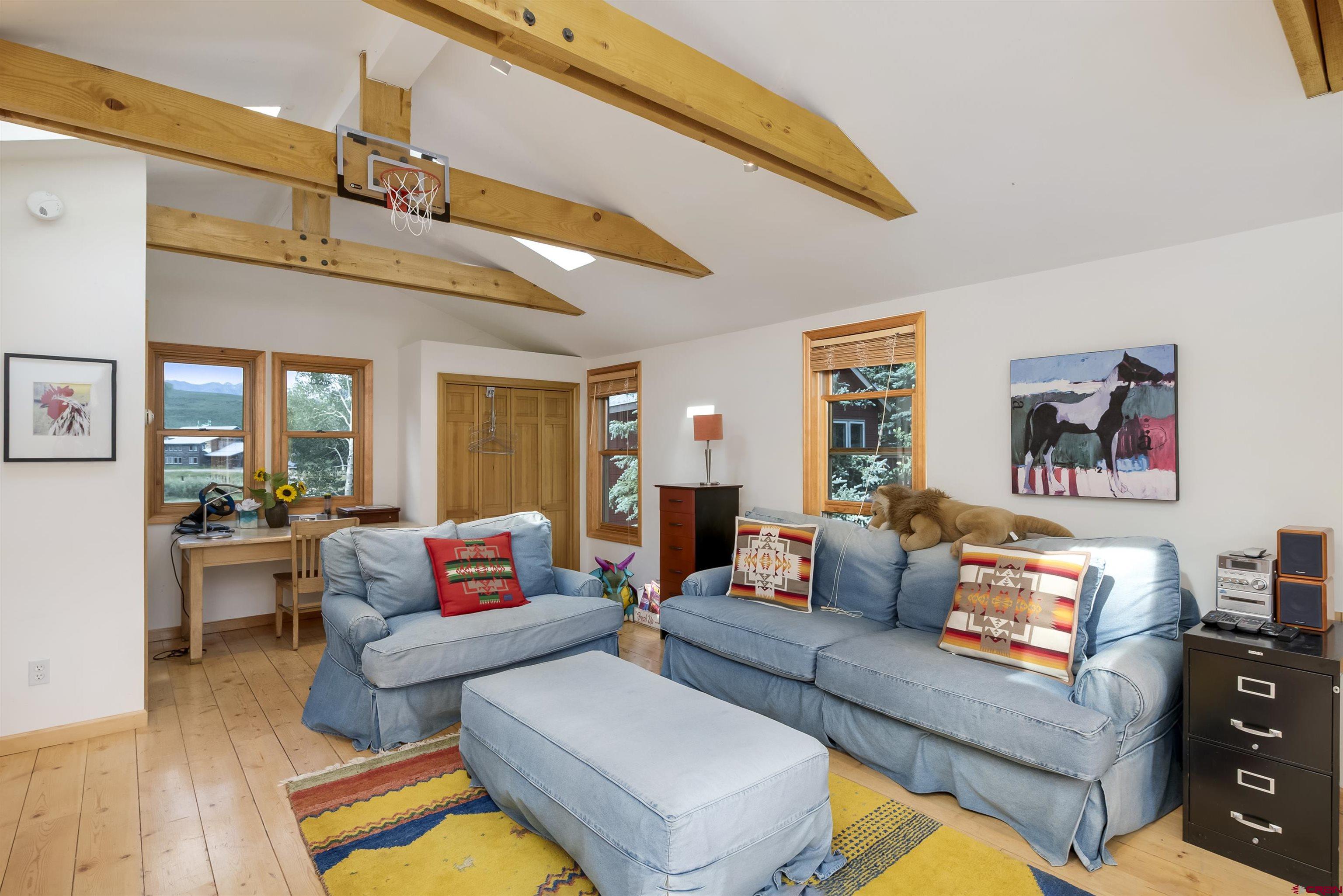 Charming log home nestled on one of Crested Butte’s most sought-after streets, this beautiful home offers unencumbered views and timeless mountain charm. Featuring 3 spacious bedrooms, 3 full baths, and 2 convenient half baths, this home provides comfortable living across a thoughtfully designed layout. The second level features both a primary living area and a secondary living space, along with a well-appointed kitchen and a half bath - ideal for entertaining or relaxing with family and friends. Above the detached garage, a private studio with its own half bath offers a perfect retreat for guests, creative work, or quiet downtime. With a few modern updates, this property has the potential to become your dream mountain sanctuary. An adjacent lot is also available for purchase, offering added space or privacy. Enjoy close proximity to downtown shopping, dining, the free town shuttle, and an extensive network of surrounding trails for year-round recreation. Don’t miss this rare opportunity to own a piece of Butte Avenue with unbeatable views and endless potential.