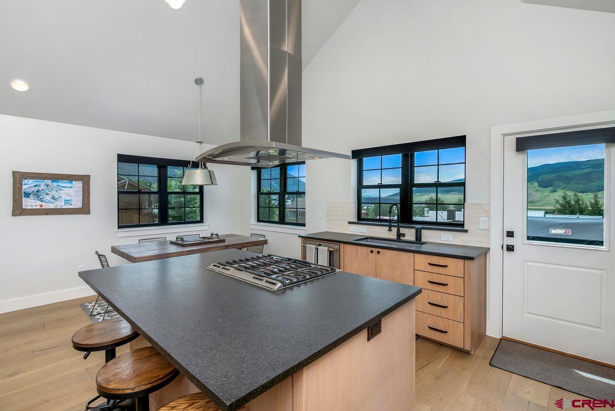 Built in 2019 and impeccably maintained, this gorgeous 3 bedroom, 3 full bathroom half duplex combines high-end finishes, thoughtful design, and effortless mountain living. With only the neighboring garage wall shared, it offers the privacy and quiet of a single-family home with the benefits of townhome living, all in the heart of desirable Crested Butte South. Step inside from the heated courtyard and you're greeted by a smart, functional layout with two bedrooms on the lower level. The spacious primary suite features two closets, a beautifully tiled ensuite bath with stone countertops and dual sinks, and direct access to the private back patio- the perfect place to enjoy morning coffee or unwind in the hot tub beneath the stars. A second bedroom and full bath, along with a separate laundry room with sink, complete this level. Upstairs, vaulted ceilings and big windows flood the main living space with natural light. The open-concept kitchen is a showstopper, with leathered granite countertops, book-matched cabinetry with great storage, and a large island perfect for gathering with friends and family. A dedicated dining area and the warm, inviting living room with gas fireplace flow seamlessly onto the upper deck and beautifully landscaped backyard. The third bedroom and an additional full bath on this level provide flexibility for guests or a home office. Outside, enjoy a fully fenced, manicured yard; while the yard is shared, the separation of space offers privacy, charm, and stunning southern views of Red Mountain and beyond. The patio is complete with a private grill, hot tub, and lounge area — ready for year-round enjoyment. Additional highlights include a 1-car attached garage, additional driveway parking, and incredible curb appeal. Quality construction, designer finishes, a fantastic location, and a floorplan that truly lives well- this CB South gem has it all. Don’t miss the opportunity to make it yours!