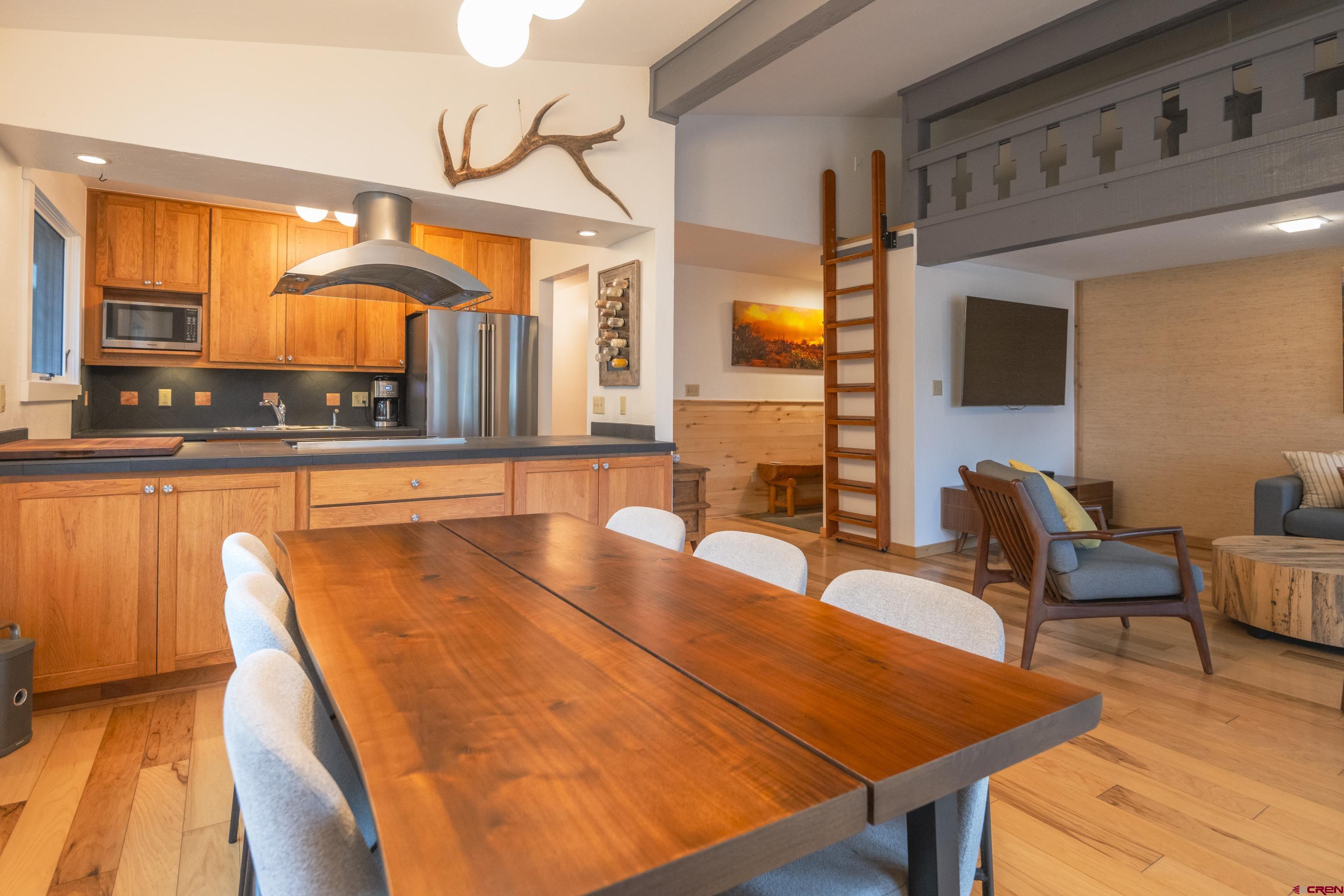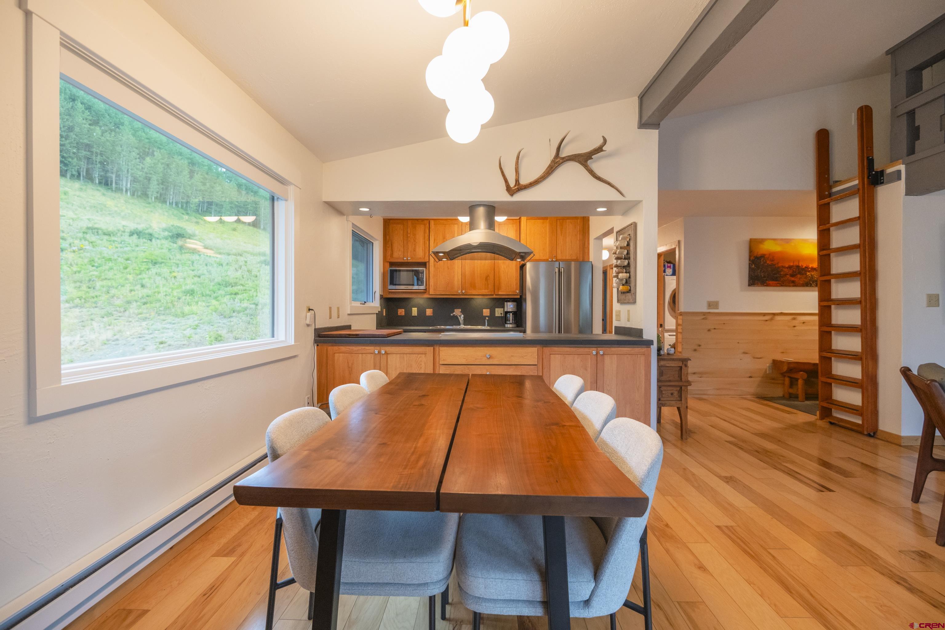 Enjoy the best of mountain living in this thoughtfully updated 3-bedroom, 3-bathroom condo, perfectly situated in the Ski Jump Condominiums. Unit 10 offers a rare combination of space, style, and convenience just minutes from the lifts at Mt. Crested Butte and a short drive or free shuttle ride to the vibrant shops, restaurants, and events in the town of Crested Butte. The open-concept living, dining, and kitchen area is ideal for gathering and entertaining, highlighted by newer wood flooring, upgraded lighting, and a cozy fireplace with a new woodstove insert. The kitchen features slate countertops and newer appliances, combining natural texture with modern function. Large windows fill the space with natural light and frame stunning views of Mt. Crested Butte, while sliding doors open to an expansive deck — the perfect spot to relax after a day on the mountain. Above the living room, a versatile loft provides a great space for additional guests, comfortably fitting a futon or serving as a cozy reading or play area. Down the hall, the spacious primary suite features its own private deck with unobstructed views of the Anthracite Range. A full remodel of the suite and en-suite bathroom is currently underway, adding to the unit’s modern feel and long-term value. All bathrooms include in-floor electric radiant heat for added comfort during the colder months. Two additional bedrooms and baths offer comfortable accommodations for family and guests. In-unit laundry is an added bonus, sharing the space of one of the bathrooms for maximum convenience. Additional highlights include a new hot water heater (2024) and new windows, sliding doors, and trim (2025). The welcoming entryway offers a coat closet and built-in bench for added function. This unit also includes a private one-car garage and an extra storage room off the common area. Ski Jump Condominiums offer residents access to a common room with pool table and sauna perfect for unwinding year-round. Whether you’re looking for a low-maintenance mountain home, a ski-season getaway, or a solid investment in the Gunnison Valley, Unit 10 delivers.