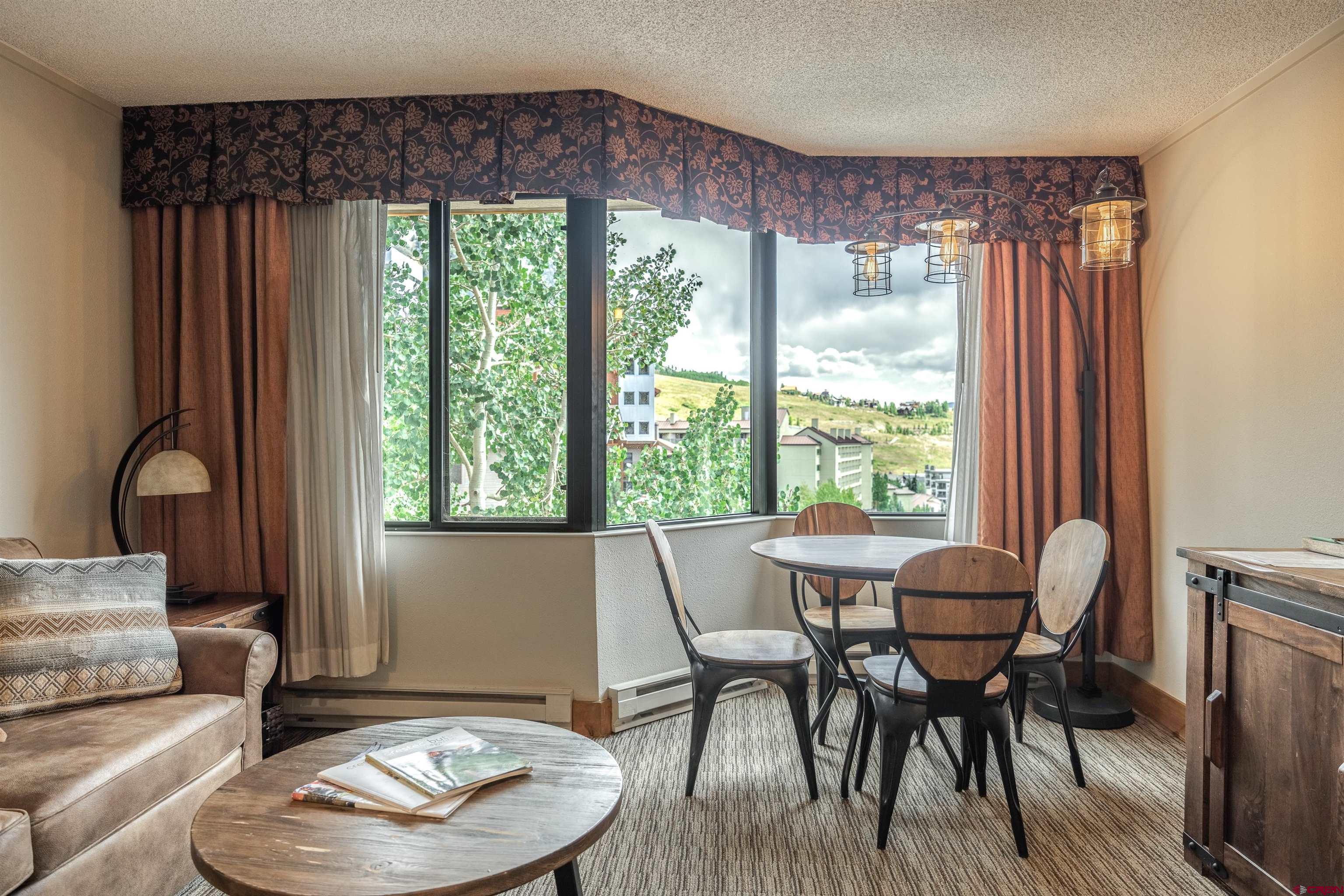 One of the best units in the building! Discover your own slice of paradise in Mt. Crested Butte, Colorado. Seize the opportunity to own an affordable, top floor, investment property in this special mountain town. This cozy 1-bedroom, 1-bath unit is situated on the fifth floor of the Grand Lodge building, just moments away from fantastic skiing and mountain activities. Recently revamped with new furniture, this unit boasts a king-size bed, a kitchenette, a cozy sitting area, and amazing views! Your guests will love the cozy feel of this updated unit. The Grand Lodge provides exceptional amenities and a cozy and inviting lobby that will greet you and your guests. Indulge in the indoor/outdoor pool and hot tub with stunning Mt. Crested Butte views. Stay active at the fitness center, unwind in the sauna, or pamper yourself at the Wildflower Spa. The WoodStone marketplace, located on the first floor, offers grab-and-go meals, beverages and snacks, and is conveniently located near the lobby. Step outside to catch the free bus shuttle to downtown Crested Butte for shopping or dining at any of our exquisite restaurants. Whether you enjoy skiing in the winter, mountain biking or hiking in the summer, or enjoying our incredible fall weather, this unit offers an easy retreat for a perfect mountain getaway!