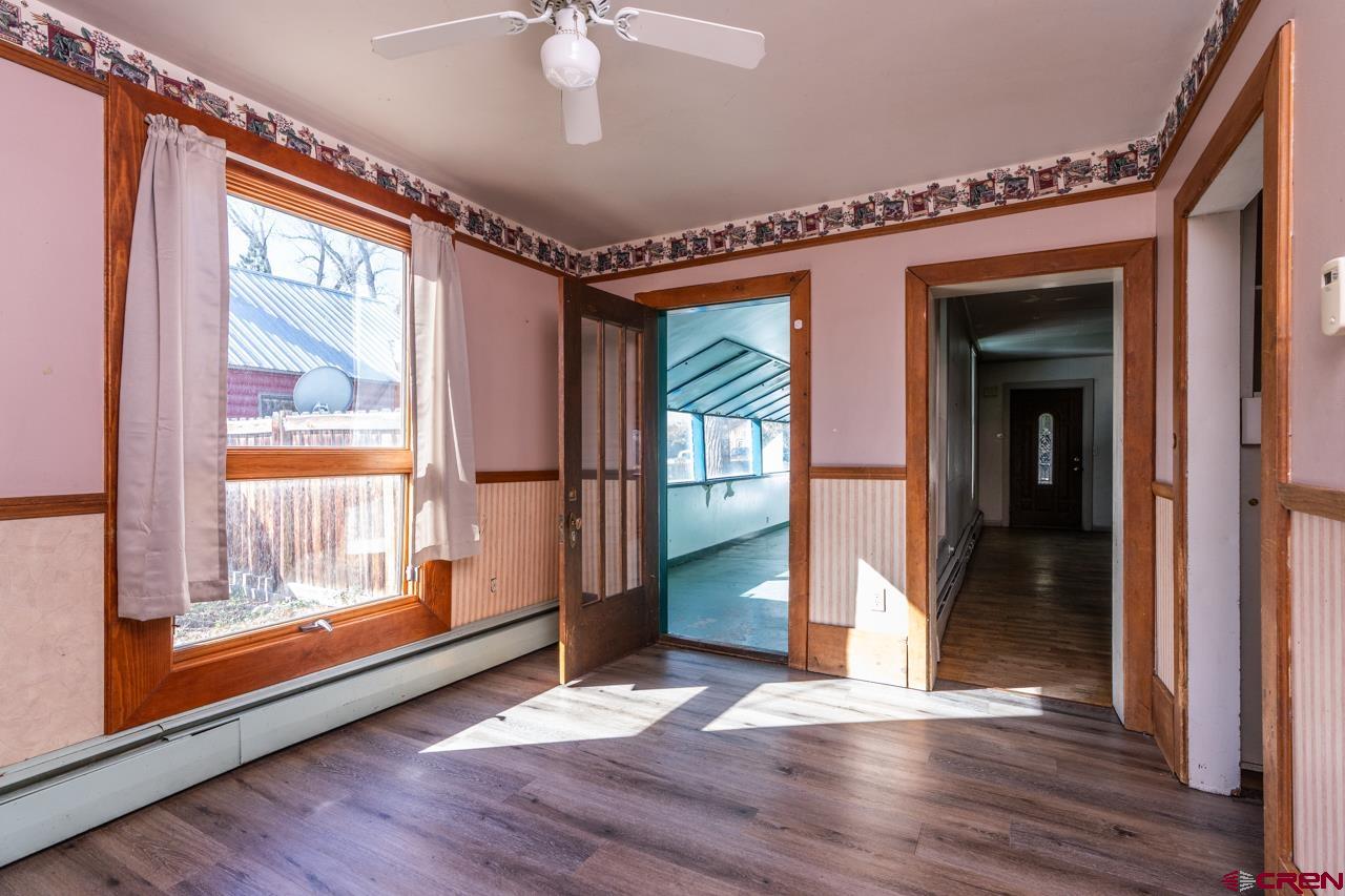 Charming old home of Gunnison in great central location. 3 bedroom/2 bath home with hardwood floors, woodstove, large kitchen with built in grill and sunroom off of dining are. Home has been a rental for many years but has had some updated and improvements such as new flooring, new 3/4 bath 2 years ago, high efficiency boiler installed 10 years ago. This home does have much room for improvements and is being sold "as is". Tenants have moved out so empty and easy to show!