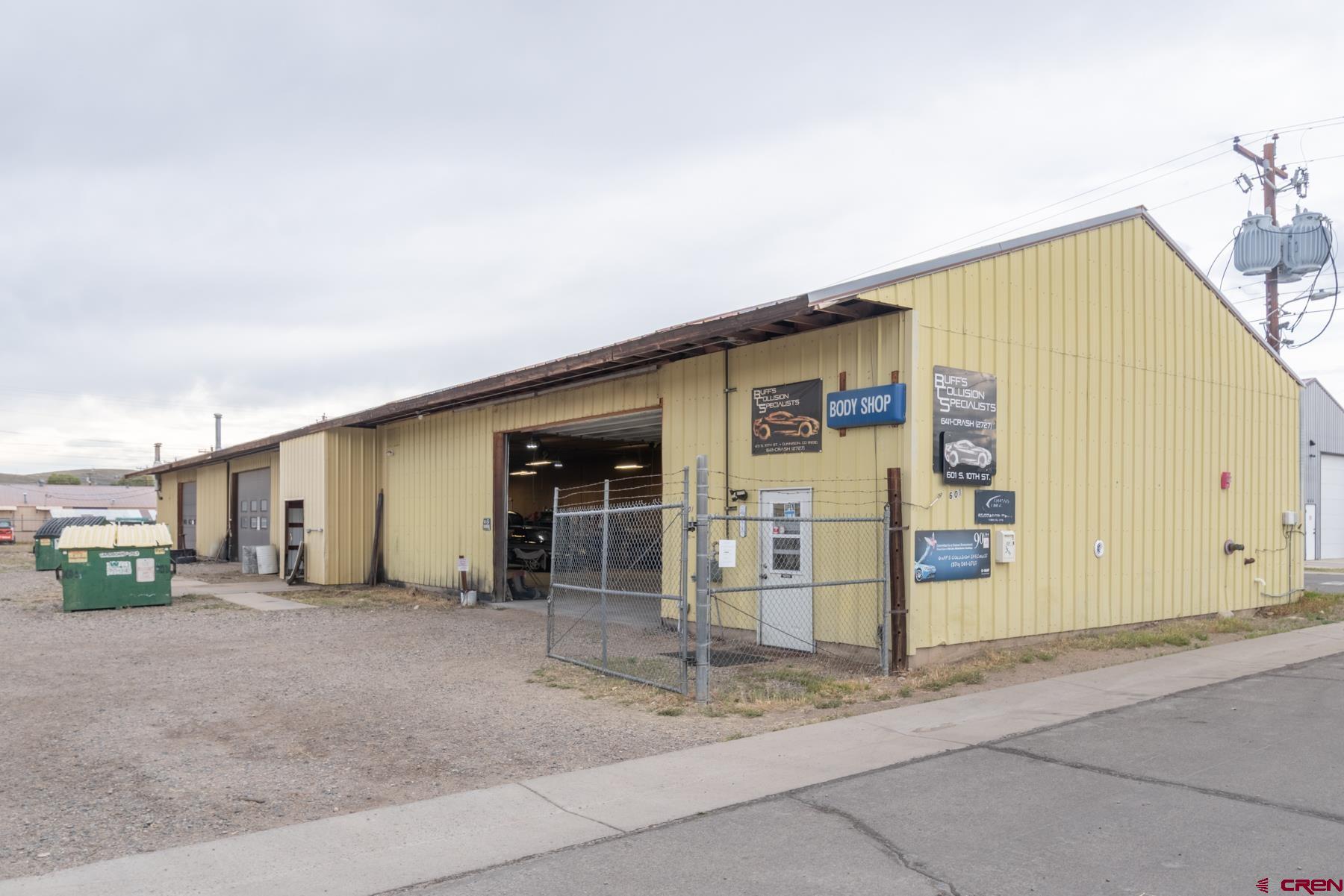 Located in Gunnison's industrial zone, 5700 + or - S.F. of repair, fabrication, multi industrial use improvement. The building's improvements include office, security system, three 12'overhead doors, extensive electrical service, commercial fire suppression system and chain link fenced yard. The building is strategically located on the site to create a 14,000 + or - square foot secure attached yard. Good 10th St corner location for easy access. Large open space layout creates endless possibilities for this rare offering.