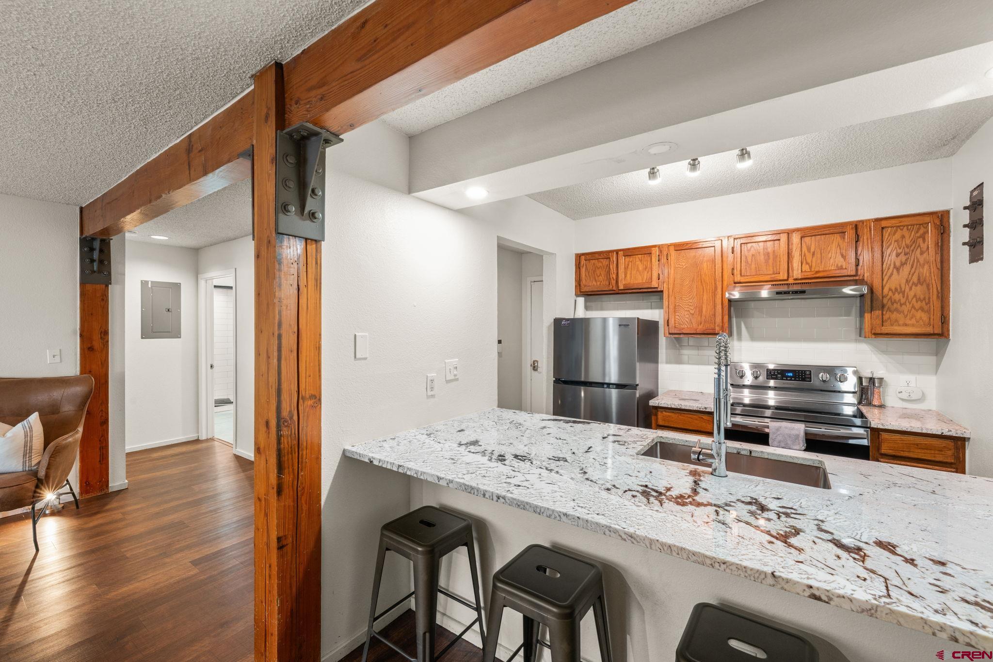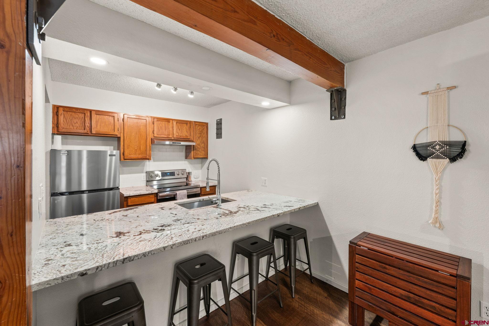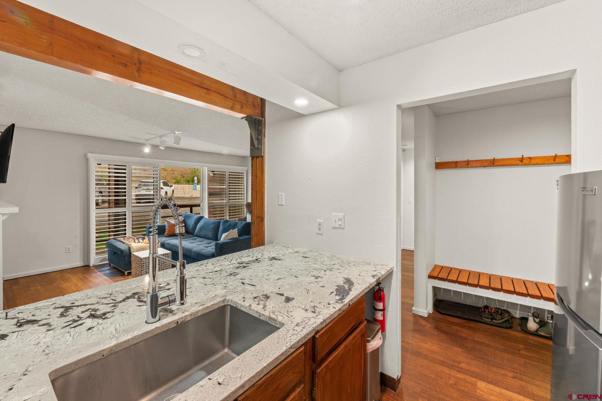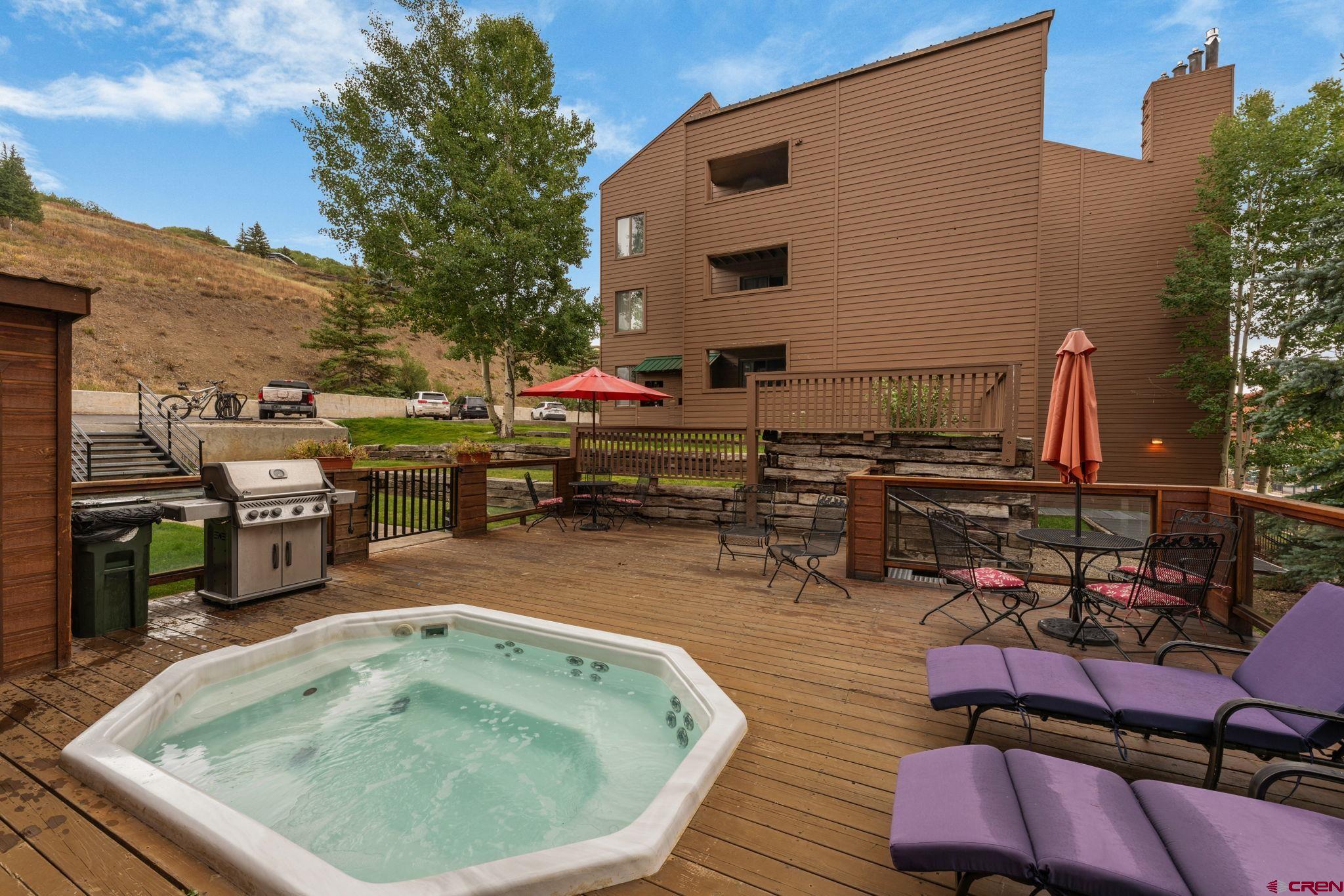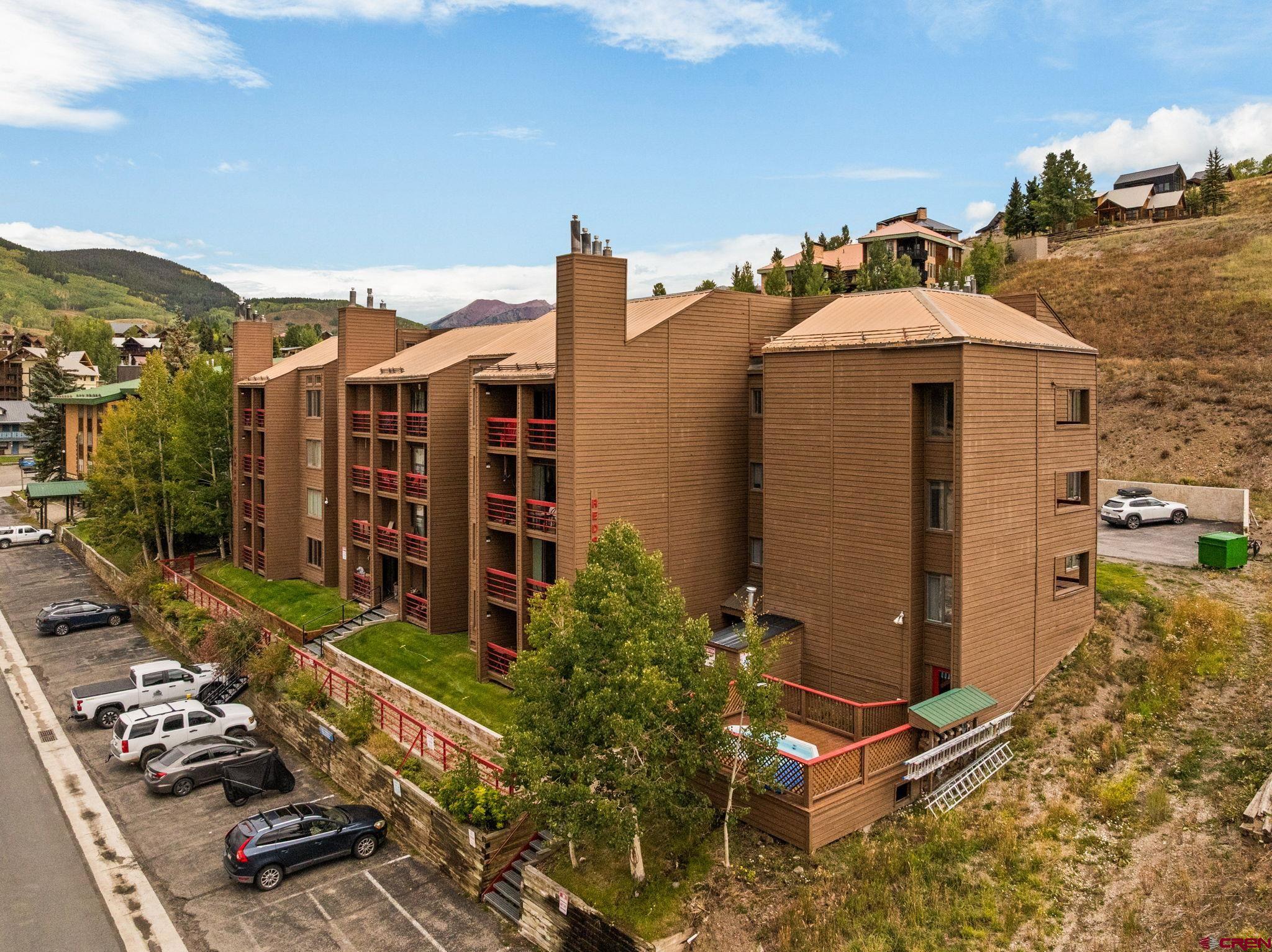 If you’re looking for a stylish and turn-key homebase just steps from the slopes in Mt. Crested Butte, look no further than Redstone #22! This spacious 1 bed/1 bath unit has undergone a full transformation in recent years with gorgeous new granite countertops, appliances, a full bathroom remodel, new paint, flooring, privacy shutters, and fashionable modern furniture. The ground level location is ultra convenient (who wants to climb a bunch of stairs after a long day of playing outside?!), and the unit offers a roomy entryway with built-in bench for kicking off your boots. The open layout is great for entertaining, and the gas fireplace offers a cozy respite on chilly mountain evenings. Off the living room, a generously sized balcony extends your living space outdoors, and a large owners closet provides secure storage for your personal items between visits. The generously sized bedroom would easily accommodate a king bed, and the pullout couch in the living room easily accommodates overflow guests. You can’t beat this location as you’re a mere 1 minute walk to all the action of the base area, including ski slopes & bike trails, bars, restaurants, shops, and the transit center where you can catch the free shuttle to downtown Crested Butte for boutique shopping and dining along Elk Avenue. The Redstone complex is known for its spacious units with great layouts, as well as having not one, but two, hot tubs available for owner and guest use. Offered fully furnished & turn-key, Redstone #22 delivers everything renters are looking for and would make an excellent investment property or your own private mountain retreat. This one is ready to start using or enjoying right away, just in time for ski season!