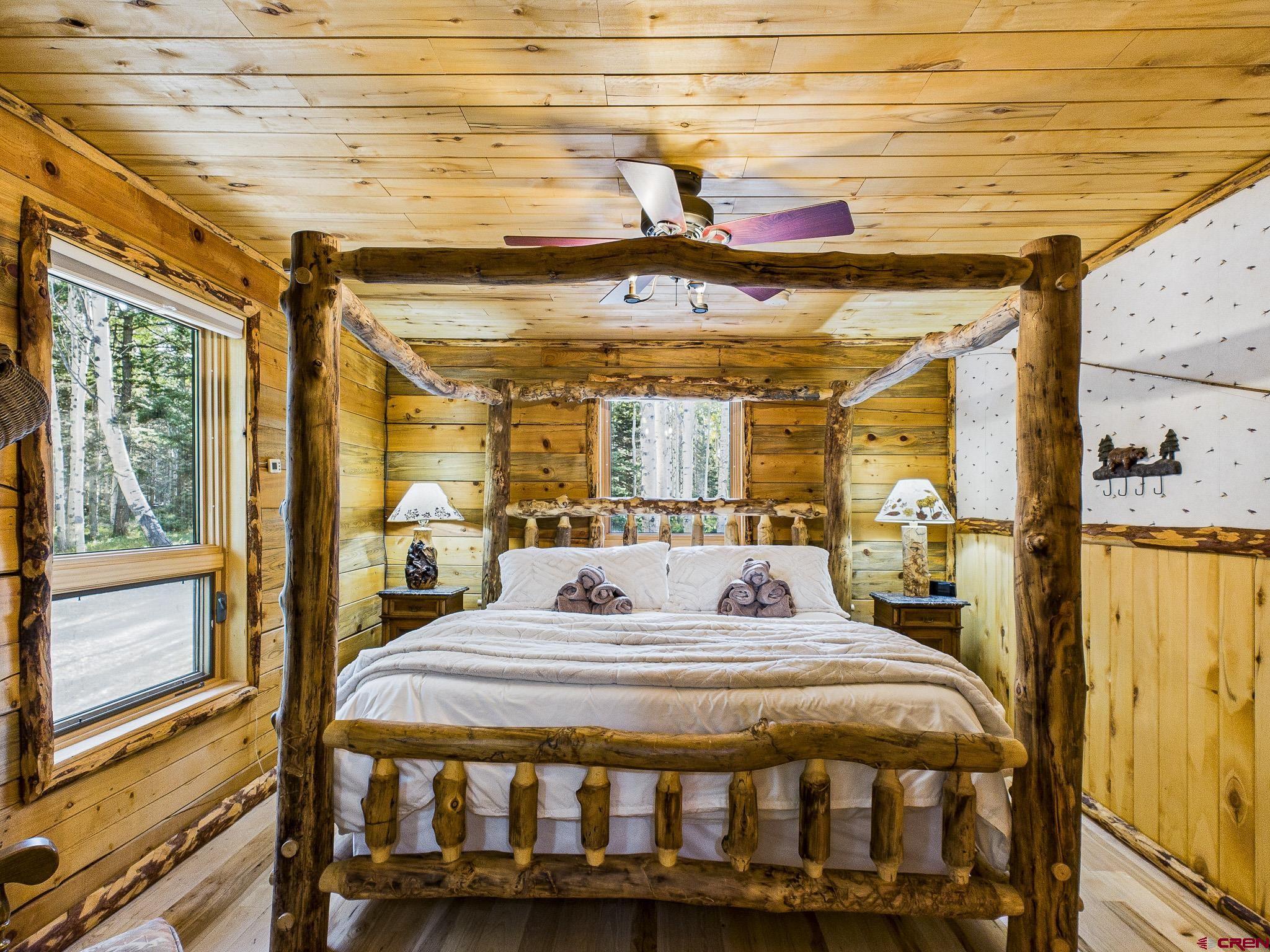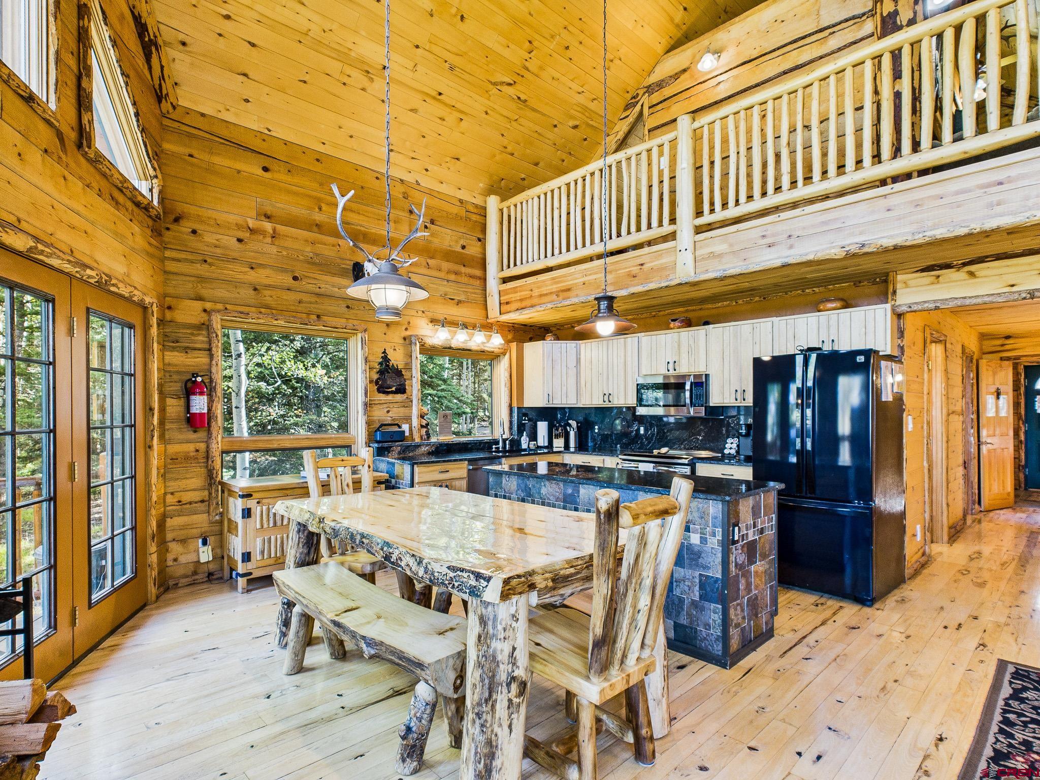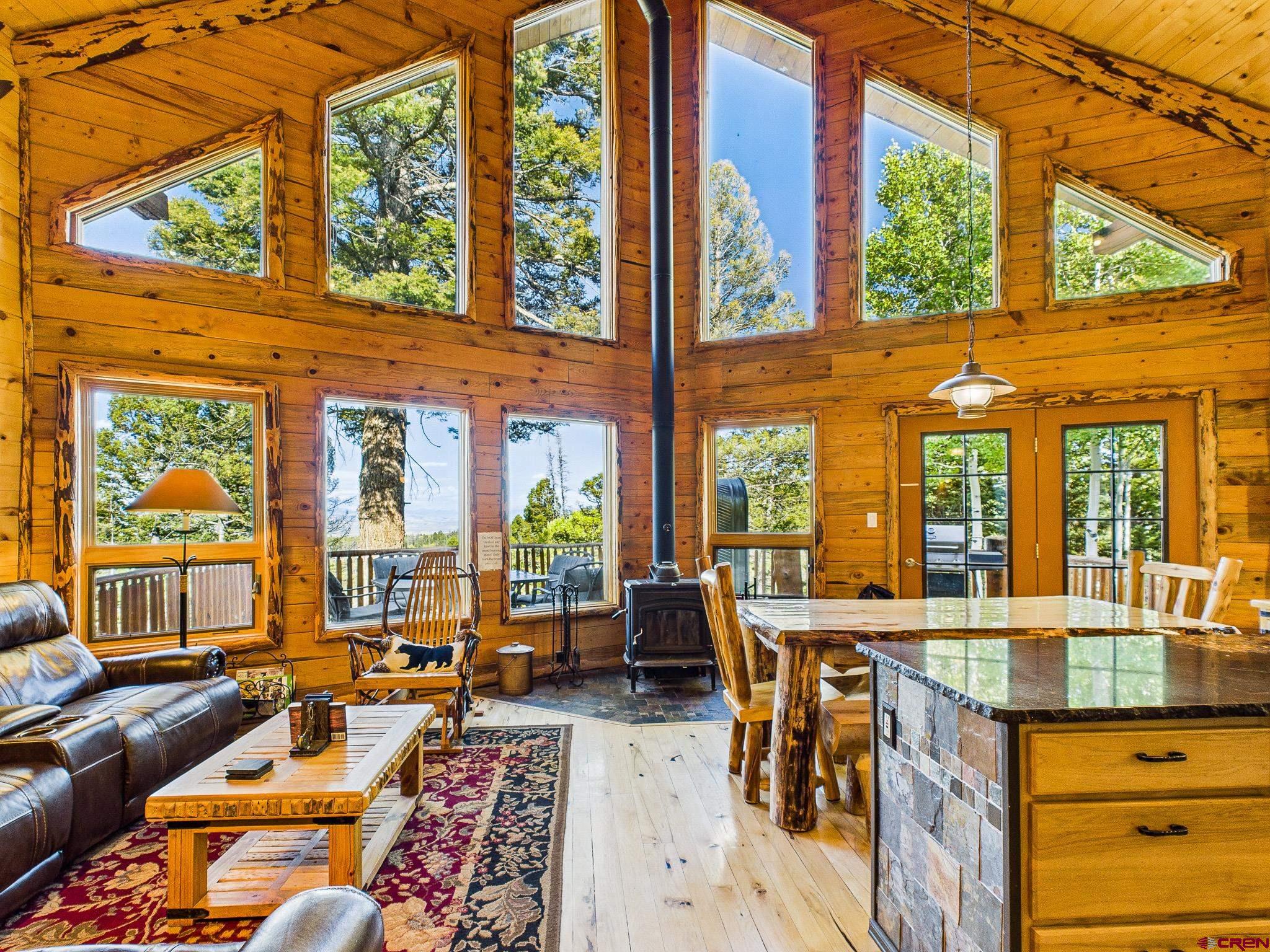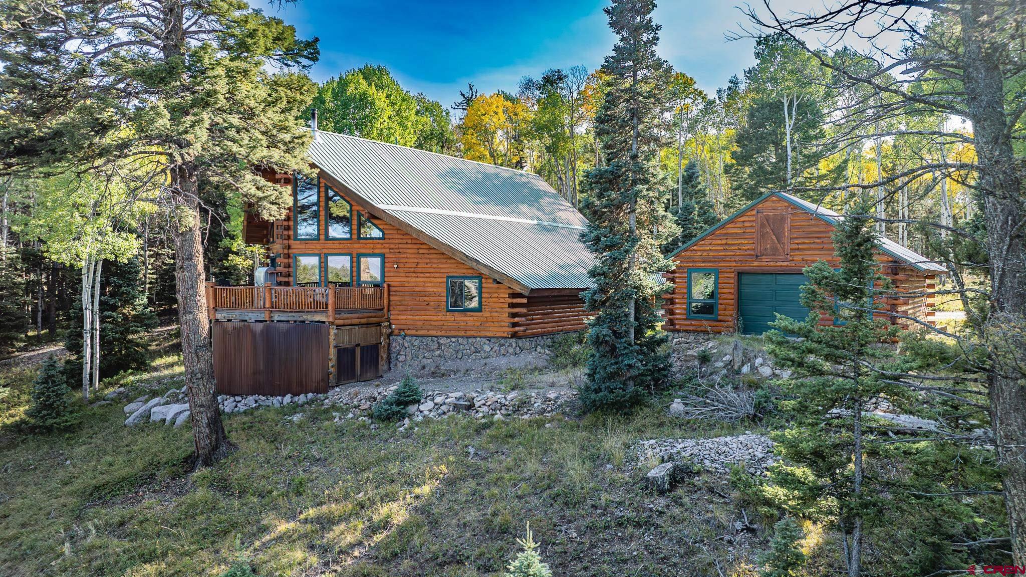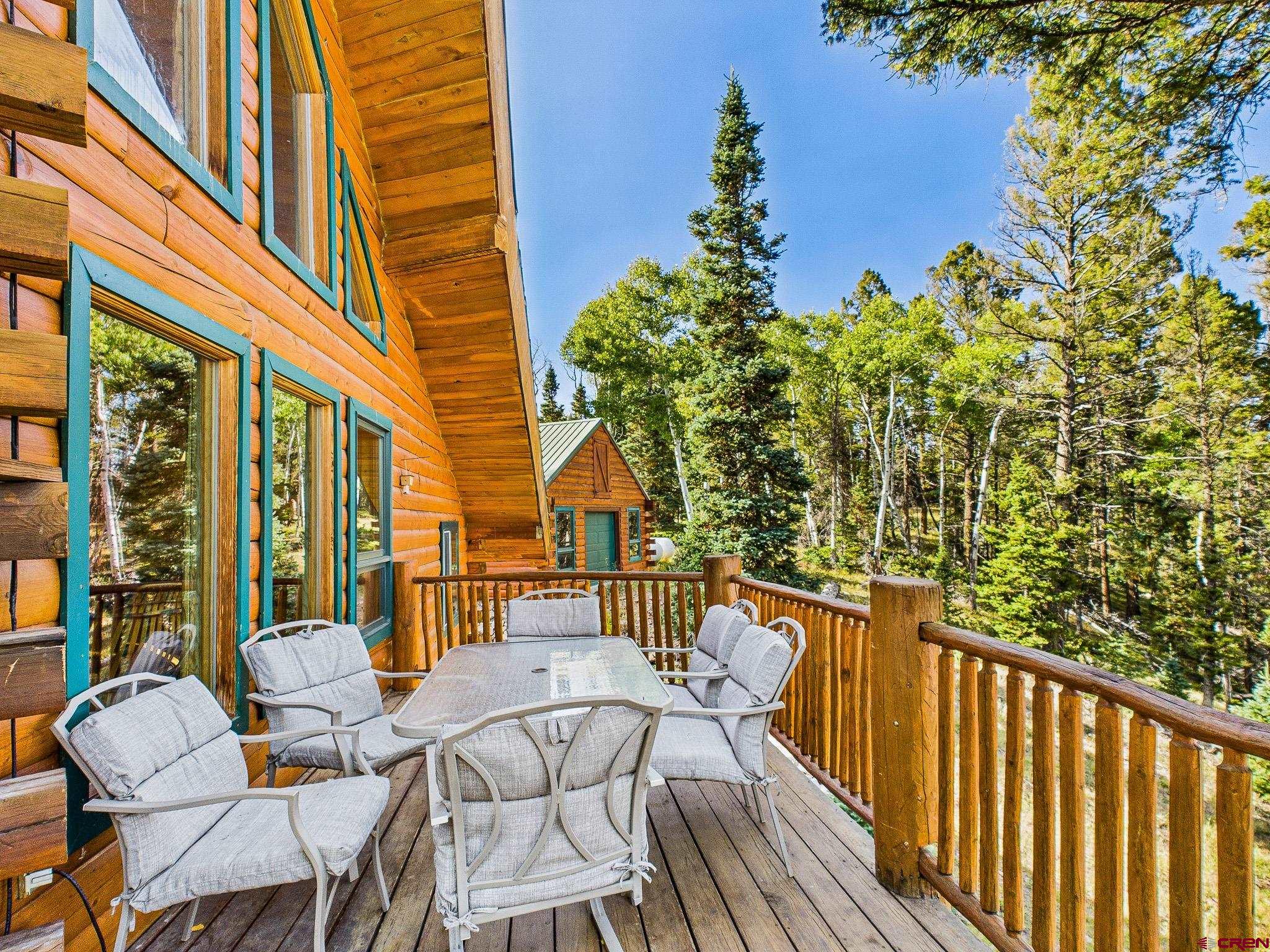 This 4-bedroom, 3-bath log cabin retreat in Arrowhead Ranch offers 3,015 square feet of living space and is ideal for entertaining or use as a short-term rental. The main level features a primary bedroom, laundry room, three-quarter bath, and a spacious living area with a beautiful kitchen that includes an induction cooktop, oven, dishwasher, and trash compactor. From the east deck, enjoy incredible views of Blue Mesa Reservoir to the northeast. On the west covered porch, enjoy the Colorado sunsets through the trees. Upstairs consists of a loft with additional sleeping space, an office area, a full bath, a playroom, and a large storage closet. The lower level provides a sitting area with TV, a game room with a pool table, a boiler room, a bedroom with a bath, and an unfinished steam shower setup and storage closets down the hall. This home comfortably sleeps nine and offers modern upgrades such as on-demand hot water, in-floor radiant heat, an induction fireplace in the lower suite, Starlink internet, and metal roofs throughout. The detached garage is designed with drive-through doors on each end, making it perfect for snowmobile or ATV storage. The property backs to open space on the east side, ensuring long-term privacy. The sellers will consider selling the home furnished and may also offer a 2023 Ranger XP 1000 with tracks, tires, and a full bed cover for the right price. Arrowhead Ranch is a 2,500-acre covenant-protected mountain community known for its one-acre lots, meadows, forests, creeks, and lakes. Residents enjoy private stocked lakes, underground utilities, a central water system, and Arrowhead Mountain Lodge for dining, drinks, and live entertainment. Outdoor recreation is endless with nearby hiking, UTV and side-by-side trails, hunting, and fishing. Blue Mesa Reservoir is just 20 minutes away, offering trophy fishing and boating opportunities. The sellers will be executing a 1031 exchange with this property.