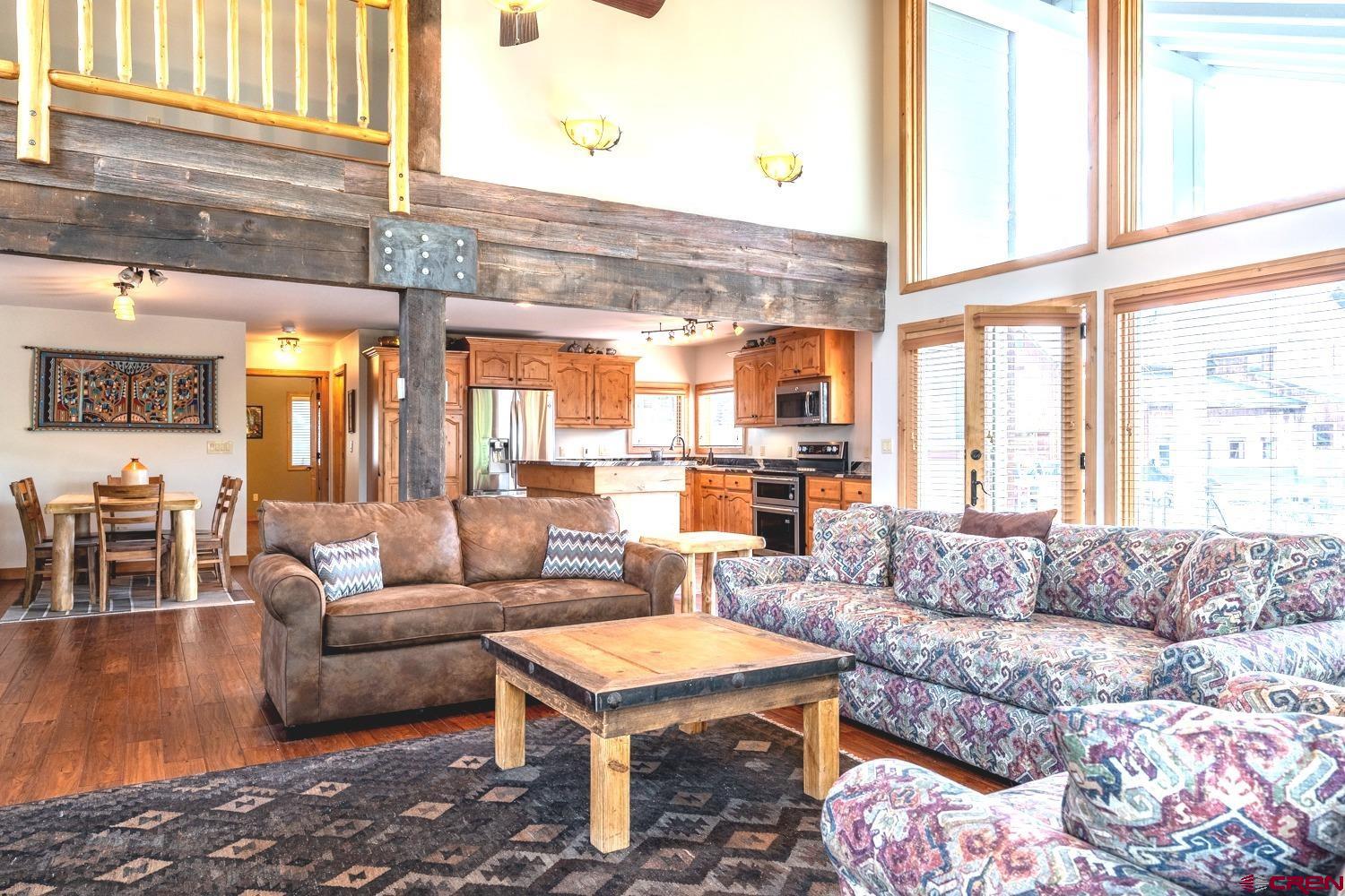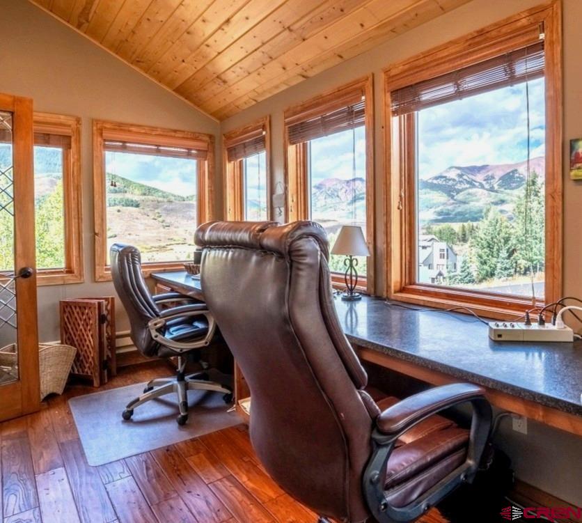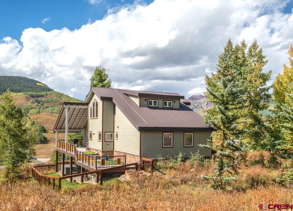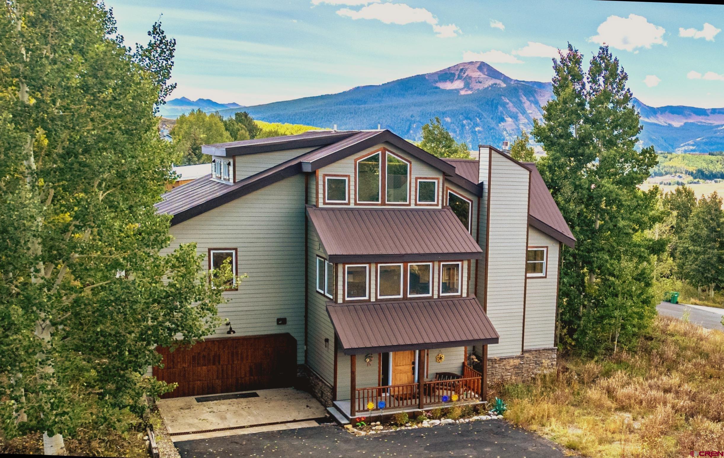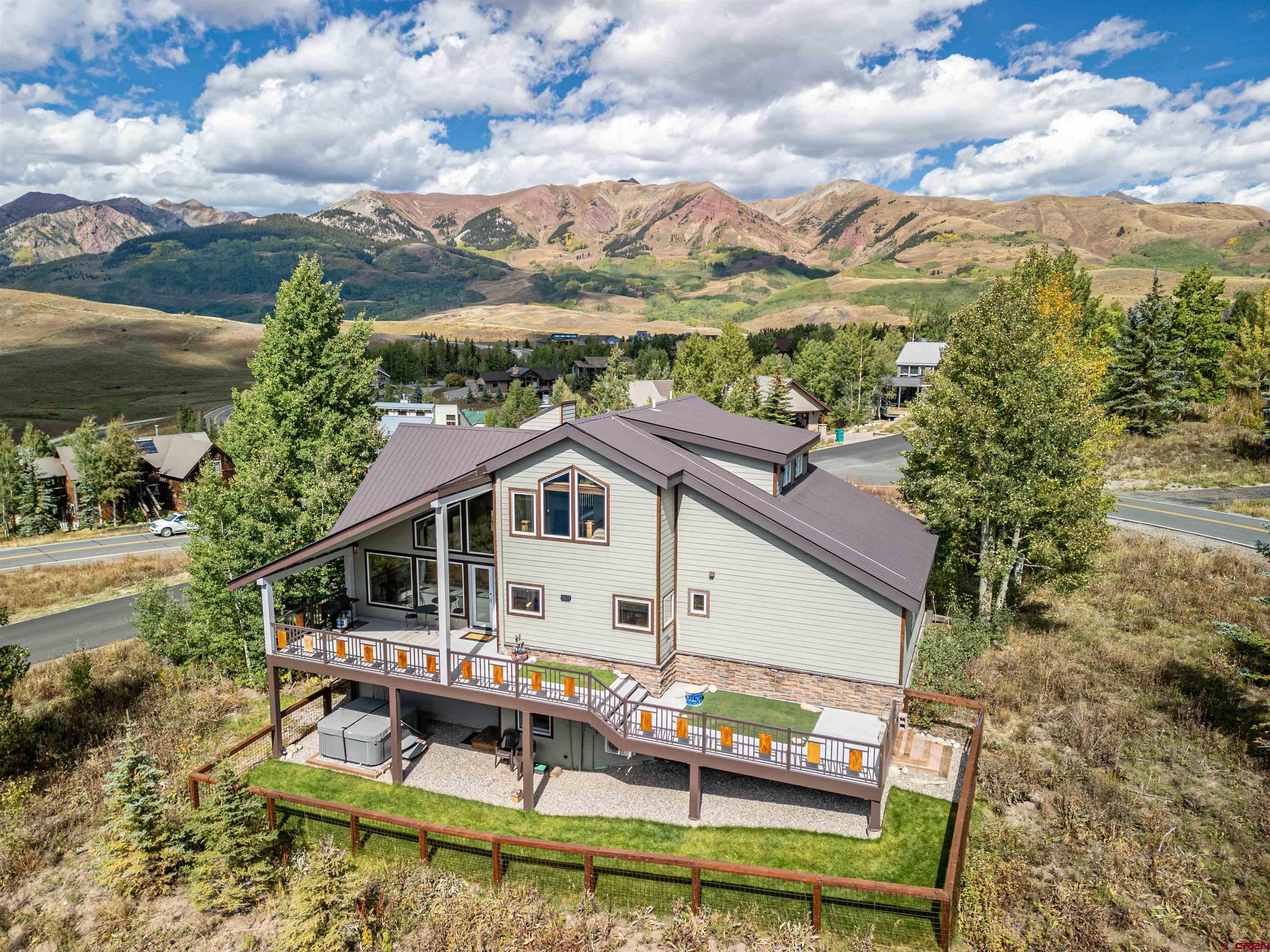 Experience elevated mountain living in this thoughtfully updated single-family home in Mt. Crested Butte capturing stunning panoramic views. Prime location in a coveted neighborhood just around the corner from the slopes and Gold Link lift. This 4 bedroom, 4.5 bath mountain retreat features a desirable open floor plan with the living room showcasing impressive vaulted ceilings accented by reclaimed timber trusses, a natural stone gas fireplace and picture windows that frame the surrounding peaks. Enjoy the spacious well appointed kitchen highlighting knotty alder cabinetry, stainless steel appliances, granite countertops and a large walk-in pantry. Step outside to the expansive wraparound deck, perfect for entertaining and taking in the alpine scenery. There are two primary en-suite bedrooms with each bath featuring granite countertops and soaking tubs. And the third-level primary bedroom also offers an A/C system to help sleep comfortably through the night. Work from home in the dedicated office with a custom built-in desk and inspiring views. The lower entry level offers a second family/ media room with two additional en-suite bedrooms plus direct access to the outdoor hot tub and fenced manicured lawn. A two-car garage and paved driveway complete the package. Further highlights include in-floor radiant heat, hardwood floors, natural log stair balusters and ample storage throughout. When it is time to go skiing, you can walk a short distance to the Homeowner's Trail or take advantage of the free on-demand FirstTracks shuttle that will deliver you directly to the base of the mountain for unmatched convenience!