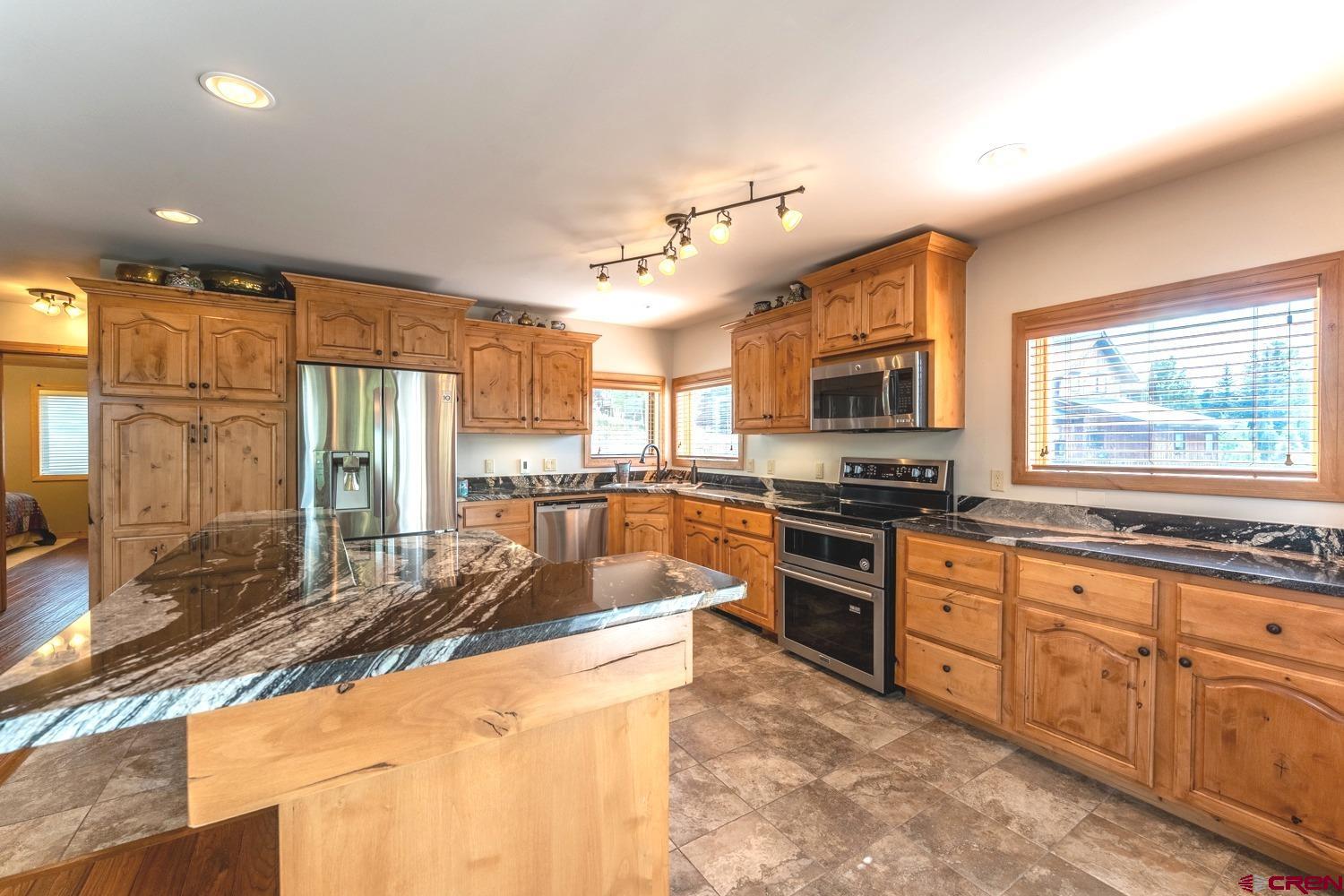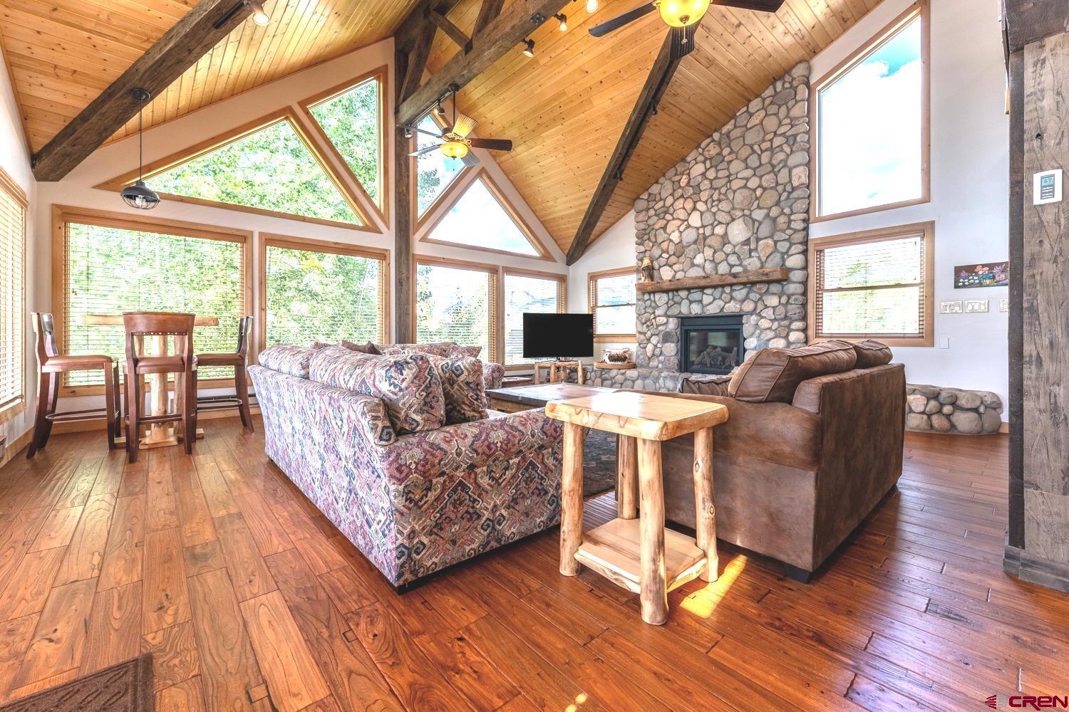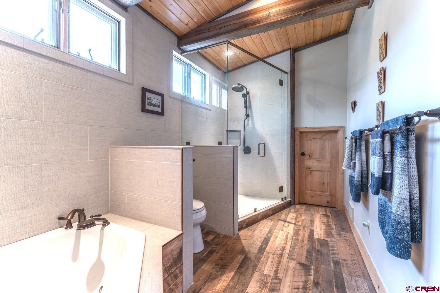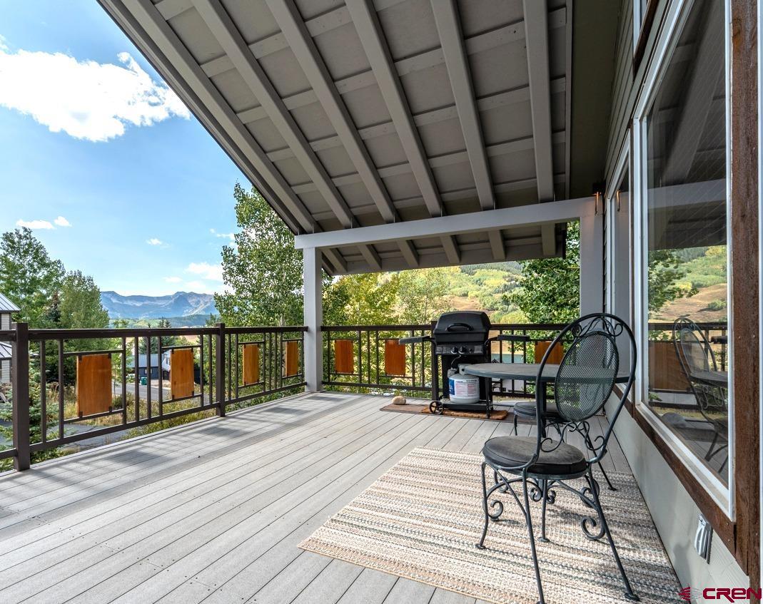 Experience elevated mountain living in this thoughtfully updated single-family home in Mt. Crested Butte capturing stunning panoramic views. Prime location in a coveted neighborhood just around the corner from the slopes and Gold Link lift. This 4 bedroom, 4.5 bath mountain retreat features a desirable open floor plan with the living room showcasing impressive vaulted ceilings accented by reclaimed timber trusses, a natural stone gas fireplace and picture windows that frame the surrounding peaks. Enjoy the spacious well appointed kitchen highlighting knotty alder cabinetry, stainless steel appliances, granite countertops and a large walk-in pantry. Step outside to the expansive wraparound deck, perfect for entertaining and taking in the alpine scenery. There are two primary en-suite bedrooms with each bath featuring granite countertops and soaking tubs. And the third-level primary bedroom also offers an A/C system to help sleep comfortably through the night. Work from home in the dedicated office with a custom built-in desk and inspiring views. The lower entry level offers a second family/ media room with two additional en-suite bedrooms plus direct access to the outdoor hot tub and fenced manicured lawn. A two-car garage and paved driveway complete the package. Further highlights include in-floor radiant heat, hardwood floors, natural log stair balusters and ample storage throughout. When it is time to go skiing, you can walk a short distance to the Homeowner's Trail or take advantage of the free on-demand FirstTracks shuttle that will deliver you directly to the base of the mountain for unmatched convenience!