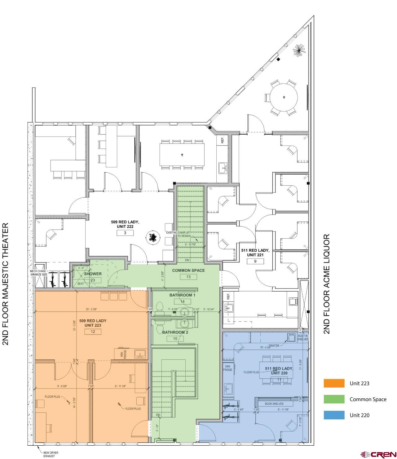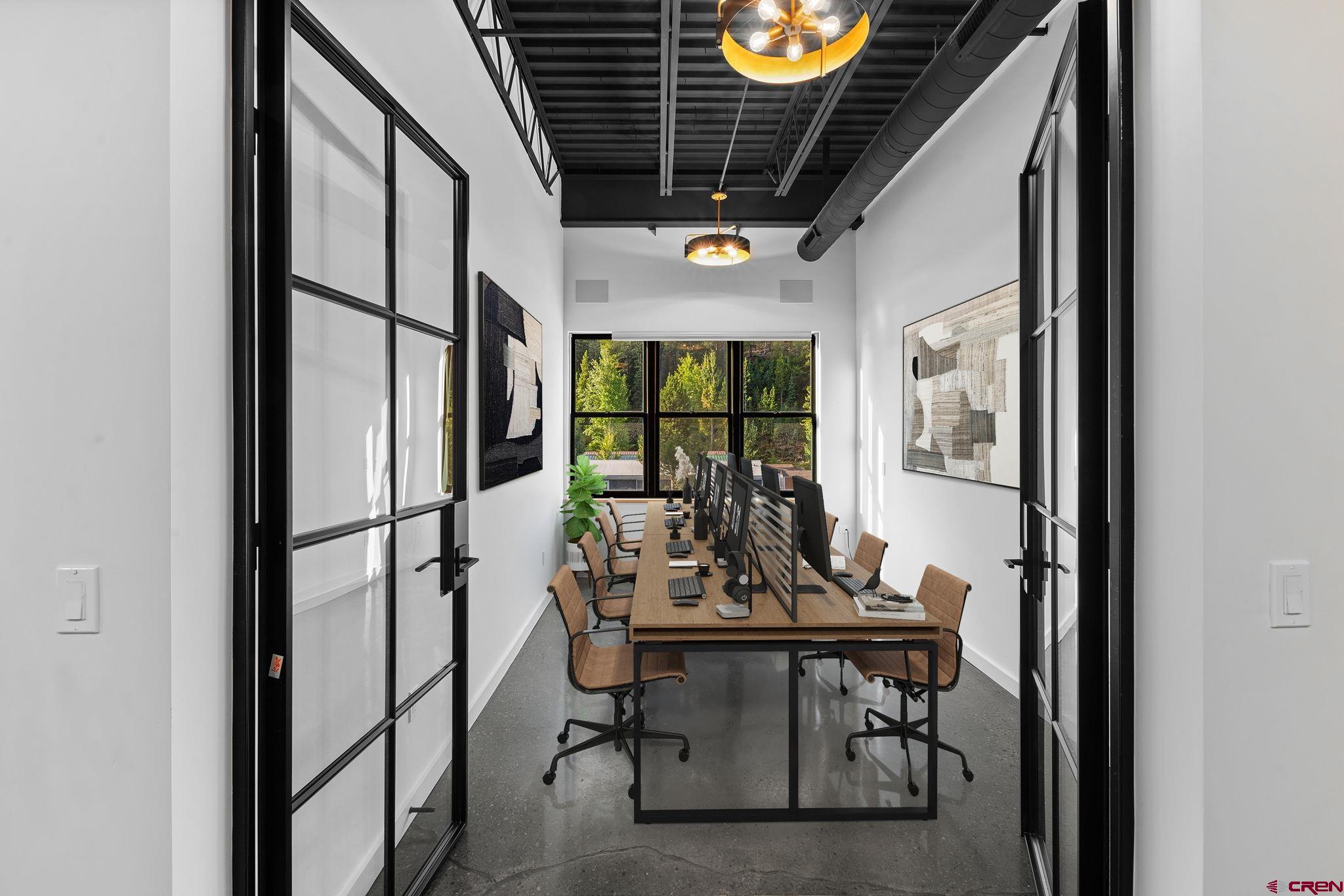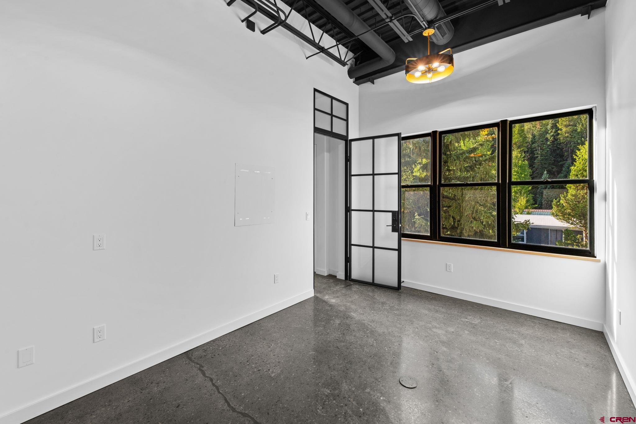 Prime Commercial Office Space in Downtown Crested Butte Welcome to 509 Red Lady, Unit 223 - a fully remodeled professional office space completed in December 2024, offering 555 square feet in the heart of Crested Butte. This thoughtfully designed suite includes three separate rooms and two entrances, allowing the space to function seamlessly as one large office or be divided into two independent spaces. With the option to sublet one room, the layout provides maximum flexibility for a variety of business needs. The interior blends modern finishes with warm accents, featuring polished concrete floors, oak window sills, a striking oak accent wall with cove lighting, and soaring 13-foot ceilings with exposed framing. Expansive steel and glass double-paned doors and windows spread natural light throughout the space, while premium soundproofing using mass loaded vinyl and RC channel ensures quiet and privacy. A private kitchenette adds convenience, and a brand-new forced-air heating and cooling system installed in 2024 offers year-round comfort. The space is also hardwired with CAT6, making it perfectly equipped for today’s business demands. Beyond the private office, tenants enjoy 468 square feet of shared common space, including two bathrooms, a storage closet, and a newly refurbished stair lift at the front entrance. The building offers both a large public parking lot at the front and private parking at the rear, making access effortless for clients and staff. Monthly HOA dues are just $234.86 and the annual taxes are $1,864. Unit 223 is a rare opportunity to secure a turnkey commercial space in one of Crested Butte’s most desirable locations. Whether envisioned as a full-time headquarters, a collaborative creative environment, or a smart investment property, this office combines premier location, thoughtful design, and unmatched functionality. *several photos are virtually staged with furniture*