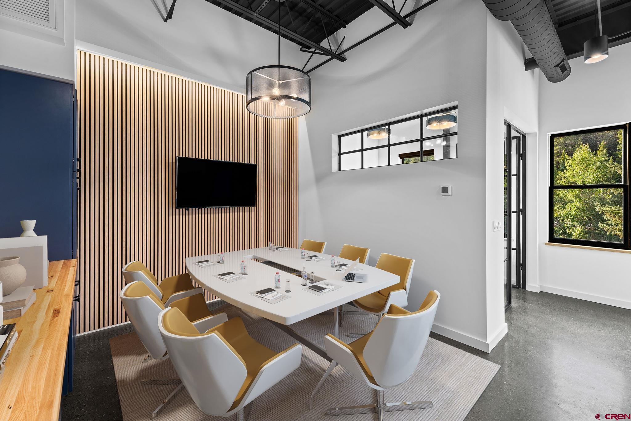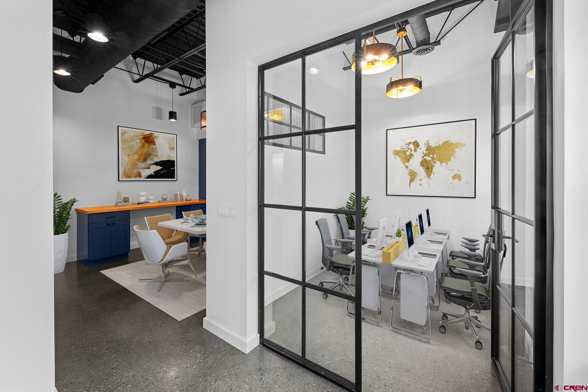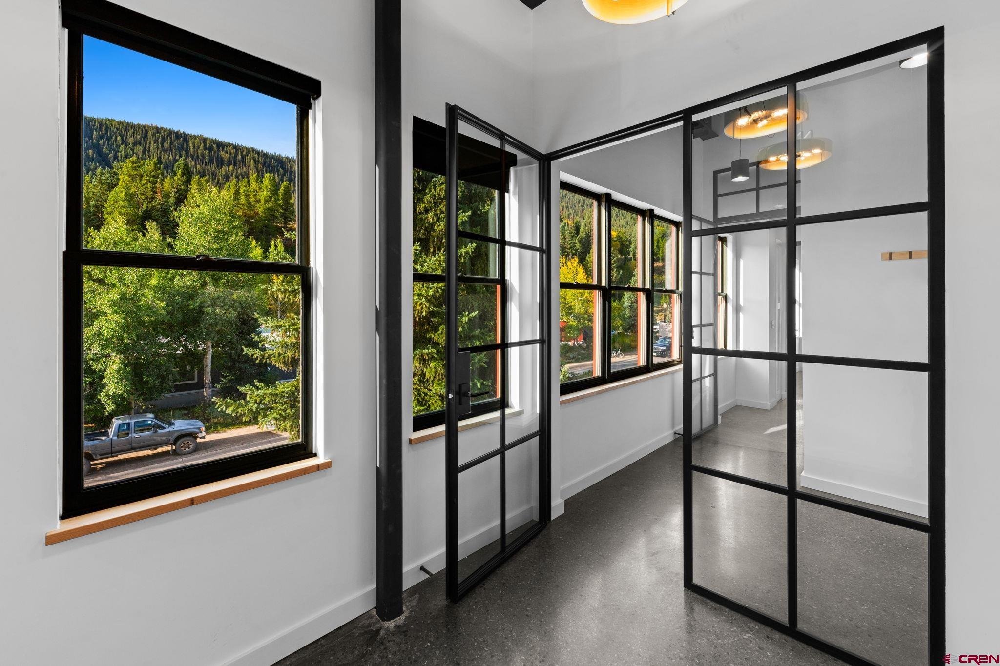Professional Office Space in Premier Crested Butte Location. Welcome to 511 Red Lady, Unit 220 - a fully remodeled office space completed in December 2024 and thoughtfully designed for both professionalism and comfort. Offering 320 square feet, this unit features a private office and a large conference room with ample space for additional desks, making it ideal for a wide range of business uses. Custom cabinetry provides abundant storage, while a private kitchenette and an oak accent wall with cove lighting add both convenience and sophistication. The space is finished with polished concrete floors, oak window sills, and drywall returns, all highlighted by 13-foot ceilings with exposed framing and high-end light fixtures. Natural light filters throughout the office thanks to steel and glass double-paned doors and windows, while top-of-the-line soundproofing ensures quiet and privacy. A brand-new forced-air heating and cooling system installed in 2024 and hardwired CAT6 connectivity make the unit modern, efficient, and move-in ready. Beyond the private suite, tenants enjoy 468 square feet of shared common space, which includes two bathrooms, a storage closet, and two entrances, one of which is equipped with a newly refurbished stair lift at the front. The building’s location offers easy access with a large public parking lot in front and private parking behind. Monthly HOA dues are $183.44 and the annual taxes are $1,423. Unit 220 presents a rare opportunity to own a turnkey professional office in the heart of Crested Butte. With its thoughtful design, premier finishes, and unbeatable location, it is the perfect setting for a business seeking both function and style. *several photos are virtually staged with furniture*