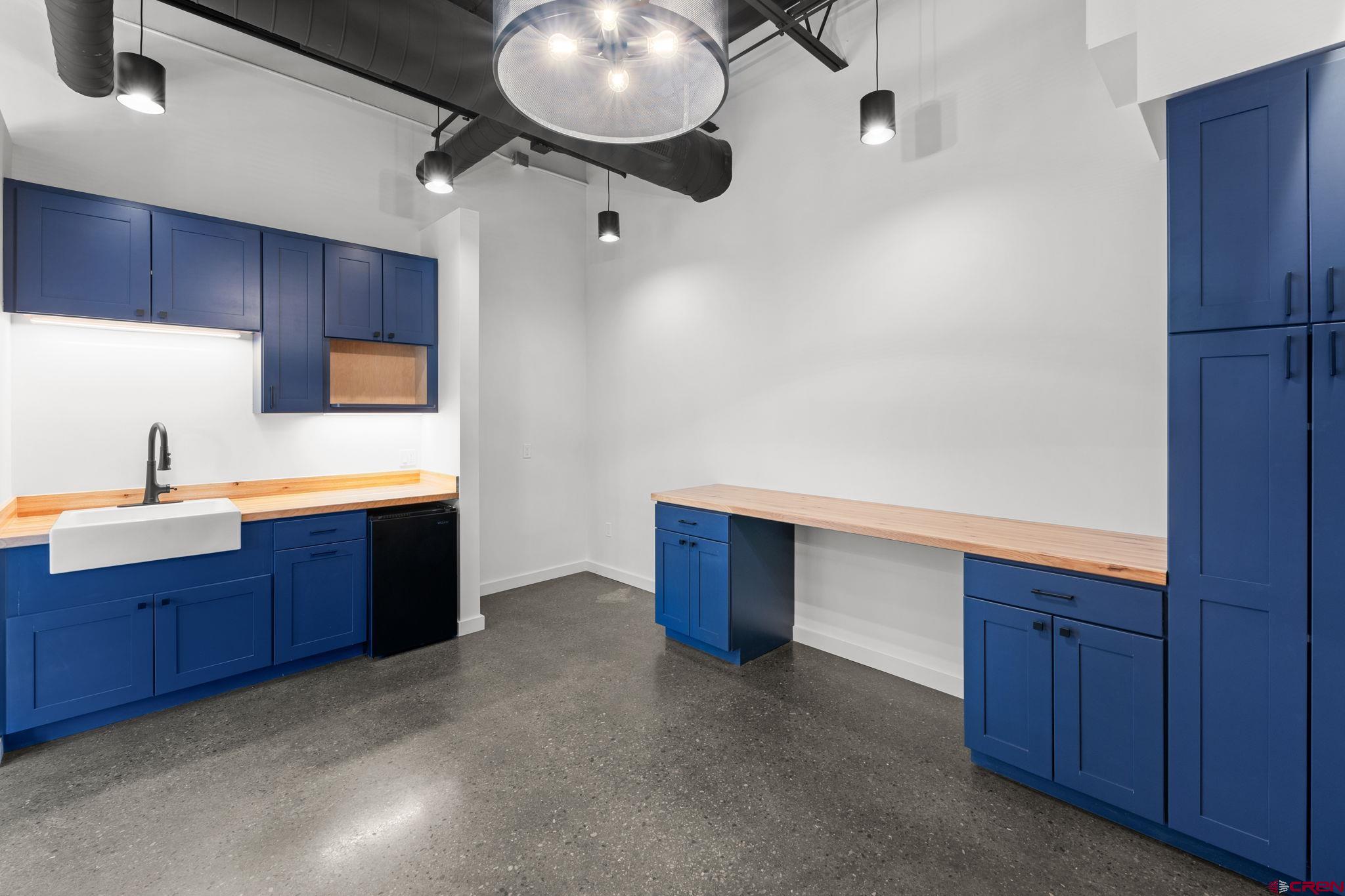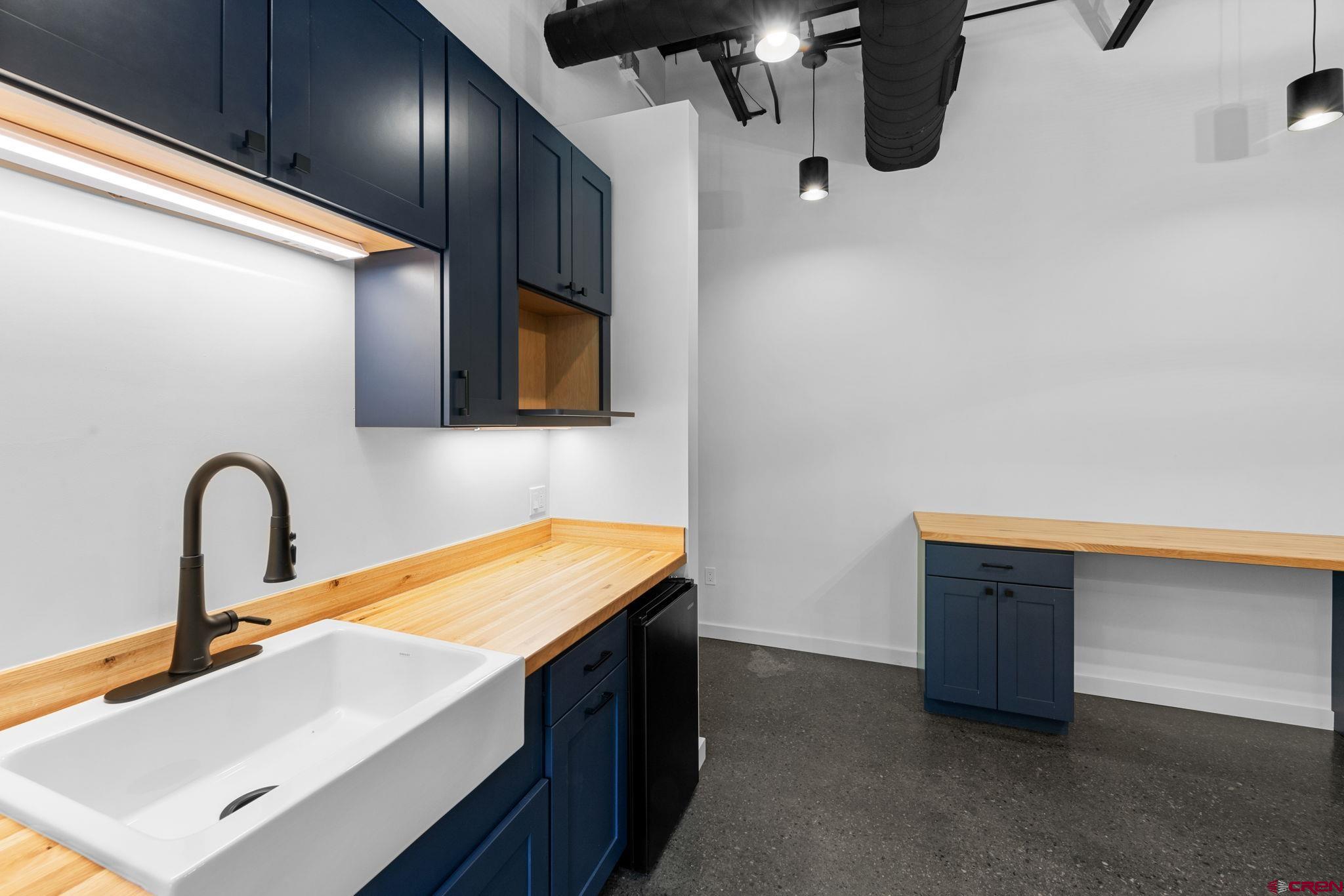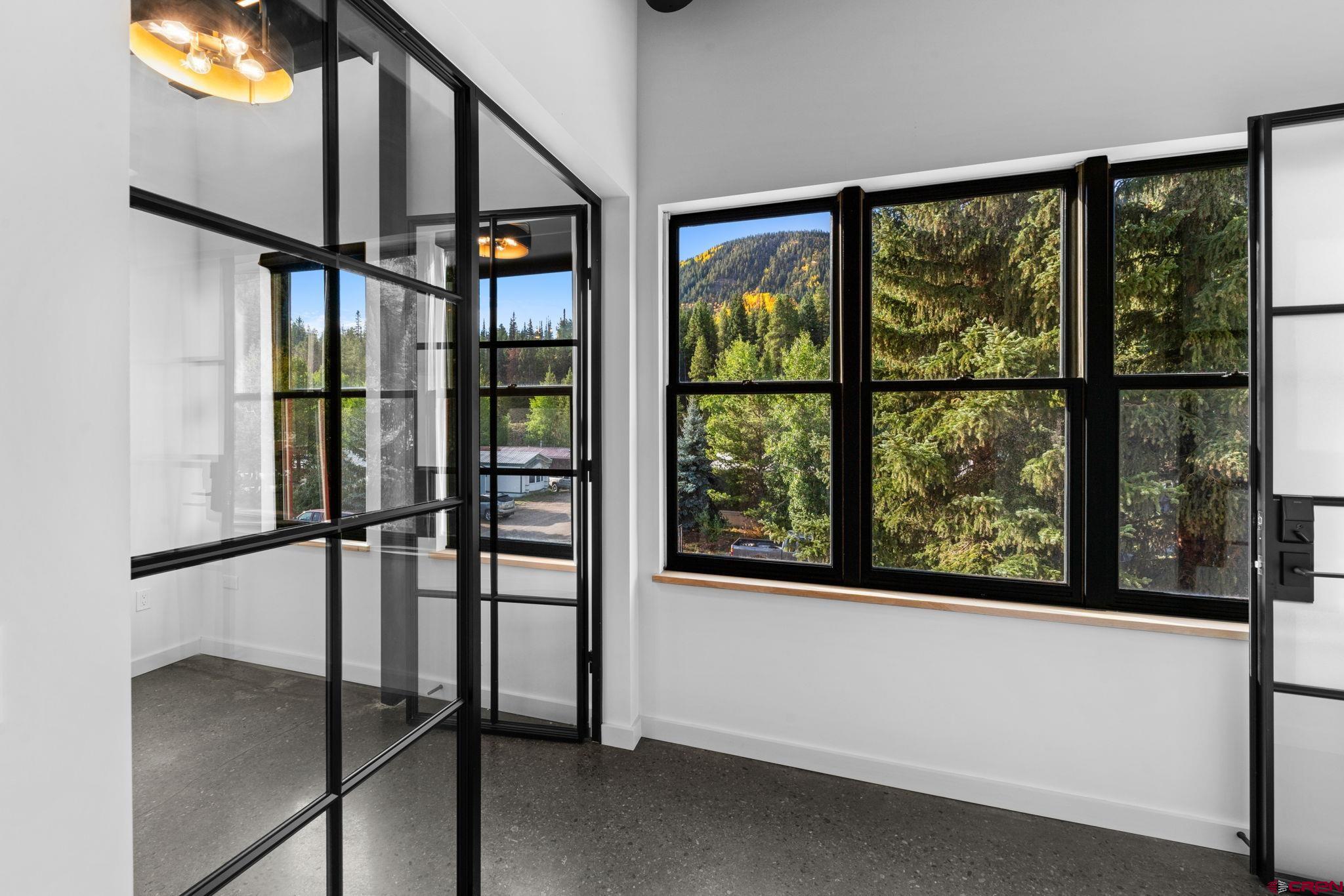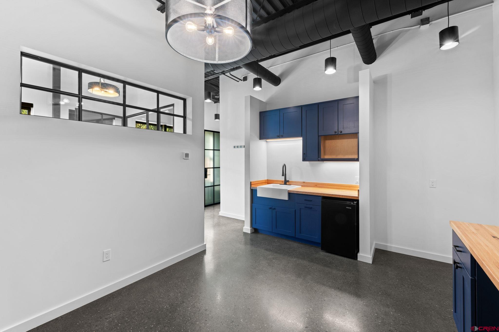 Professional Office Space in Premier Crested Butte Location. Welcome to 511 Red Lady, Unit 220 - a fully remodeled office space completed in December 2024 and thoughtfully designed for both professionalism and comfort. Offering 320 square feet, this unit features a private office and a large conference room with ample space for additional desks, making it ideal for a wide range of business uses. Custom cabinetry provides abundant storage, while a private kitchenette and an oak accent wall with cove lighting add both convenience and sophistication. The space is finished with polished concrete floors, oak window sills, and drywall returns, all highlighted by 13-foot ceilings with exposed framing and high-end light fixtures. Natural light filters throughout the office thanks to steel and glass double-paned doors and windows, while top-of-the-line soundproofing ensures quiet and privacy. A brand-new forced-air heating and cooling system installed in 2024 and hardwired CAT6 connectivity make the unit modern, efficient, and move-in ready. Beyond the private suite, tenants enjoy 468 square feet of shared common space, which includes two bathrooms, a storage closet, and two entrances, one of which is equipped with a newly refurbished stair lift at the front. The building’s location offers easy access with a large public parking lot in front and private parking behind. Monthly HOA dues are $183.44 and the annual taxes are $1,423. Unit 220 presents a rare opportunity to own a turnkey professional office in the heart of Crested Butte. With its thoughtful design, premier finishes, and unbeatable location, it is the perfect setting for a business seeking both function and style. *several photos are virtually staged with furniture*