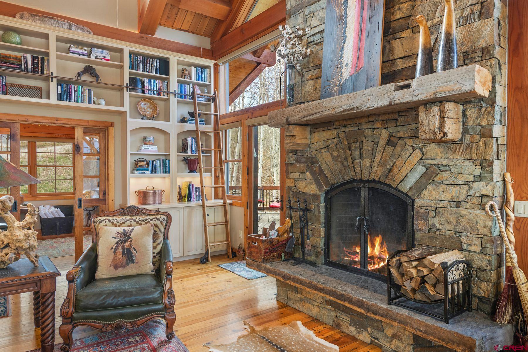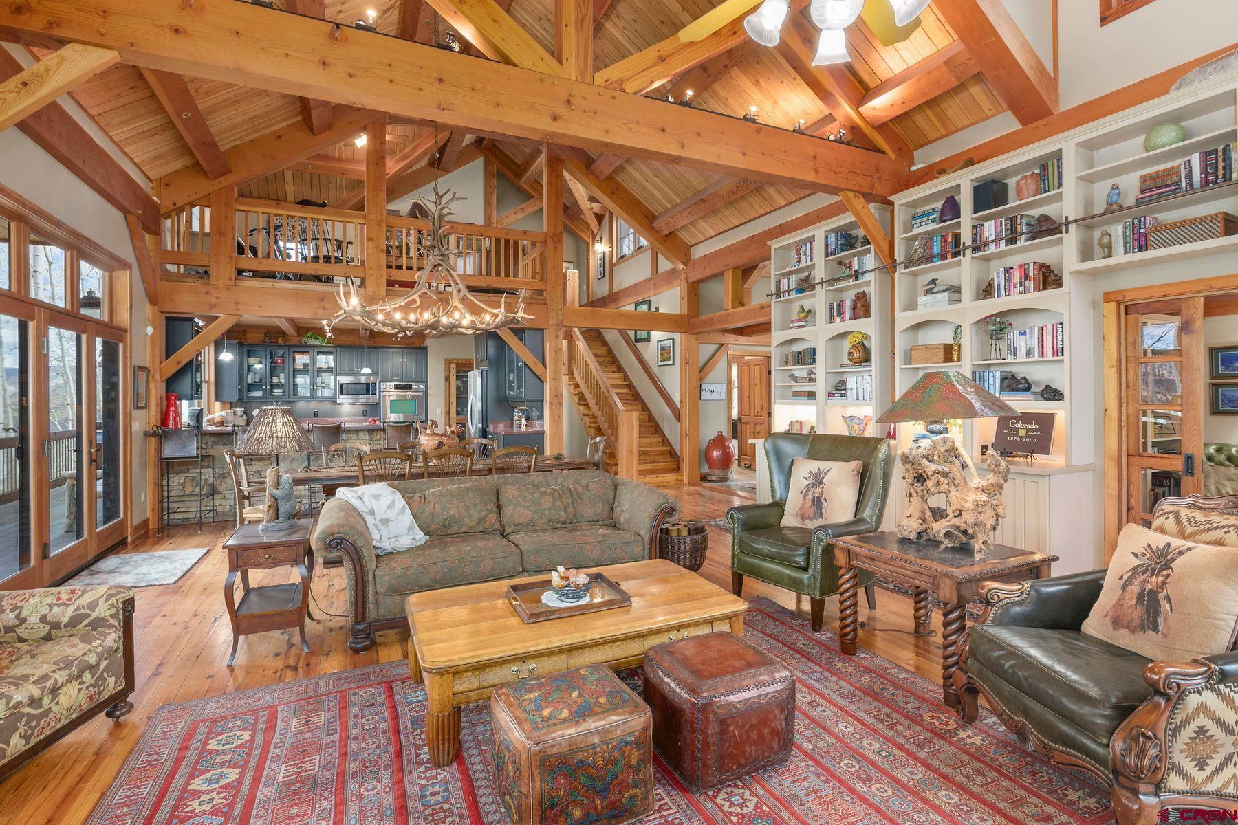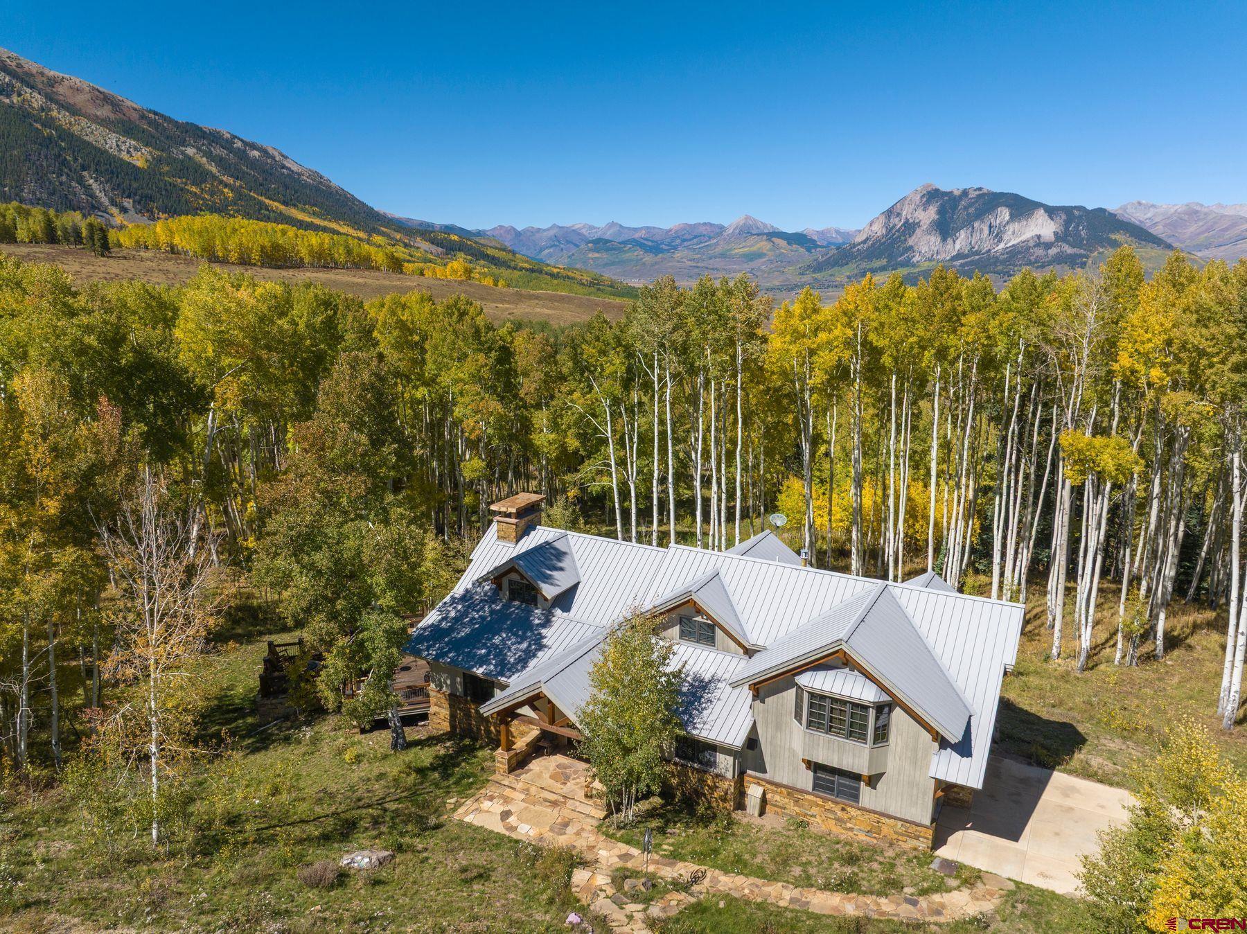 This magnificent Red Mountain Ranch home has garnered multiple national architectural awards including the American Institute of Building Design – 2013 Best Home Over 2,500 sq ft. and Best Home 2013 Reader’s Choice Award – Timber Home Living. The house has also been prominently featured in the Texas Timber Frame Co. brochure. The secluded and refined estate is affectionately called The Tree House. This name was given by the owners who envisioned building a sanctuary pairing rustic elegance with the beautiful forest setting on 35 elevated acres in the coveted Red Mountain Ranch community. Tucked away amid an aspen grove with broad views of Mt. Crested Butte, the East River Valley and the entire Elk Mountain horizon, this breathtaking 4 bedroom, 4 bath mountain retreat offers the perfect balance of privacy, elegance and adventure close to Crested Butte. Your sense of arrival is heightened by high quality construction seen in mammoth timber entry posts, natural rock pillars and stacked stone walls. The home is a genuine timber frame dwelling built by Texas Timber Frame artisans using peg and mortis construction without one nail or metal plate. The mountain lodge design is enriched by the grand dry stacked stone fireplace in the great room and immense chimney cap constructed by master mason Dave Dennis with stone hand- picked by the family from a quarry in Arkansas. The heavy timber frame construction is built with richly looking antique long leaf pine floors, artisan doors and woodwork reclaimed and crafted with material from the historic Murphy Street Church in Taylor, Texas. This elegant 4,016 sq. ft. residence features an impressive great room with a tall cathedral ceiling providing a warm patina from the heavy timbers and cedar planks. Two family gathering areas, a gourmet cook’s kitchen with double wall ovens, warming oven, built-in 48”cooktop, stainless appliances and granite counters, a wine cellar for several hundred bottles, two spacious offces, primary ensuite bedroom with private covered balcony and inspiring views to the mountain horizon, a second king ensuite bedroom and 2 guest bedrooms, 2 more full baths, and an impressive ironwood constructed entertaining deck containing a new hot tub and an adjoining firepit sundeck all contribute to the enjoyment for family and friends. The extraordinary Red Mountain Ranch land parcel provides an engaging variety of topography with a steep 75-foot rocky, timbered ravine enhanced by a dramatic waterfall during Spring runoff, natural meadows including a wedding meadow, a large natural spring attracting forest animals, and numerous aspen groves providing habitat for elk, deer and moose. In your search for the perfect and private, uniquely crafted, high quality, mostly furnished, turnkey mountain sanctuary, The Tree House at 796 Red Mountain Ranch Road is a legacy residence ready for the enjoyment, mountain adventures and memories for you and your family and friends.