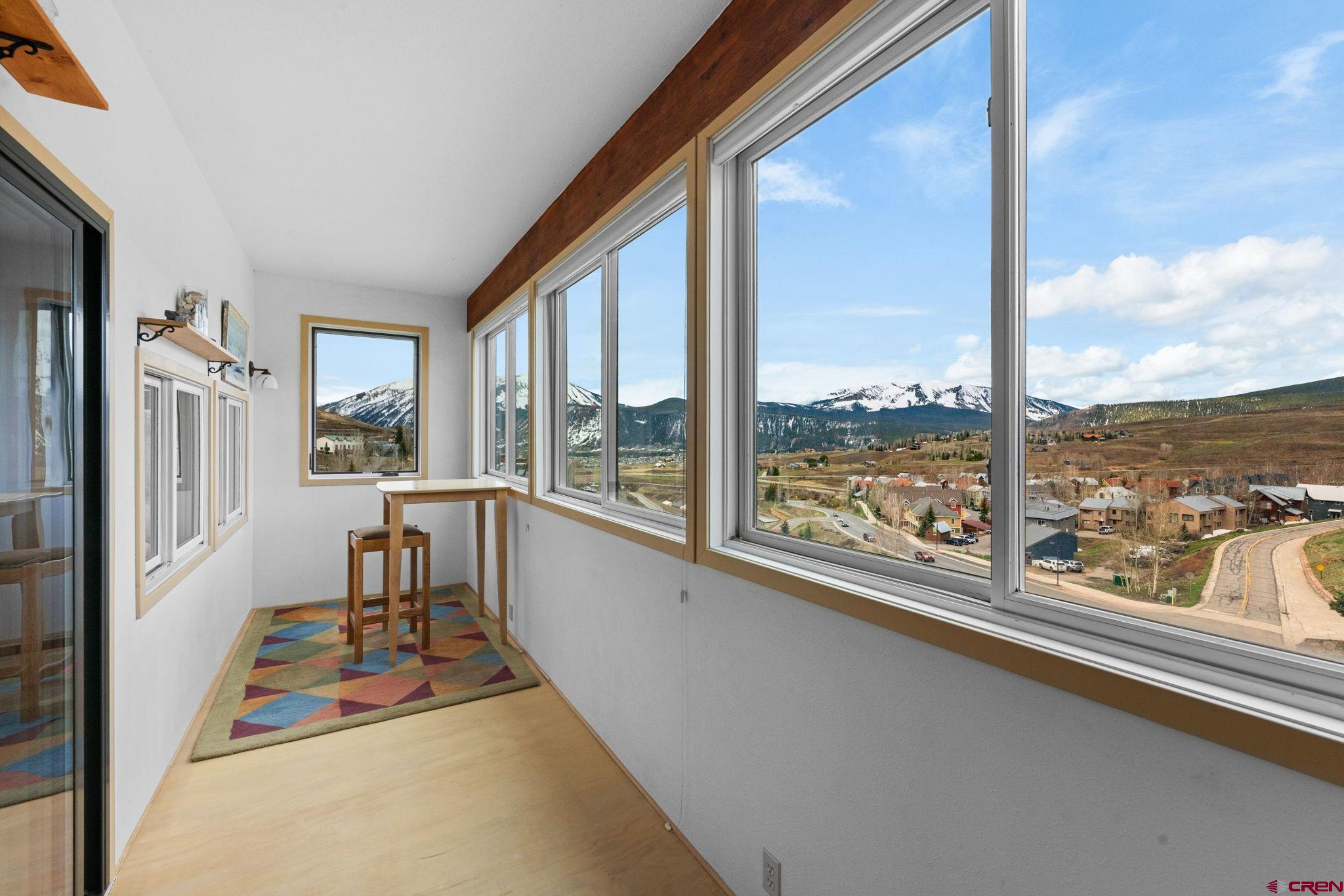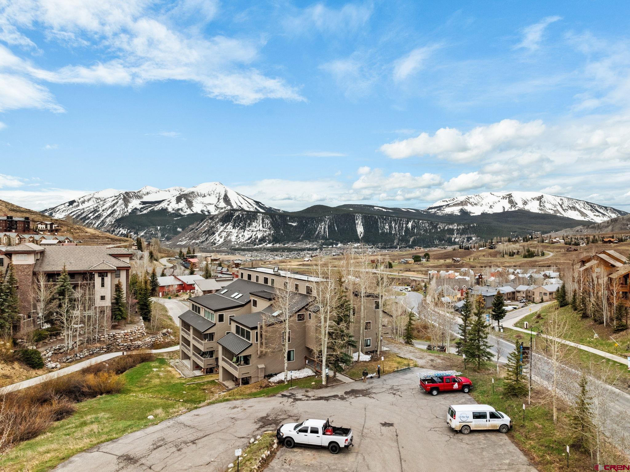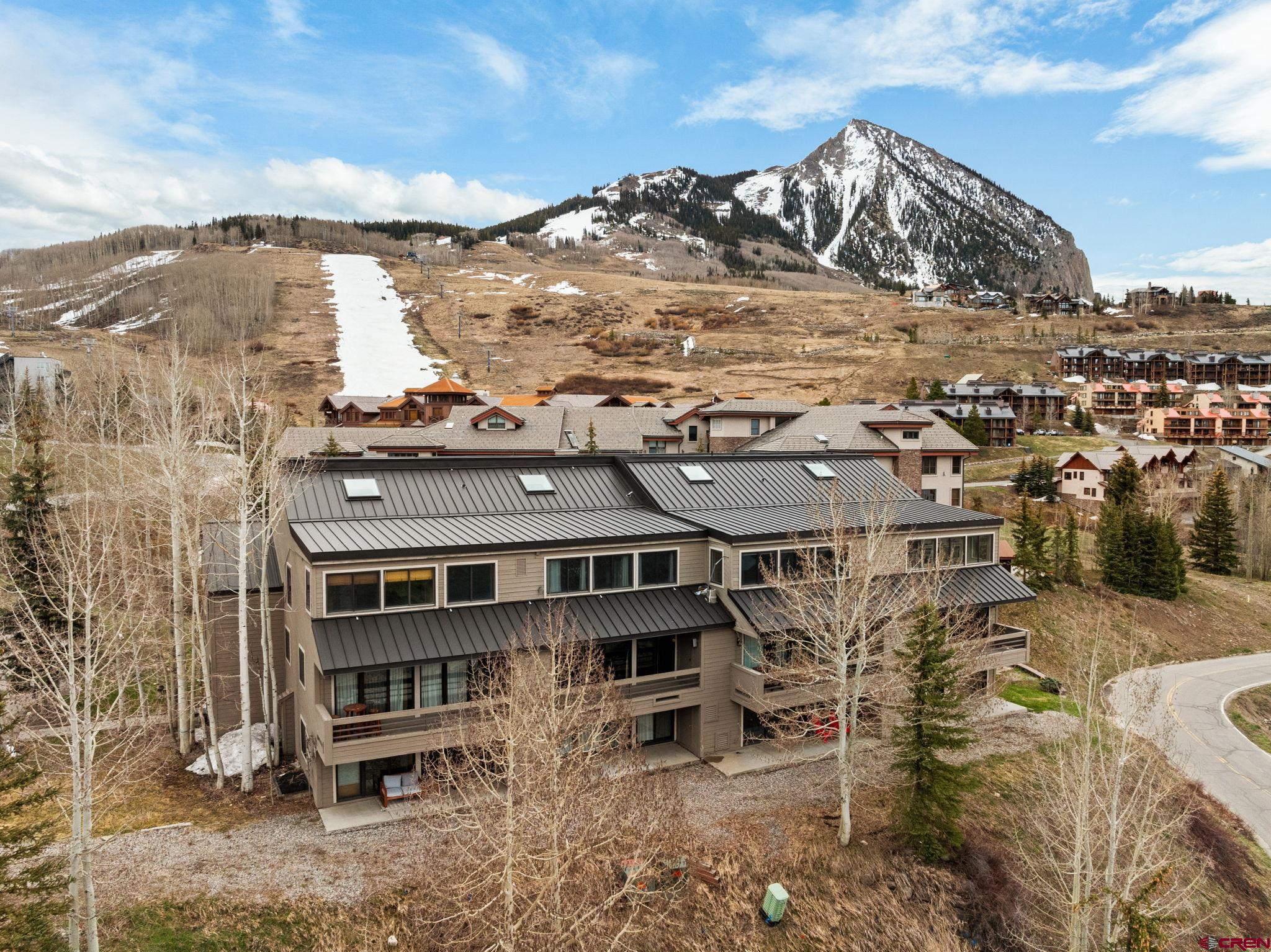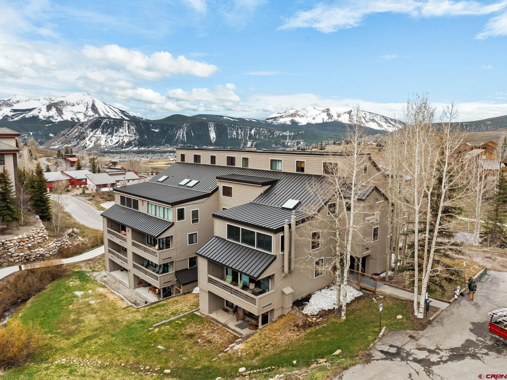 Top-Floor Mountain Retreat with Unmatched Views in Mt. Crested Butte. Welcome to Residence 507 at Mountain Edge, an exceptional top-floor, end-unit condominium offering stunning panoramic views and a true mountain lifestyle experience. Ideally positioned with a coveted southern exposure, this 1,234 sq ft residence captures abundant natural light, passive solar warmth in the winter, and breathtaking vistas of Mt. Crested Butte and the surrounding mountains from every window. Inside, you’ll find soaring vaulted ceilings that create a spacious, open atmosphere rarely found in condominium living. The thoughtfully updated kitchen features a generous island, granite counters, and a convenient dining area that is perfect for hosting after a day on the slopes. Relax in the inviting living room beside the stylish Napoleon electric fireplace, or step into the year-round sunroom that is an ideal space for reading, sipping coffee, or soaking in the sunshine. The main level includes a comfortable bedroom with a walk-in closet, a full bathroom, and in-unit laundry which is an uncommon and valuable feature in mountain condos. Upstairs, the spacious primary suite offers captivating views of the ski area, a vaulted ceiling, and an en-suite bath. A versatile loft provides additional sleeping quarters, home office potential, or the opportunity to create a fully enclosed third bedroom. Additional amenities include two large storage closets - one inside the unit and another in the hallway - ideal for ski gear and outdoor equipment. Residents of Mountain Edge enjoy access to a community hot tub with commanding mountain views, and the location couldn’t be more convenient: just off Gothic Road, steps from the base area, and directly on the free shuttle route to take you to the base area or downtown Crested Butte. Whether you're seeking a full-time mountain home, a seasonal getaway, or a strong short-term rental opportunity, Residence 507 delivers on comfort, convenience, and the quintessential Crested Butte lifestyle.