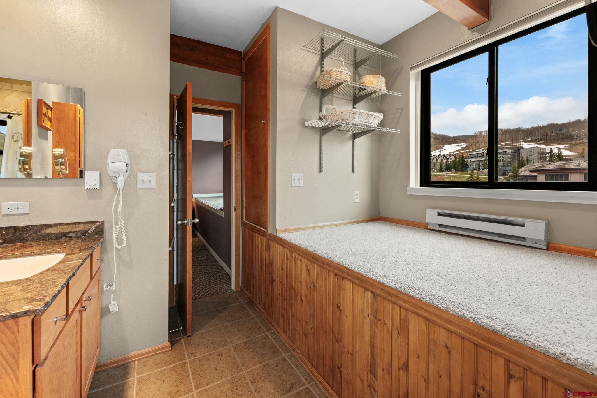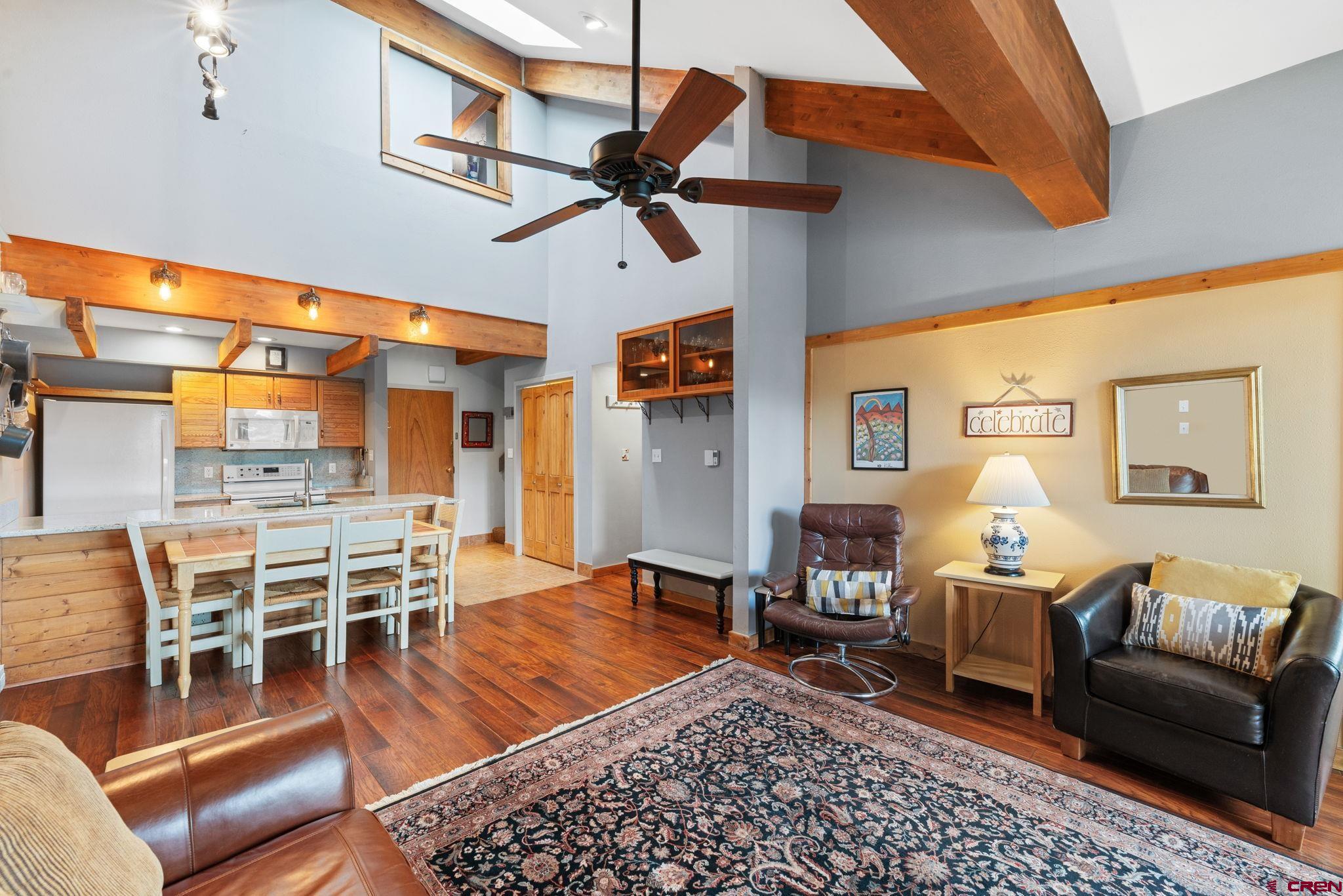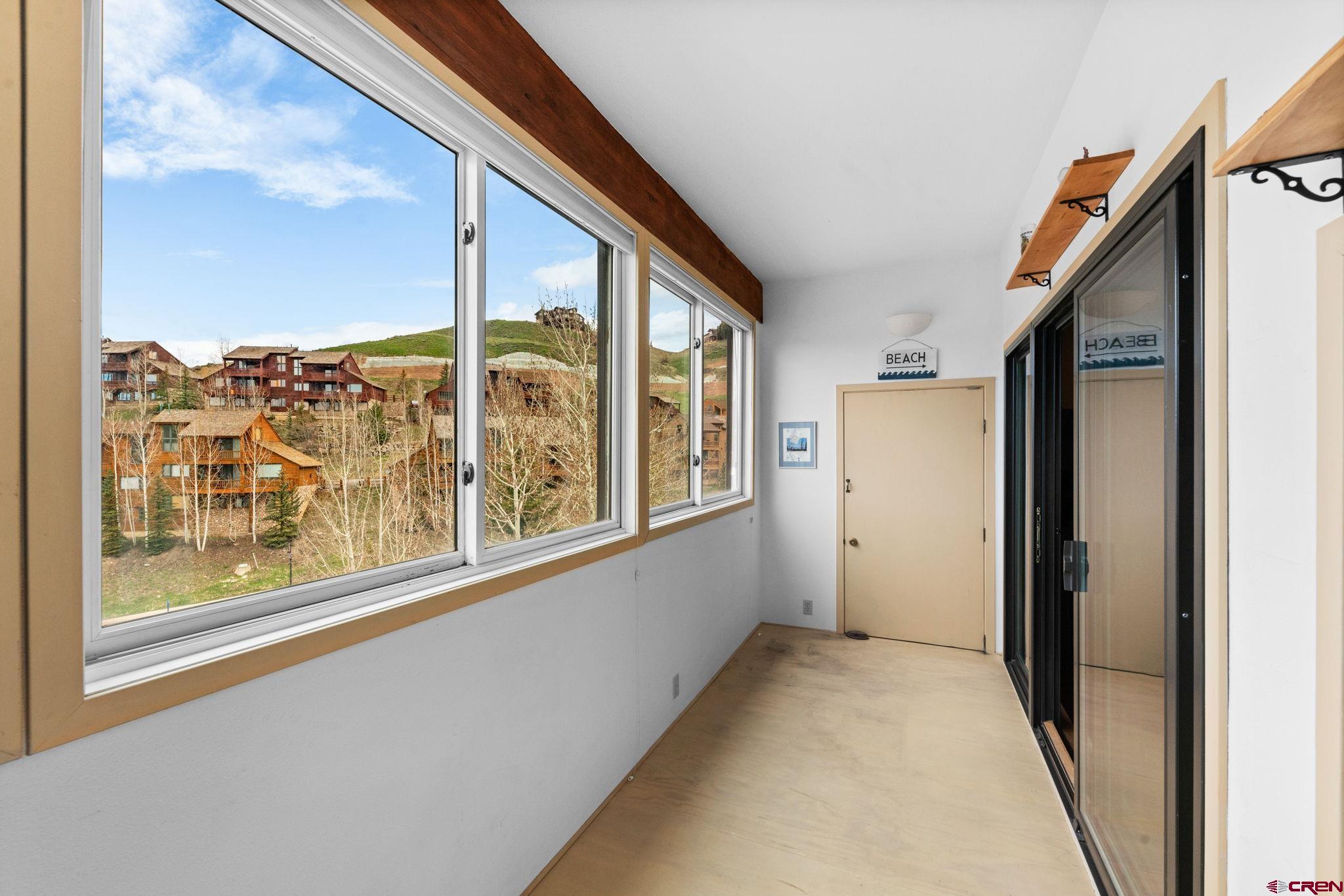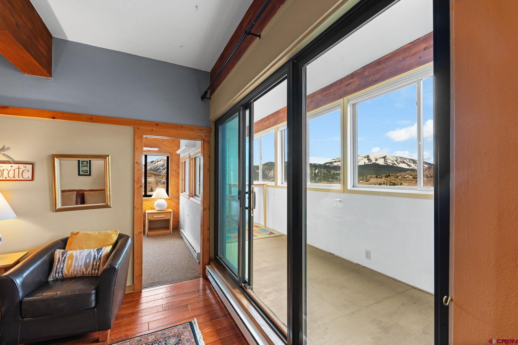 Top-Floor Mountain Retreat with Unmatched Views in Mt. Crested Butte. Welcome to Residence 507 at Mountain Edge, an exceptional top-floor, end-unit condominium offering stunning panoramic views and a true mountain lifestyle experience. Ideally positioned with a coveted southern exposure, this 1,234 sq ft residence captures abundant natural light, passive solar warmth in the winter, and breathtaking vistas of Mt. Crested Butte and the surrounding mountains from every window. Inside, you’ll find soaring vaulted ceilings that create a spacious, open atmosphere rarely found in condominium living. The thoughtfully updated kitchen features a generous island, granite counters, and a convenient dining area that is perfect for hosting after a day on the slopes. Relax in the inviting living room beside the stylish Napoleon electric fireplace, or step into the year-round sunroom that is an ideal space for reading, sipping coffee, or soaking in the sunshine. The main level includes a comfortable bedroom with a walk-in closet, a full bathroom, and in-unit laundry which is an uncommon and valuable feature in mountain condos. Upstairs, the spacious primary suite offers captivating views of the ski area, a vaulted ceiling, and an en-suite bath. A versatile loft provides additional sleeping quarters, home office potential, or the opportunity to create a fully enclosed third bedroom. Additional amenities include two large storage closets - one inside the unit and another in the hallway - ideal for ski gear and outdoor equipment. Residents of Mountain Edge enjoy access to a community hot tub with commanding mountain views, and the location couldn’t be more convenient: just off Gothic Road, steps from the base area, and directly on the free shuttle route to take you to the base area or downtown Crested Butte. Whether you're seeking a full-time mountain home, a seasonal getaway, or a strong short-term rental opportunity, Residence 507 delivers on comfort, convenience, and the quintessential Crested Butte lifestyle.