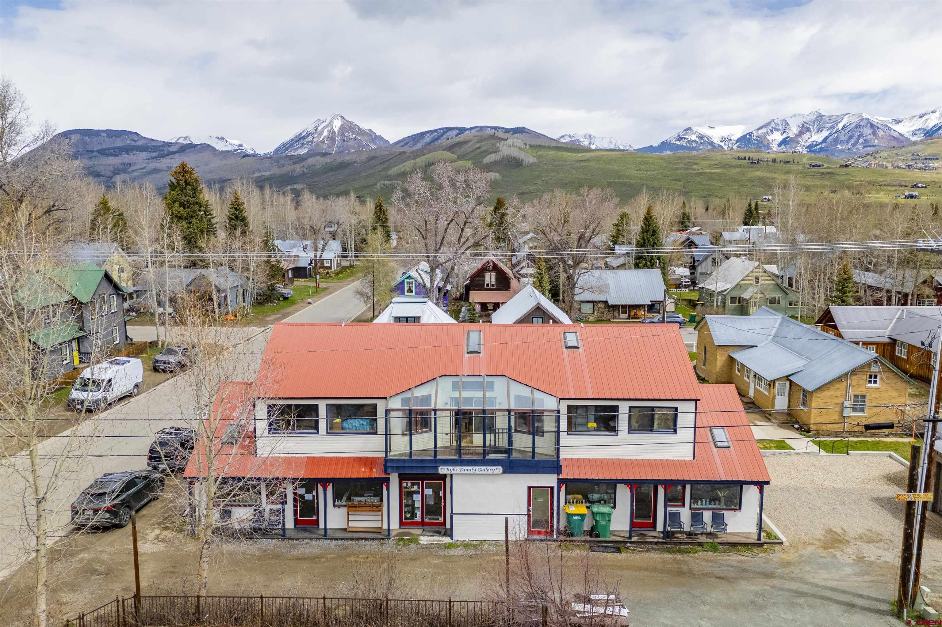 Why is the Rijks Gallery the most compelling listing in 2025? UNIQUE LOCATION: We are located on Second Street between Elk Avenue and Maroon Avenue in historic Crested Butte, Colorado. Elk Avenue is the main street anchoring the business district in town. Maroon Avenue is the gateway to the desirable West End residential zone. The Rijks Gallery is nestled between the two with the added benefits of fronting a short cul-de-sac alley, overlooking Coal Creek and facing multiple majestic peaks. UNIQUE BUILDING: The Rijks Gallery was built by local artist Susan Anderton as an art gallery and craft shop with an upstairs personal residence. Today, the lower level is one open commercial space housing the Rijks’ art gallery and frame shop. The property consists of 2,922 total square feet on a 1,988 square foot lot. A new building this size would require a lot three-times larger under current zoning. UNIQUE ZONING: The Rijks Gallery is the only R3C parcel tangent to the north side of the business core. The R3C zoning designation allows for a host of residential and commercial uses, including 1-2 family dwelling units, food and beverage, lodging, retail, office and service establishments. In its current configuration, the street level of the Rijks Gallery occupies 1,716 square feet with one half-bath and plumbing for a second bathroom. This space has three separate entrances off the alley facilitating multiple commercial uses and tenants. The upstairs residence occupies 1,206 square feet with an oversized kitchen/living/dining area, 3 bedrooms (one set up as an office today) and 2 more bathrooms (2.5 total today). Per the zoning, either level could be converted to a commercial or residential use(s) giving the new owner tremendous flexibility to have a single-family home, a prime commercial space or both (subject to Town approval, of course). Please call Scout or your local real estate professional for a closer look at this truly one-of-a-kind property in the heart of Crested Butte! [Note: Learn more about the Rijks Gallery at rijksgallery-dot-com; Watch the 60-second property video; Learn more from reading the picture captions.]