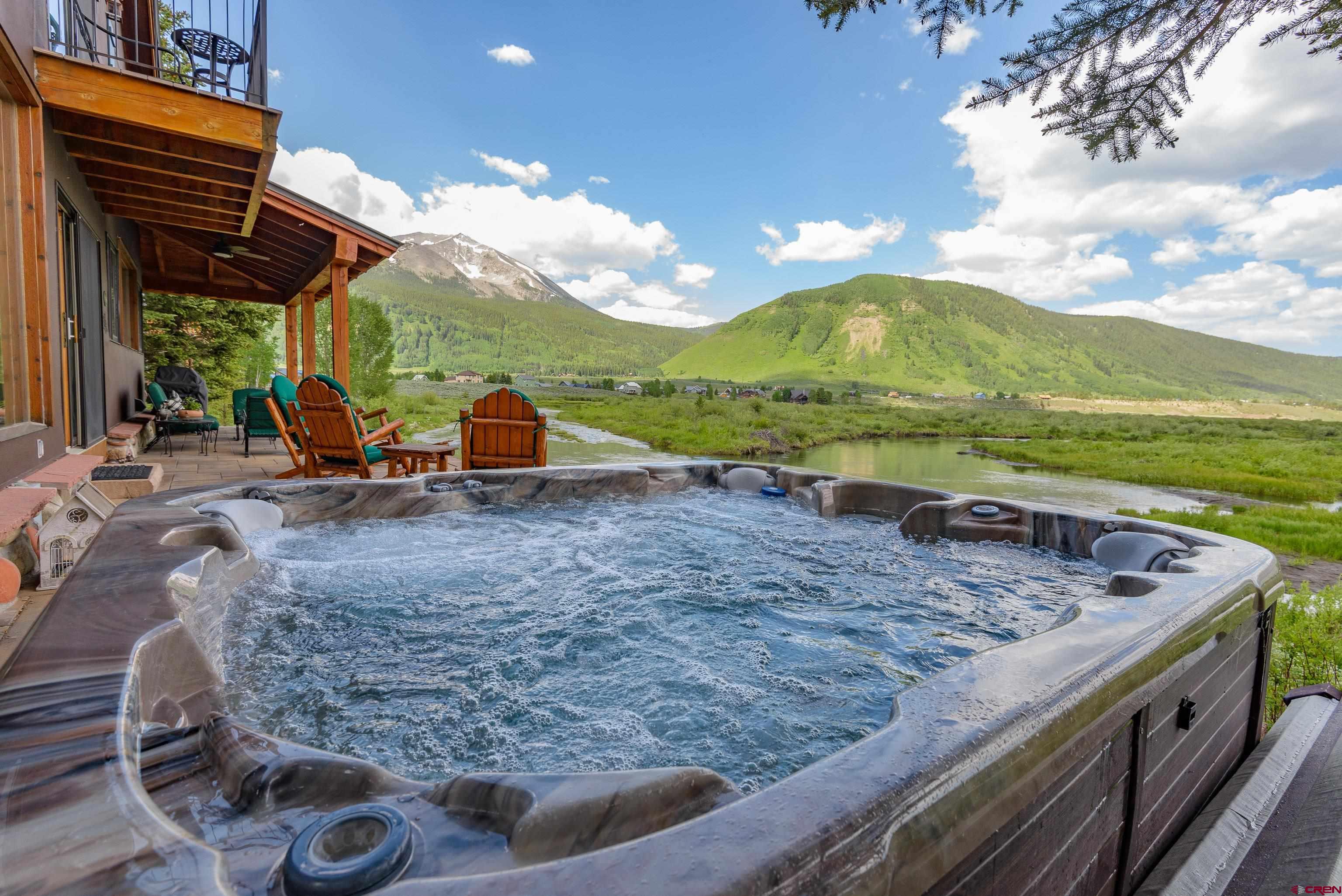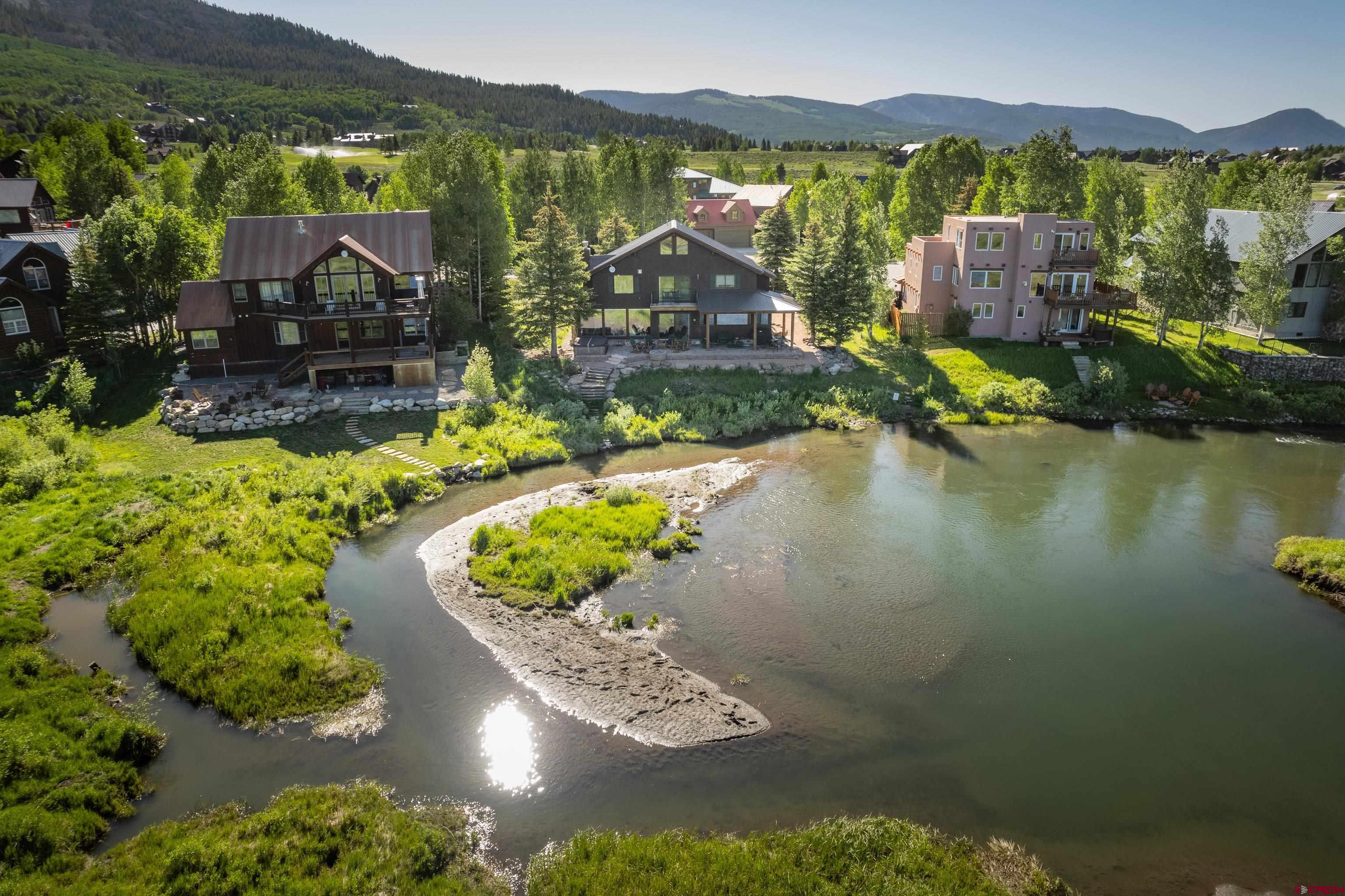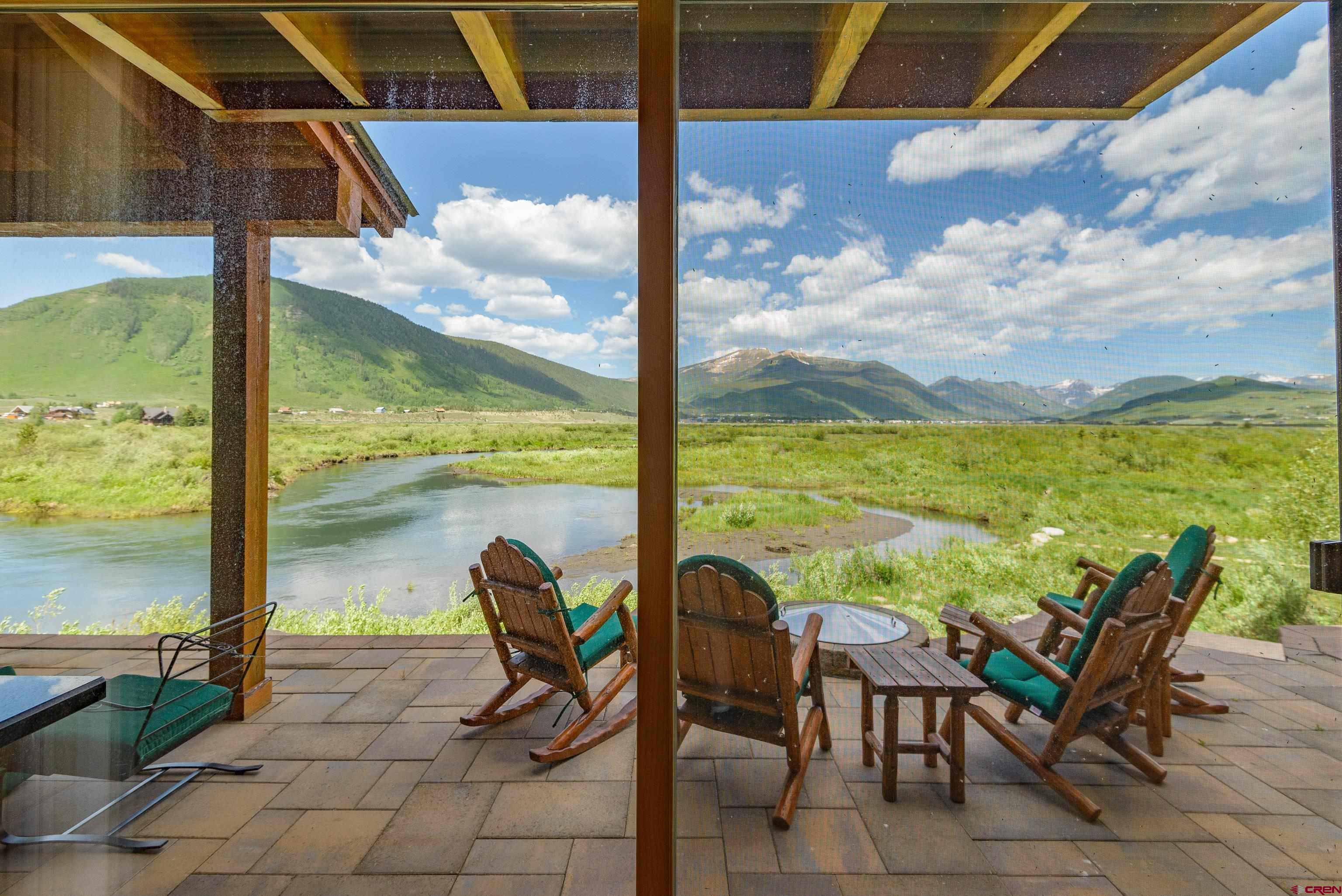 Nestled above a sweeping bend in the Slate River, in the serene shadow of iconic 12,168’ Crested Butte, this extraordinary home offers a front-row seat to some of Colorado’s most awe-inspiring natural beauty. With major upgrades since 2023, it blends timeless exposed-wood charm with modern luxury and panoramic mountain views that stretch from Whetstone to Gothic. Enjoy the ever-changing beauty of protected riverfront wilderness right from your expansive stone deck with hot tub, firepit, and both open-sky and roof-covered seating areas. Wildlife sightings are frequent, sunsets are unforgettable, and night skies are ablaze with stars. Inside, massive windows bring the outside in, illuminating a spacious open-concept kitchen, dining, and living area anchored by a floor-to-ceiling fireplace. The craftsmanship shines with Douglas fir beams and ceilings, cherry floors, and an all-new gourmet chef’s kitchen featuring Wolf/Cove appliances, granite countertops, a large serving island, and walk-in pantry. The main level includes two bedrooms, each with its own bathroom featuring heated floors. Upstairs, the luxurious primary suite is a true sanctuary with cathedral ceilings, private balcony, gas stove, dual-vanity bath with steam shower and hydrotherapy tub, bidet-toilet, heated floors, and walk-in closet. A fourth bedroom or office and a large ADU-style bonus room complete the upper level. The bonus room includes a kitchenette, bath, and private entrance offering ideal flexibility for guests, rental income, or multigenerational living. Located just 6 minutes from historic Crested Butte and 12 minutes to world-class skiing, you can bike or walk into town on a dedicated path or paddle straight home via the Slate River. A true legacy property set in National Geographic-level scenery.