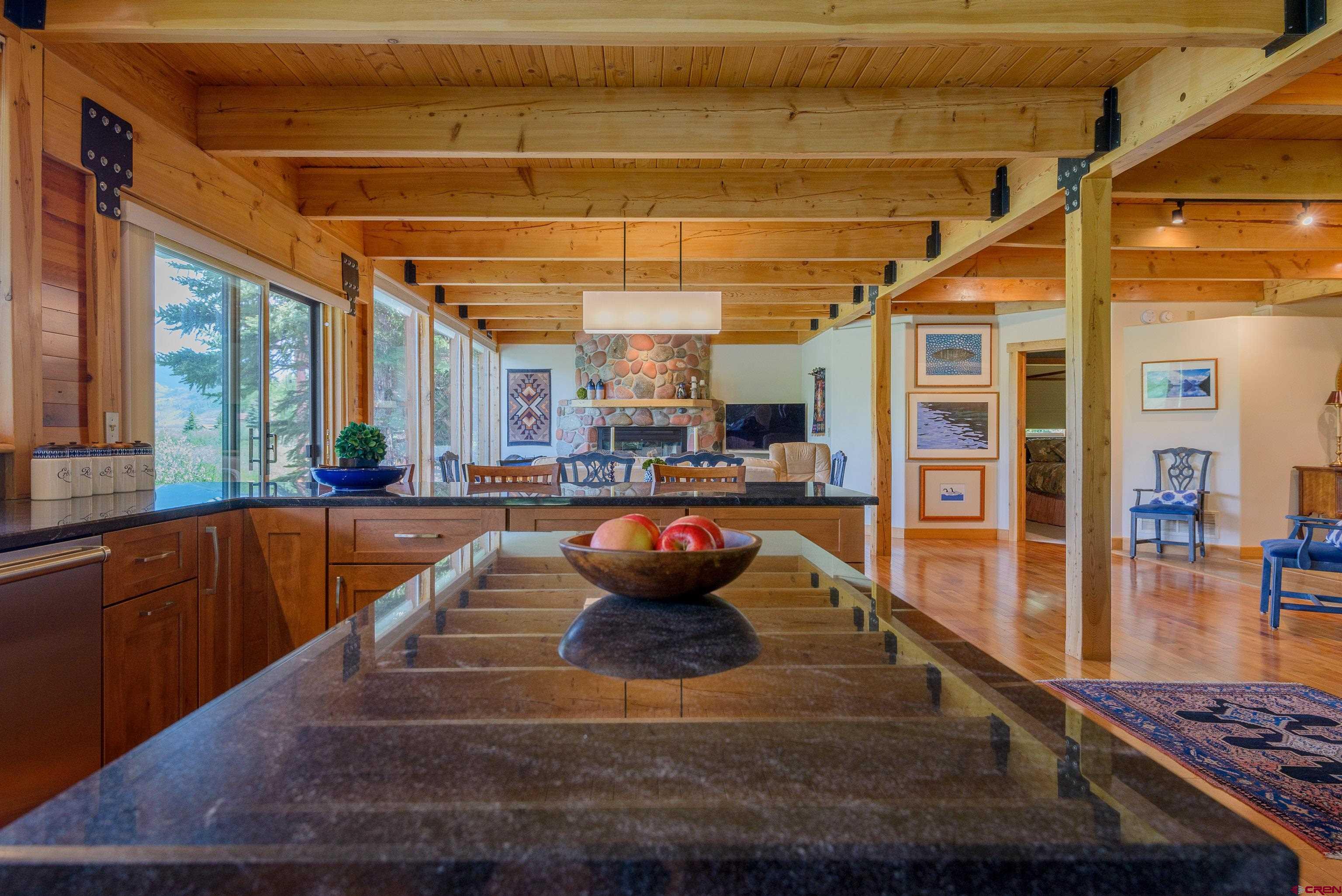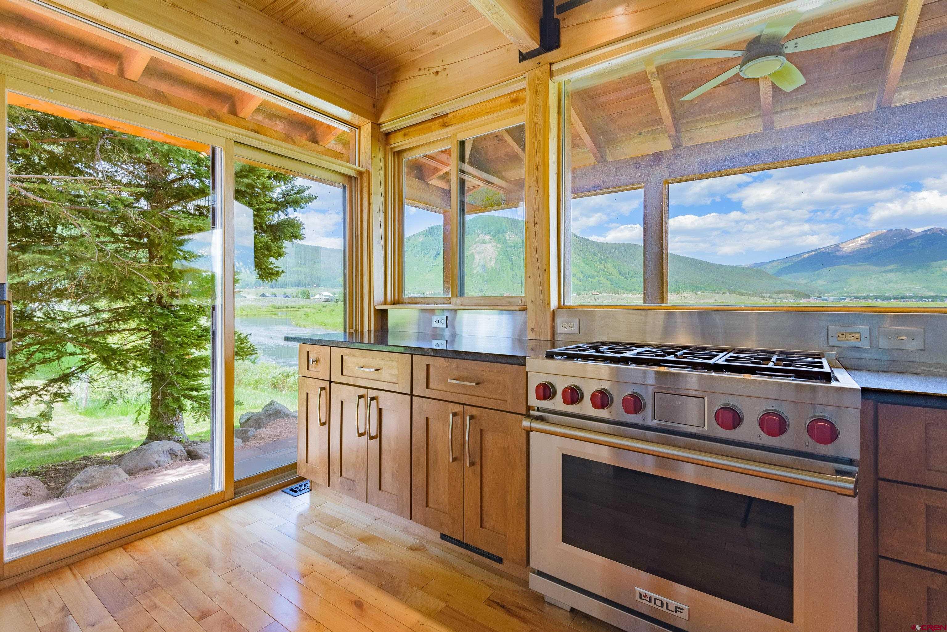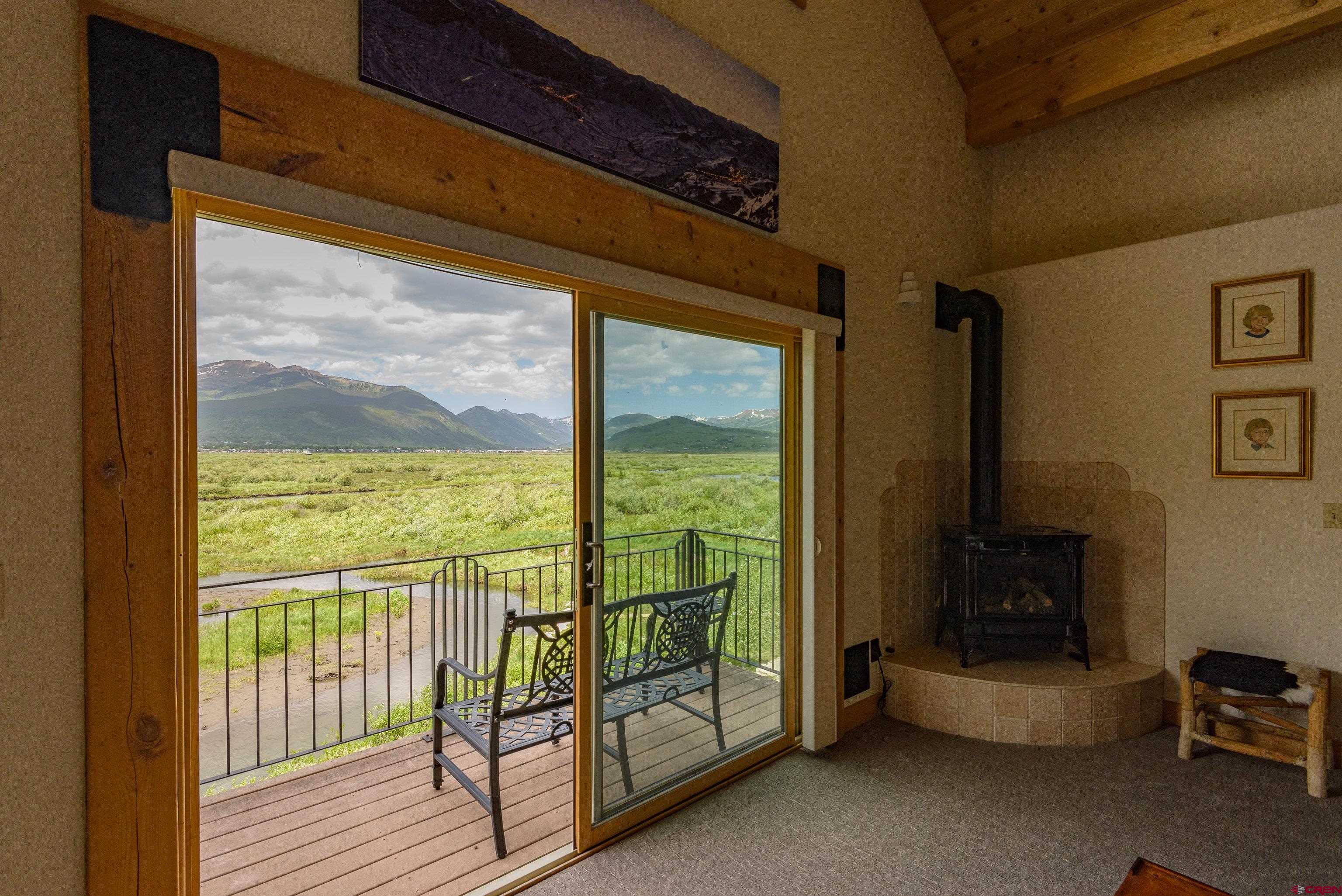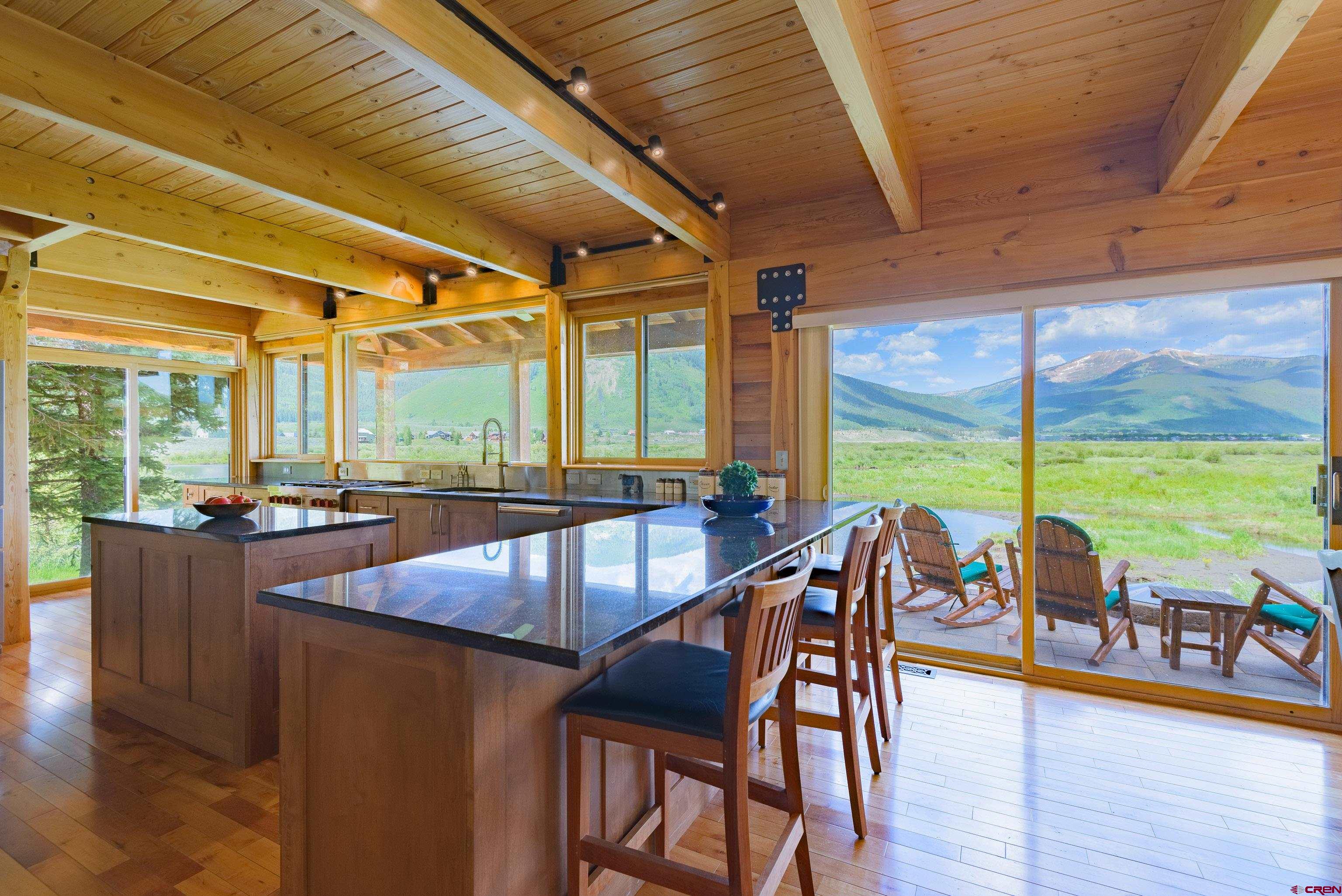 Nestled above a sweeping bend in the Slate River, in the serene shadow of iconic 12,168’ Crested Butte, this extraordinary home offers a front-row seat to some of Colorado’s most awe-inspiring natural beauty. With major upgrades since 2023, it blends timeless exposed-wood charm with modern luxury and panoramic mountain views that stretch from Whetstone to Gothic. Enjoy the ever-changing beauty of protected riverfront wilderness right from your expansive stone deck with hot tub, firepit, and both open-sky and roof-covered seating areas. Wildlife sightings are frequent, sunsets are unforgettable, and night skies are ablaze with stars. Inside, massive windows bring the outside in, illuminating a spacious open-concept kitchen, dining, and living area anchored by a floor-to-ceiling fireplace. The craftsmanship shines with Douglas fir beams and ceilings, cherry floors, and an all-new gourmet chef’s kitchen featuring Wolf/Cove appliances, granite countertops, a large serving island, and walk-in pantry. The main level includes two bedrooms, each with its own bathroom featuring heated floors. Upstairs, the luxurious primary suite is a true sanctuary with cathedral ceilings, private balcony, gas stove, dual-vanity bath with steam shower and hydrotherapy tub, bidet-toilet, heated floors, and walk-in closet. A fourth bedroom or office and a large ADU-style bonus room complete the upper level. The bonus room includes a kitchenette, bath, and private entrance offering ideal flexibility for guests, rental income, or multigenerational living. Located just 6 minutes from historic Crested Butte and 12 minutes to world-class skiing, you can bike or walk into town on a dedicated path or paddle straight home via the Slate River. A true legacy property set in National Geographic-level scenery.