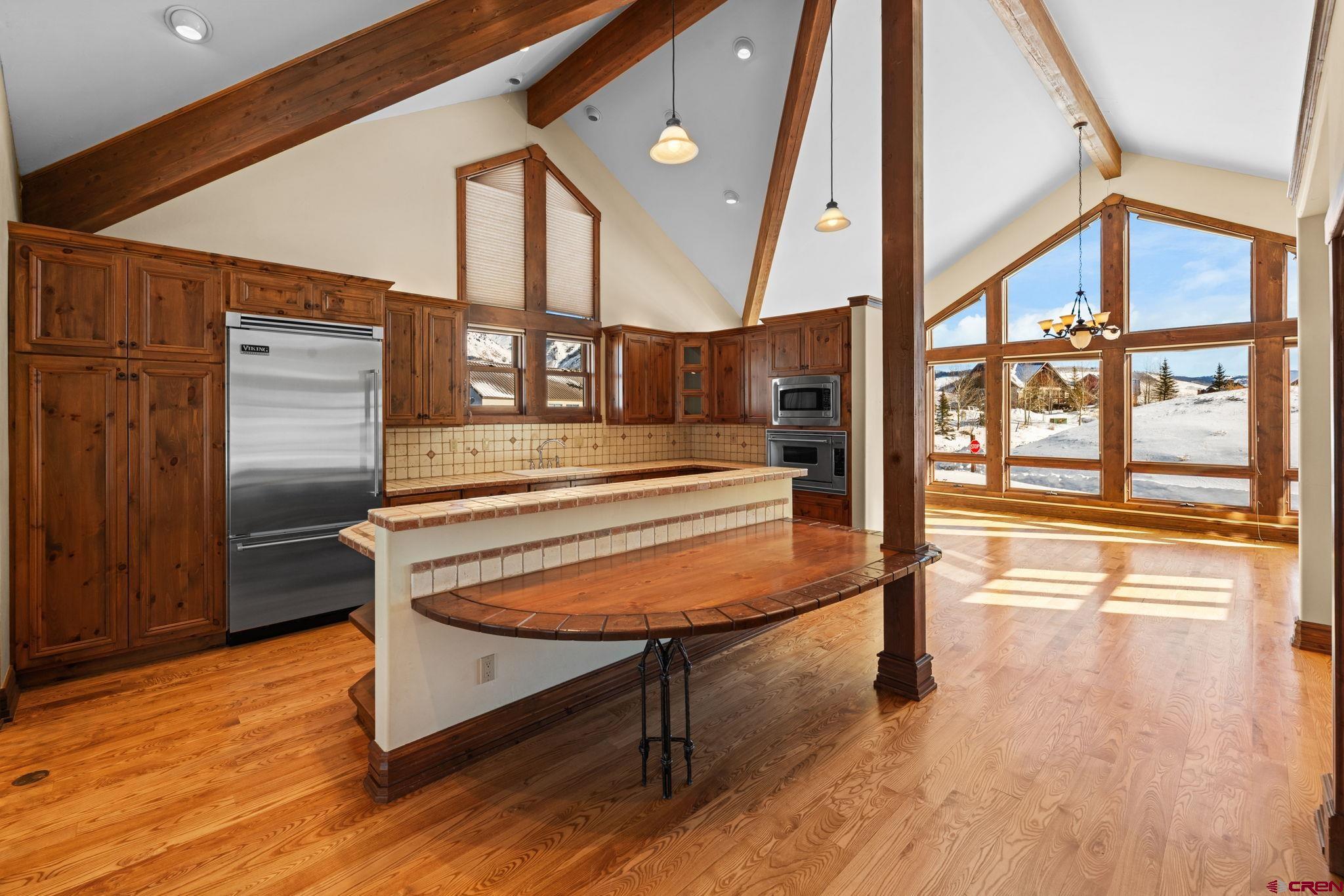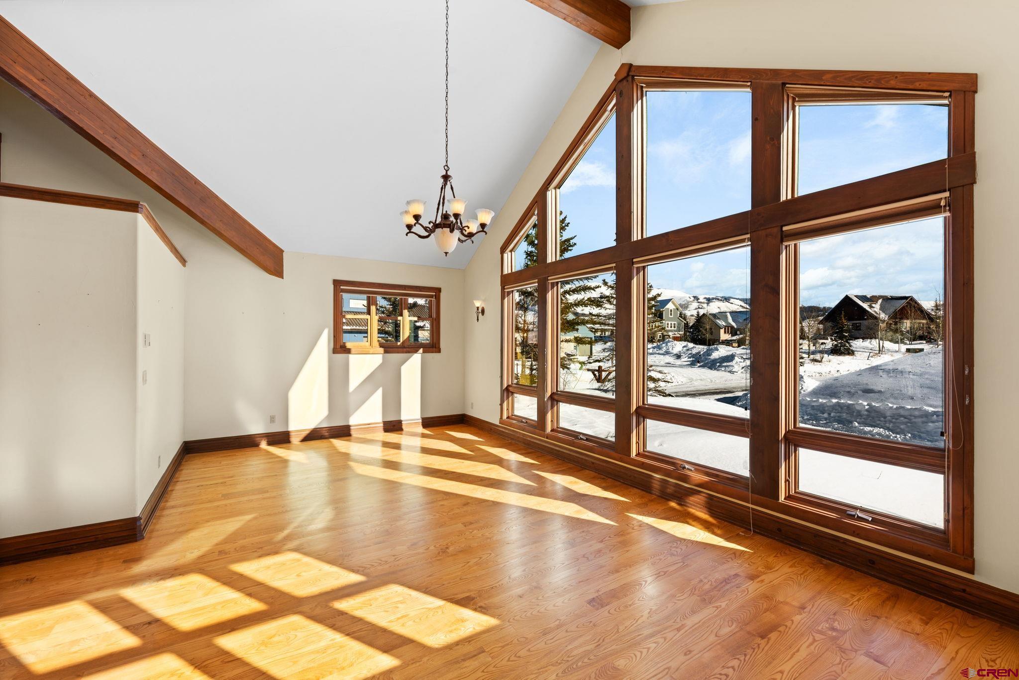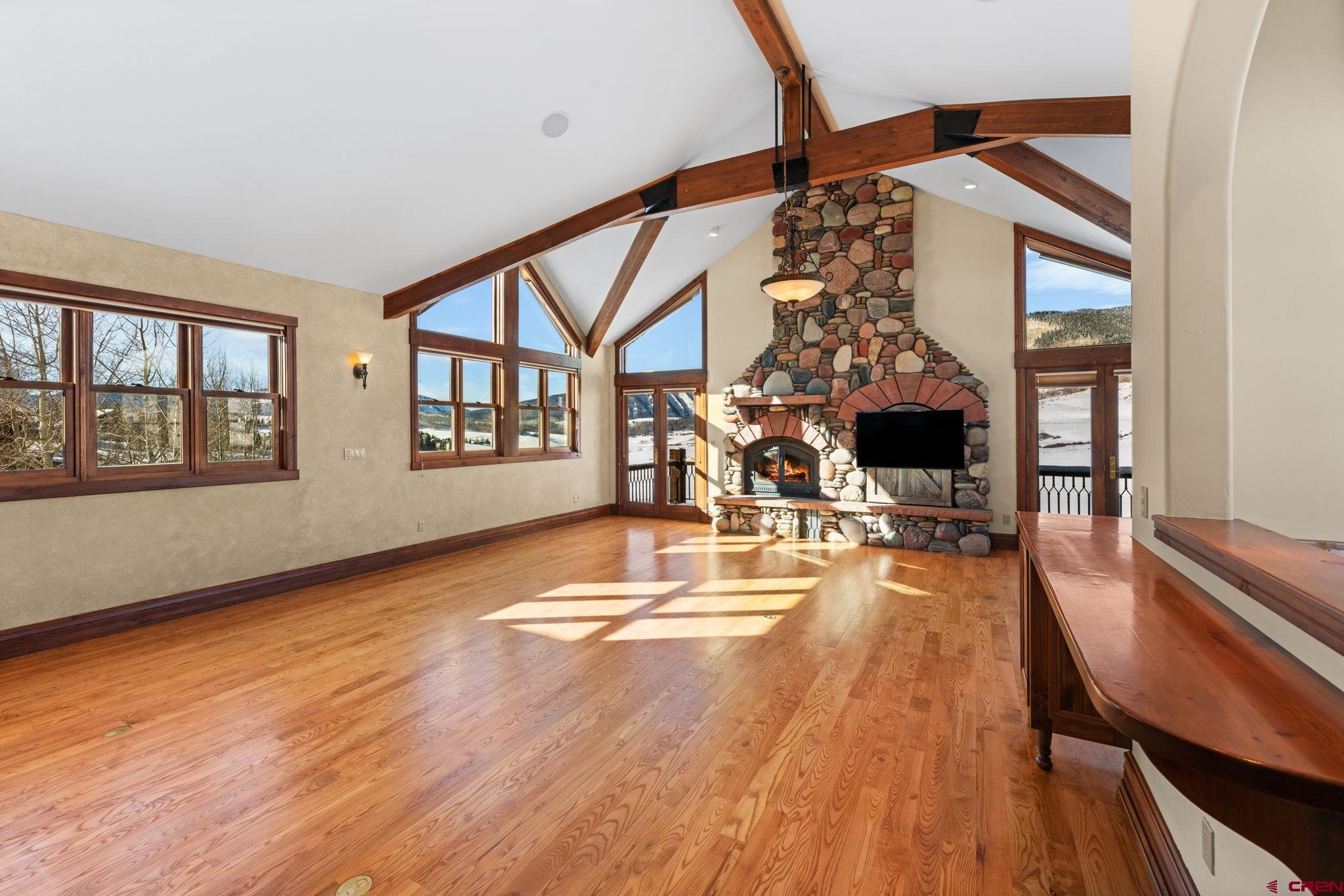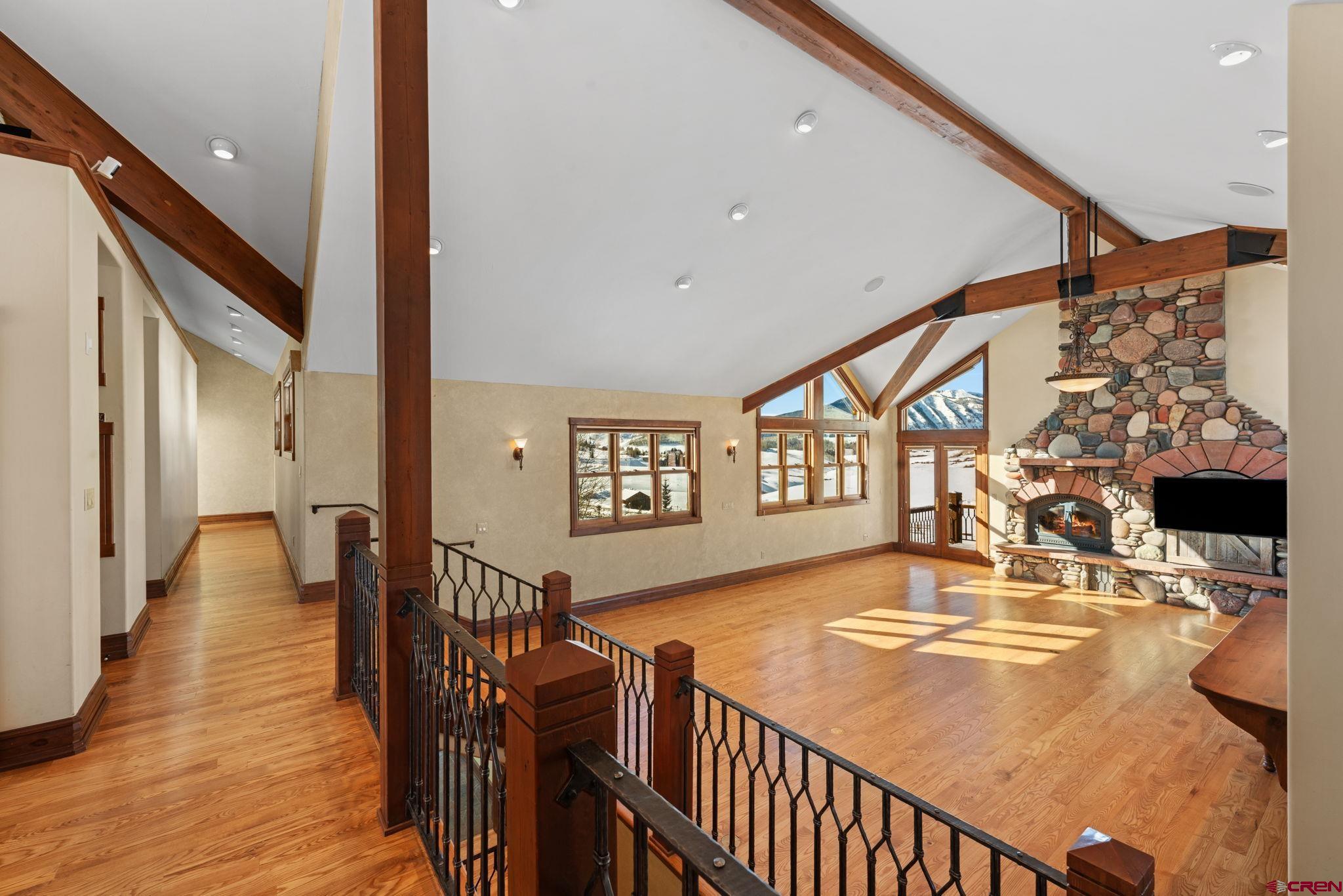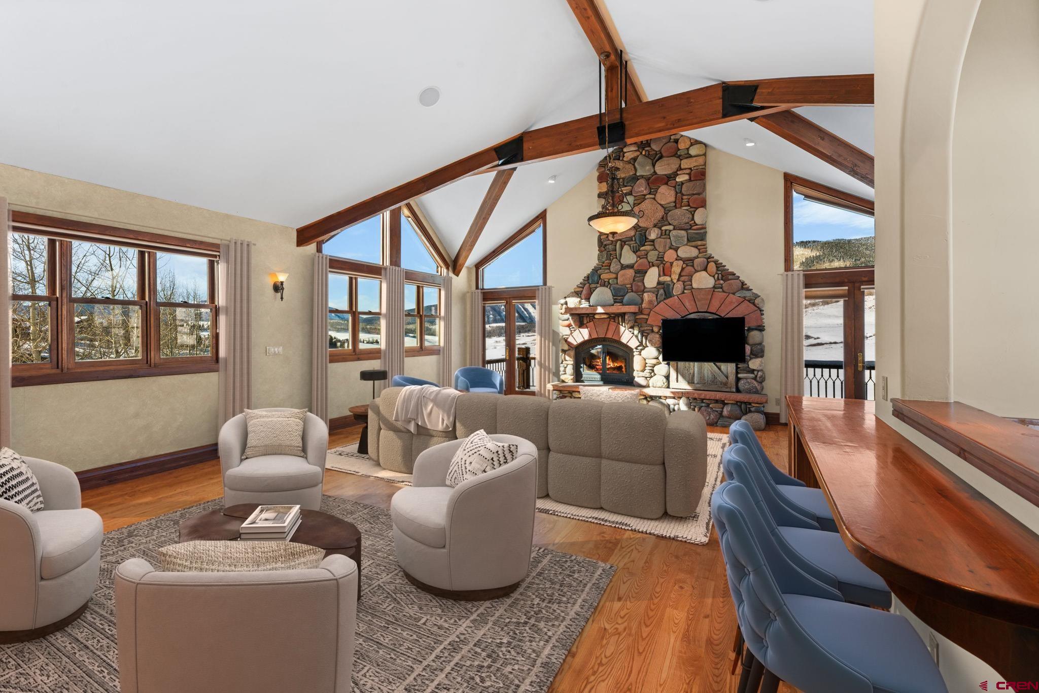 Located on the quiet north side of Mt. Crested Butte, this incredible ski home boasts dramatic mountain views, refined craftsmanship, and effortless proximity to the slopes. The main living spaces of 1 Lapis Ln are defined by soaring vaulted ceilings, expansive windows, and exceptional natural light that pours in from every direction. Underscoring the high quality of construction and timeless mountain character are hefty timber beams, solid wood trim, and custom ironwork throughout the home. After a long day on the slopes, there’s no better place to gather than the Great Room. The space is anchored by a floor to ceiling woodburning fireplace, constructed with honed river rock sourced locally from the Gunnison Valley. Completing the room is a custom wet bar with built-in ice maker and sink, ideal for après entertaining. Picture crafting your own cocktail and venturing out onto the west facing covered deck to soak in the evening Alpenglow, where views span 180 degrees over some of the area’s most prominent peaks, including Whetstone, Axtell, and Gothic. Back inside, the chef’s kitchen is designed for entertaining and extended stays, featuring gorgeous solid wood cabinetry, Viking appliances, a large pantry, and custom built-in breakfast table. The working dumbwaiter is a fun and unique feature, making it easy to transport groceries from garage to kitchen. The kitchen seamlessly connects the formal dining room and living areas, creating a natural flow for hosting. This level of the home also features a powder bath and two guest bedrooms, each with its own ensuite. Downstairs, the primary suite is a true retreat. Large enough to accommodate a king bed and separate seating area, the room is complete with its own gas fireplace, private patio, and spa-inspired 5 piece bathroom featuring a steam shower and oversized jacuzzi tub. Also on this level is the attached 2 car heated garage, laundry room, 4th bedroom and bathroom, and a large bonus room suited for a second living space, media and game room, or even a home gym. While 1 Lapis Ln is remarkable on its own, we haven’t even touched on location! On powder days, take advantage of being just steps away from the Gold Link lift. No need to wait in the long lines at the busy base area. By starting your day on the back side of the resort, you’re sure to get to first tracks and maximize time on the mountain. Speaking of “first tracks,” 1 Lapis Ln is served by Mt. CB’s new on-demand shuttle of the same name, offering convenient door-to-door service. Easily get to the base area or the town of Crested Butte and back home, without ever having to drive your car. Just across the street is the iconic Snodgrass Mountain Trail, a local favorite in both the winter and summer, as well as the rec path which connects you to town amenities like the pickleball courts, outdoor park, and fitness trail. With quick lift access, expansive views, architectural character, and a layout designed for hosting the whole family, 1 Lapis Ln is the perfect choice for those seeking an exceptional year-round retreat in Mt. Crested Butte! *Some photos of this listing include virtually staged furniture.*