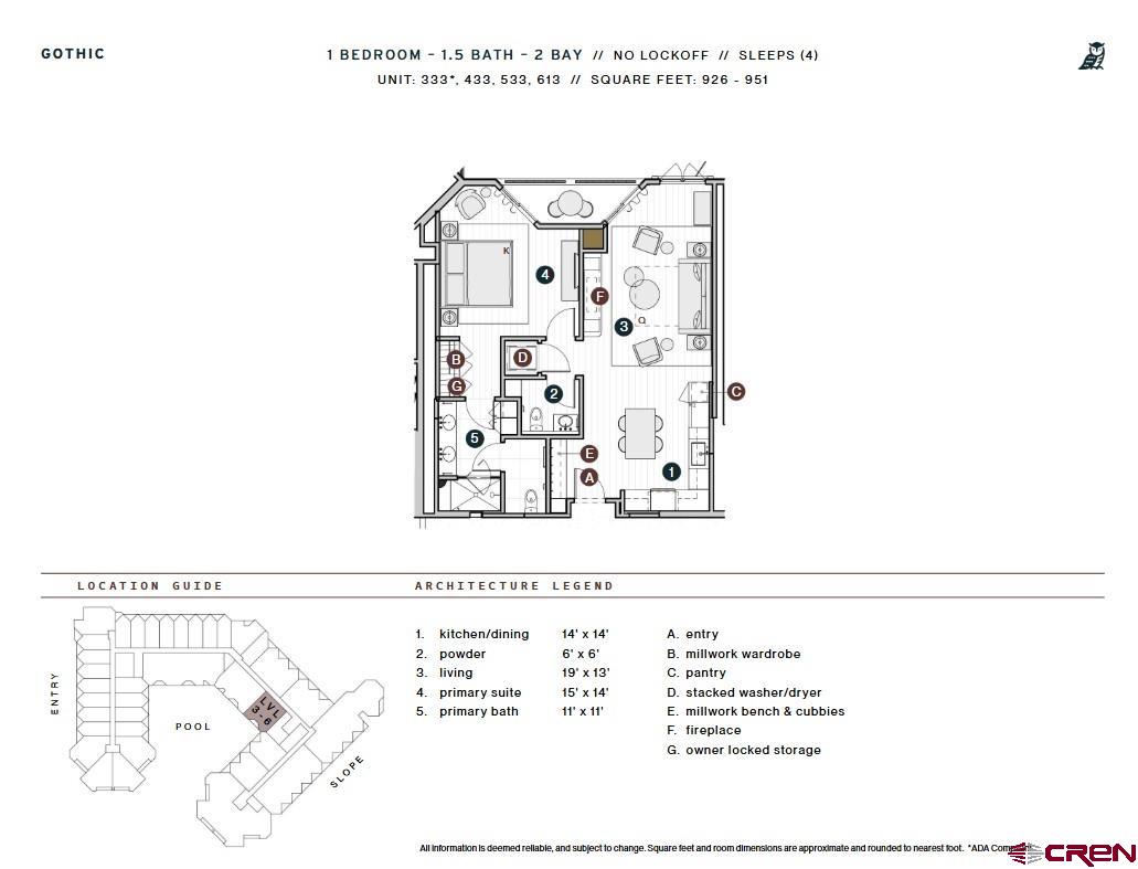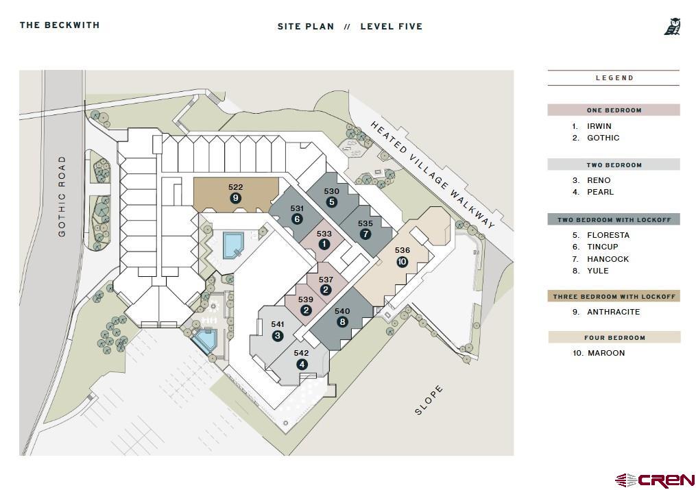 Located on the fifth floor, Beckwith Residence 533 offers a rare blend of intimacy and grandeur within The Beckwith’s exclusive ski-in, ski-out collection of approximately 49 to-be-built residences. This Gothic floor plan spans 926 square feet and features one bedroom, one bathroom, a powder room, and two private balconies that open to sweeping valley views. Take in the striking silhouettes of Whetstone Mountain, Mount Axtell, the charming Town of Crested Butte, and vivid sunsets that bathe the valley in color— along with serene views of the pool courtyard below. Step inside and discover light-filled, modern interiors bathed in soft earthy neutrals and warm wood tones that echo the alpine meadows and wildflowers, while contemporary finishes, unexpected pops of color and whimsical touches bring Crested Butte’s adventurous spirit indoors. The open-concept living space is perfect for relaxing or entertaining, flowing seamlessly into a gourmet kitchen, outfitted with natural stone countertops and high-end appliances, perfect for culinary exploration. The primary bedroom suite is a quiet sanctuary with rich textures and its own beautifully appointed en-suite bath featuring Kohler fixtures. A stylish powder room with custom wall coverings provides an added touch of comfort for guests. Additional features include in-unit laundry, secure gear storage, and access to The Beckwith’s world-class amenities—including seamless ski valet, spa, alpine taproom, adventure concierge, and more. Whether you're carving fresh tracks, exploring endless trails, or winding down in town, Residence 533 is your elevated basecamp in the heart of Crested Butte’s alpine wonderland. The Beckwith is the only ski-in, ski-out resort just steps to the lift in Crested Butte's base area. Replete with a four-star boutique hotel, private residences, a mountain & social club as well as world-class amenities including restaurants, luxurious spa, adventure concierge, and ski valet, a multi-phased reimaging of Elevation Hotel & Spa will transform almost every space at the resort. Construction will start this April with expected completion in the Winter 26-27 ski season. Inquire today in the Sales Center on the main floor of Elevation for more information.