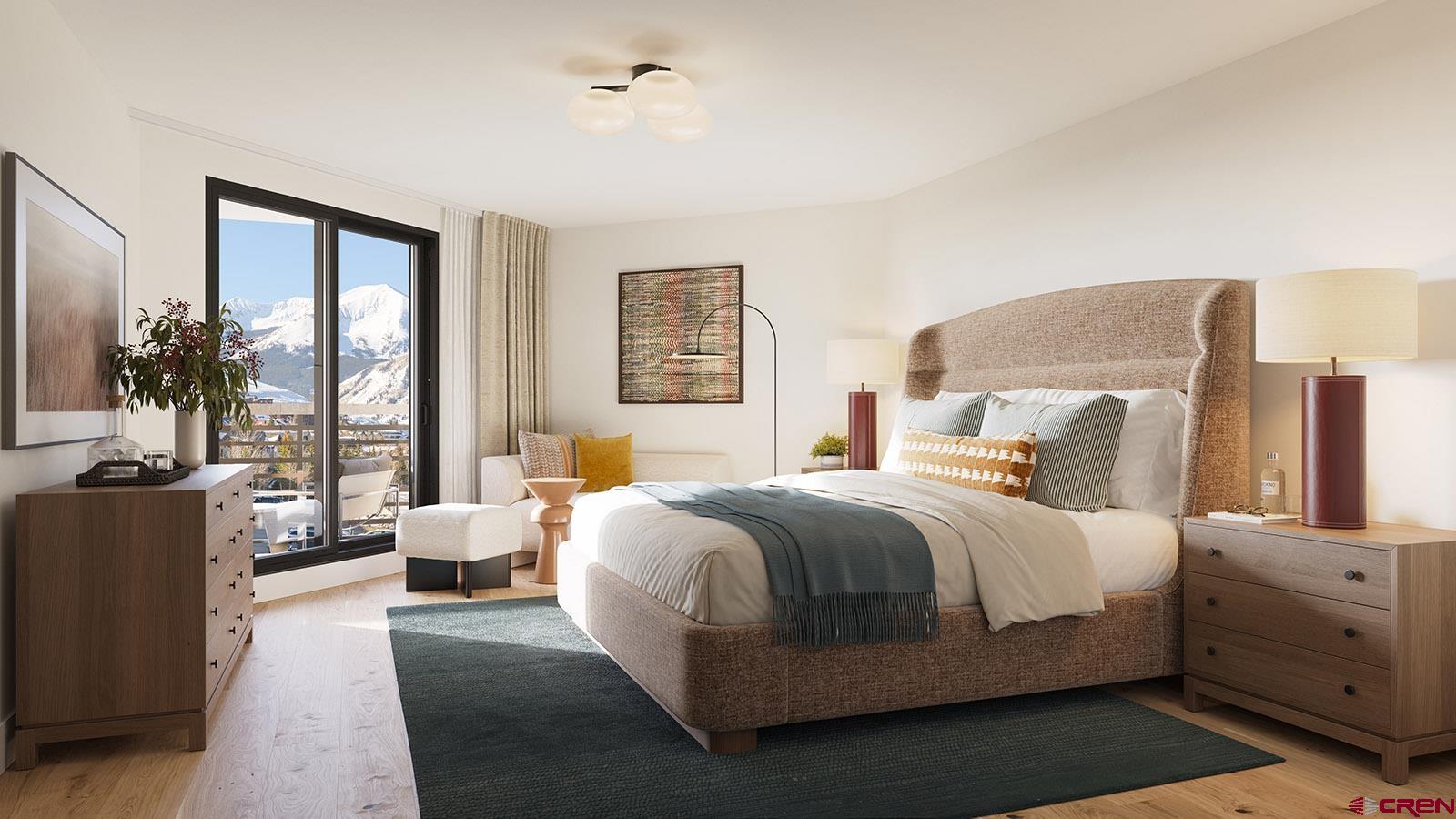Beckwith Residence 337 offers a rare blend of intimacy and grandeur within The Beckwith’s exclusive ski-in, ski-out collection of approximately 49 to-be-built residences. This Irwin floor plan spans 907 square feet and features one bedroom, one bathroom, a powder room, and two private balconies that open to pool courtyard views. This residence is located just steps from the elevator for easy access. Positioned to capture afternoon light, this residence features beautiful balconies overlooking the resort’s hot tub and courtyard, with southwest-facing windows offering dynamic views of the surrounding mountain peaks, including Mt. Emmons and the iconic Red Lady Bowl. Whether you're watching the sun dip below the ridge or enjoying the vibrant energy below, the broad sky exposure and lively setting make this a truly unique mountain perch. Inside, earthy neutrals, warm wood tones, and layered natural textures create a sense of ease and sophistication, while unexpected design moments reflect the adventurous, creative soul of Crested Butte. A sleek electric fireplace anchors the living space, complemented by wide-plank wood flooring and expansive windows that fill the home with natural light. The gourmet kitchen features stone countertops, high-end appliances, and a generous pantry, while a custom millwork entry bench with cubbies blends beauty and functionality for everyday mountain life. The primary suite is a peaceful retreat with a private balcony, custom wardrobe, and a spa-inspired en-suite bath with Kohler fixtures. A well-appointed powder room, in-unit laundry with stacked washer and dryer, and a secure owner’s storage locker add everyday ease and thoughtful detail. With its sun-drenched balconies, inspired interiors, and ideal poolside location, Residence 337 is your elevated home base in Crested Butte— designed for all-season adventure and soulful alpine living. The Beckwith is the only ski-in, ski-out resort just steps to the lift in Crested Butte's base area. Replete with a four-star boutique hotel, private residences, a mountain & social club as well as world-class amenities including restaurants, luxurious spa, adventure concierge, and ski valet, a multi-phased reimaging of Elevation Hotel & Spa will transform almost every space at the resort. Construction will start this April with expected completion in the Winter 26-27 ski season. Inquire today in the Sales Center on the main floor of Elevation for more information.
