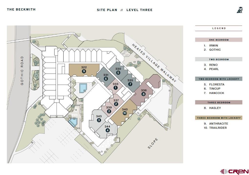 Own a piece of the mountain— just steps from the lifts at Crested Butte Mountain. Located on the third floor, Beckwith Residence 330 offers an inviting alpine retreat with a distinctive vantage point that captures the charm and vibrancy of the base area village, the surrounding architecture, and a picturesque stand of aspens. This Floresta floor plan spans 1,338 square feet and features two bedrooms including a private lockoff, ideal for hosting guests or creating your own quiet corner of the world. The open-concept living area merges indoor and outdoor mountain living with ease, featuring wide-plank wood flooring, a sleek electric fireplace, and three private balconies— perfect for morning coffee, afternoon reading, or toasting to après-ski adventures under a glowing sky. Inside, light-filled interiors are dressed in soft, earthy neutrals, warm wood tones, and layered natural textures. Unexpected pops of color and whimsical design touches reflect Crested Butte’s signature mix of rustic beauty and adventurous charm. The gourmet kitchen is a true centerpiece, boasting natural stone countertops, high-end appliances and ample space for cooking, gathering, and entertaining. The primary suite is a serene escape with a spa-inspired en-suite bath, complete with Kohler fixtures and luxurious finishes. The secondary bedroom and lockoff suite offers its own peaceful retreat with mountain-inspired textures and private en-suite bath. Additional features include in-unit laundry, custom millwork, secure gear storage, and a powder room with bespoke wall coverings for added style and function. As part of The Beckwith’s exclusive ski-in, ski-out collection of 49 residences, Residence 330 is your basecamp for adventure— whether it’s skiing, hiking, mountain biking, or simply soaking in the views of the village and aspens from your balcony. This is alpine living, elevated. The Beckwith is the only ski-in, ski-out resort just steps to the lift in Crested Butte's base area. Replete with a four-star boutique hotel, private residences, a mountain & social club as well as world-class amenities including restaurants, luxurious spa, adventure concierge, and ski valet, a multi-phased reimaging of Elevation Hotel & Spa will transform almost every space at the resort. Construction will start this April with expected completion in the Winter 26-27 ski season. Inquire today in the Sales Center on the main floor of Elevation for more information.