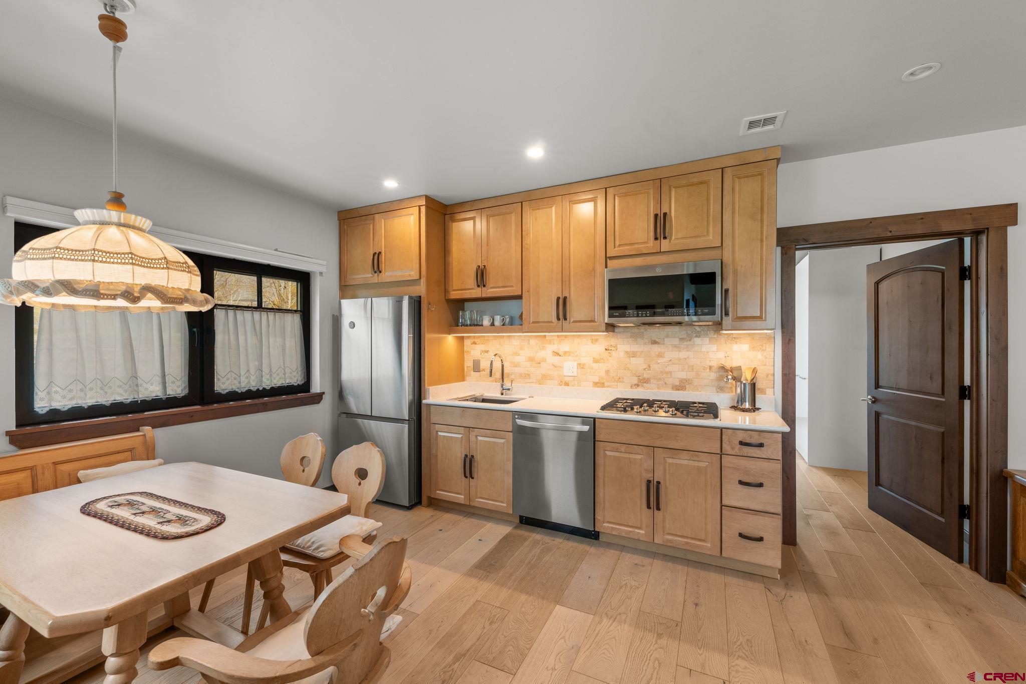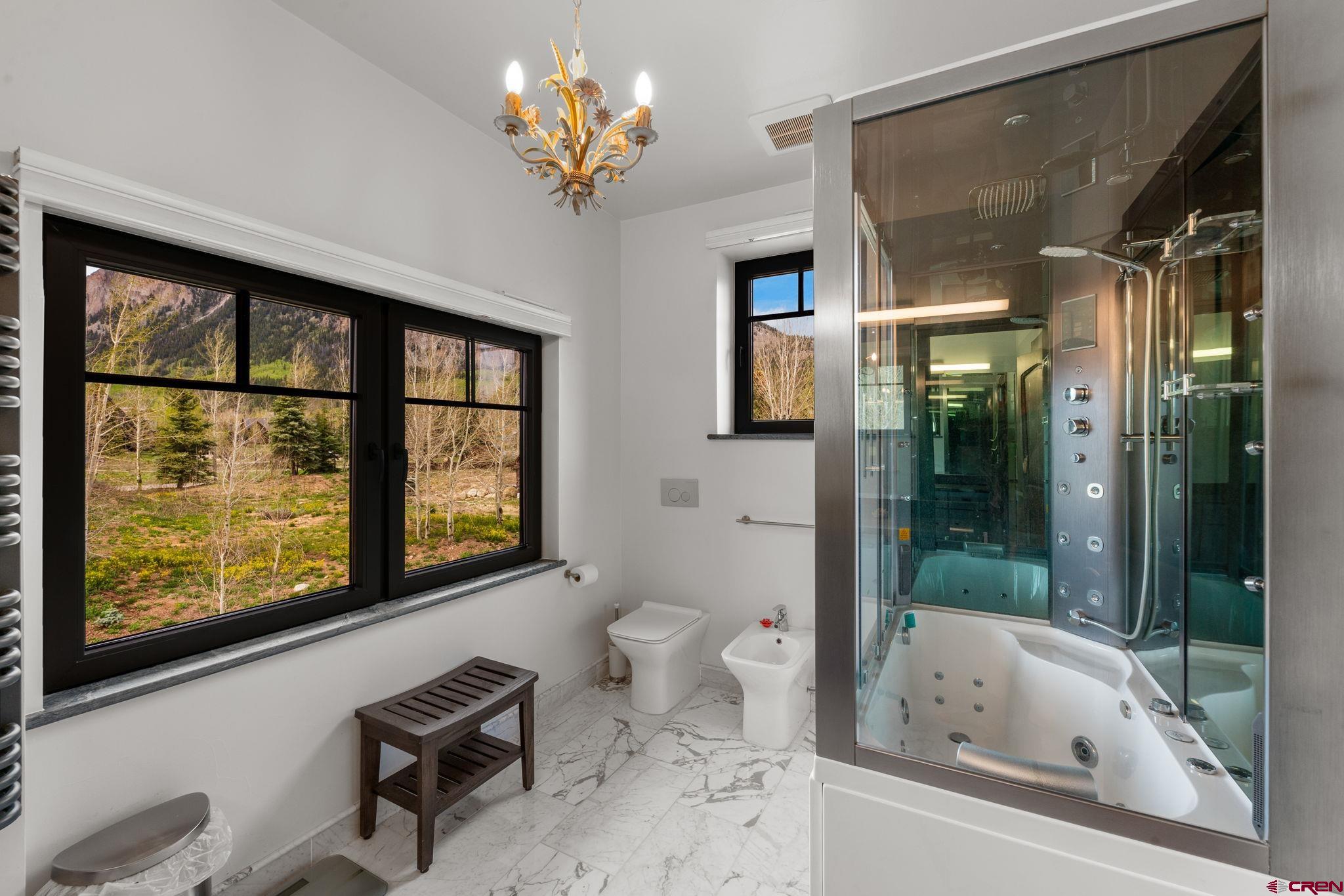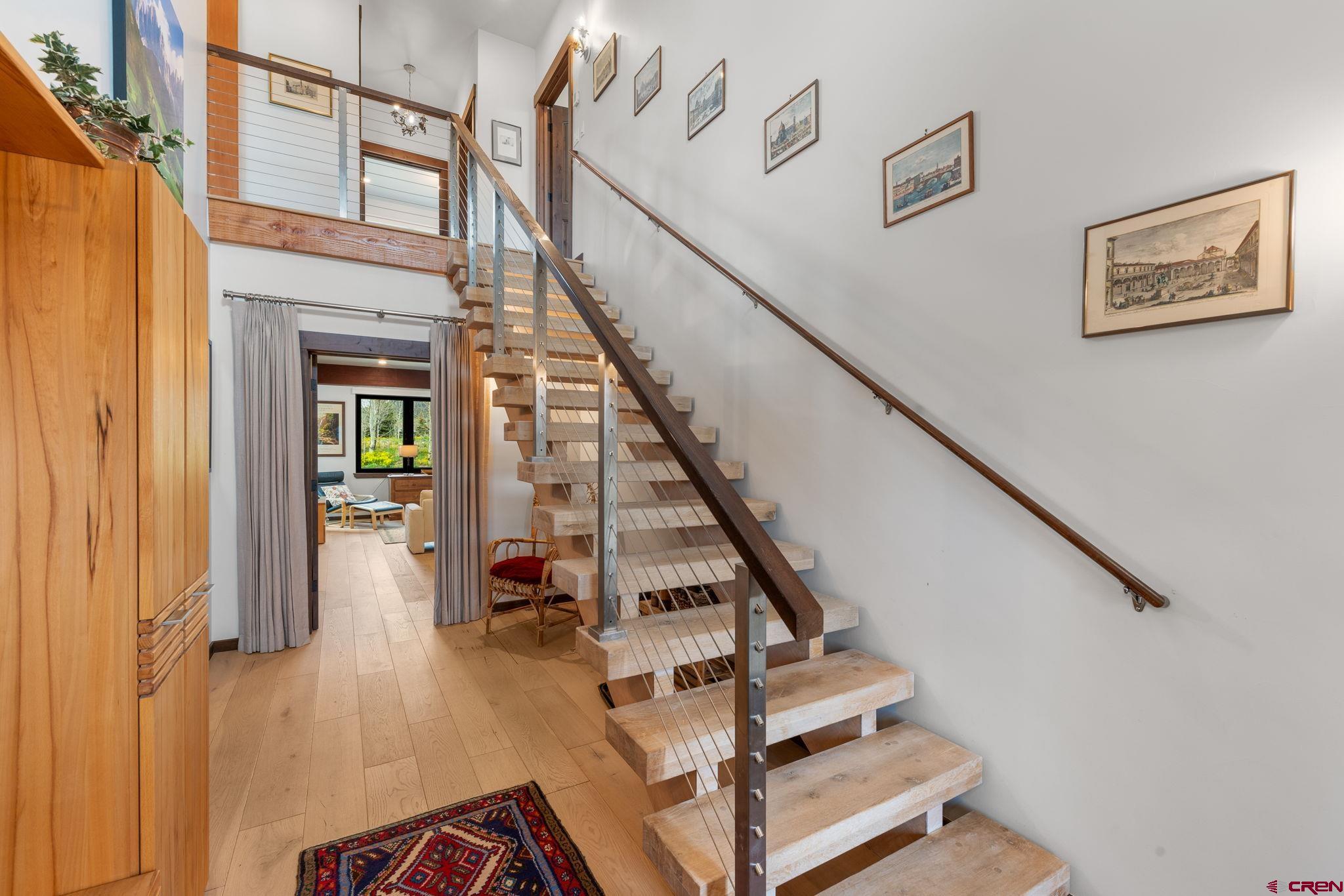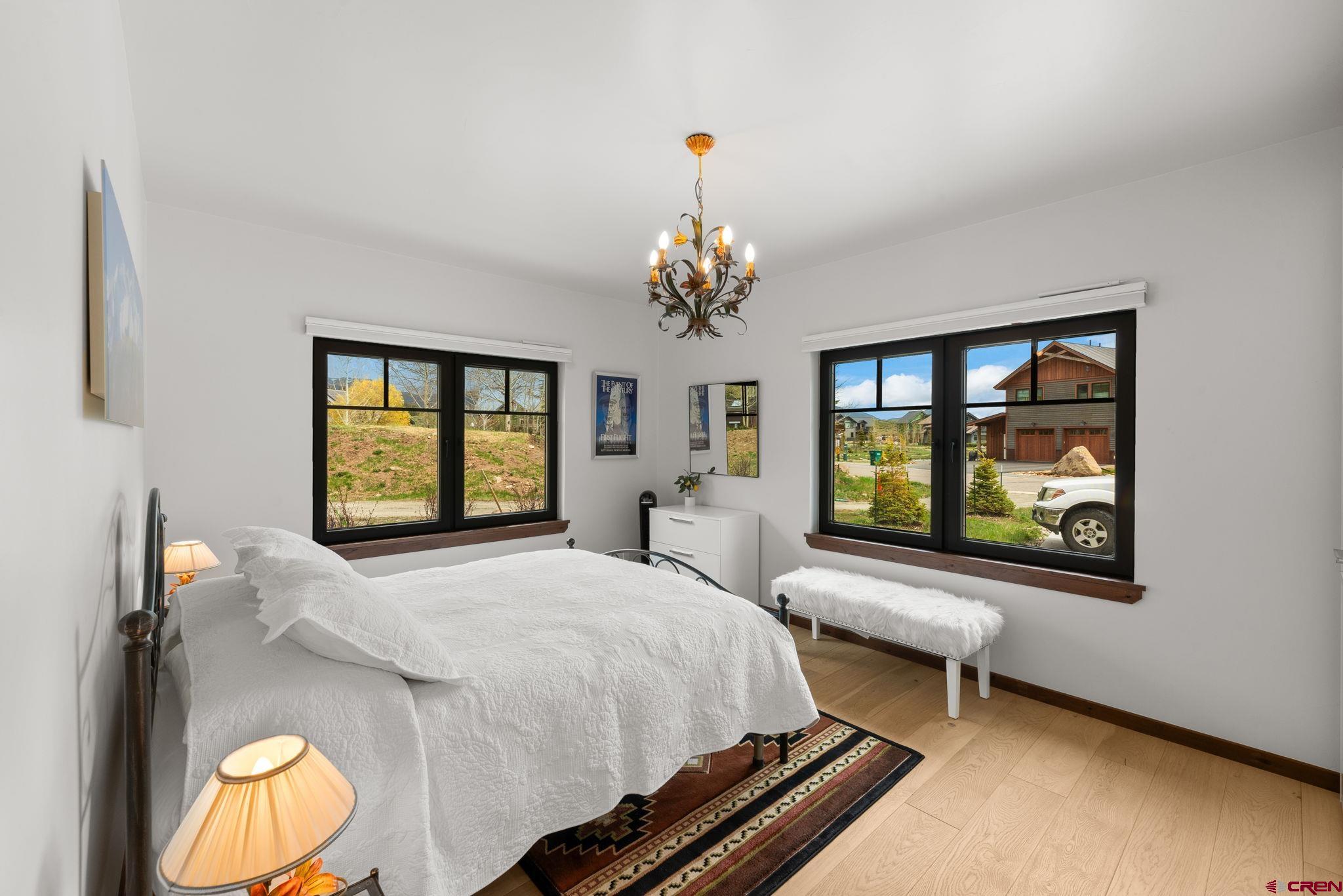 227 Larkspur Loop represents the pinnacle of refined mountain living in Crested Butte. Thoughtfully designed and recently completed, this custom home blends elegant timber frame craftsmanship with exceptional functionality, all while maximizing its most remarkable feature, sweeping, unobstructed views of the surrounding mountains. Encompassing 3,175 square feet, the home offers a versatile floor plan that caters beautifully to both everyday living and entertaining. Upon entry, you’re welcomed by a grand staircase leading to the main living area, with immediate access to a heated, oversized two-car garage and a flexible lower-level suite. Upstairs, the main living space impresses with soaring ceilings accented by custom timber frame beams, expansive windows framing the panoramic vistas, and a seamless open layout. The gourmet kitchen is a chef’s dream, featuring top-of-the-line appliances, custom cabinetry with soapstone counters, a 6-burner gas range, wall and convection ovens, two sinks for efficient prep and cleanup, a generous island with seating, walk-in pantry, and even a dumbwaiter delivering groceries directly from the garage. An elegant built-in dining area leads to a spacious deck which is perfect for al fresco meals overlooking the mountains. The living room is centered around a striking wood-burning fireplace, creating a warm and inviting space to gather and watch the sun set over the peaks. Just off the living room, the primary suite offers privacy and comfort, with breathtaking views of Whetstone Mountain, a luxurious en-suite bath with double vanity, bidet, heated towel rack, and a custom multi-jetted shower/tub combination. A thoughtfully designed closet offers custom built-in storage. A second upstairs bedroom, currently used as an office, and a full bath with a walk-in shower complete the main level. The lower level spans approximately 1,200 square feet and can serve as a private guest suite or a fully rentable apartment. It includes two bedrooms, two bathrooms, a full kitchen, charming built-in dining nook, and a large living area. A private patio provides another opportunity to enjoy the stunning surroundings, and a separate entrance ensures convenience for guests or rental occupants. Every detail of this home was crafted with quality and sustainability in mind. Built with custom Structural Timber Frame construction and Structural Insulated Panels (SIPs), the home boasts superior energy efficiency, airtightness, and thermal performance, up to 50% more efficient than traditional framing. The Warmboard radiant in-floor heating system offers rapid, even heat throughout, while Alpen Tyrol high-performance windows provide exceptional insulation, sound reduction, and aesthetic appeal. Located just five minutes from downtown Crested Butte and ten minutes from the ski resort, this home offers quick access to world-class hiking, biking, fishing, golf, and private lake recreation within the community.