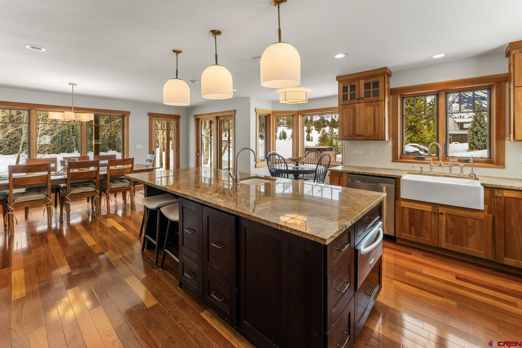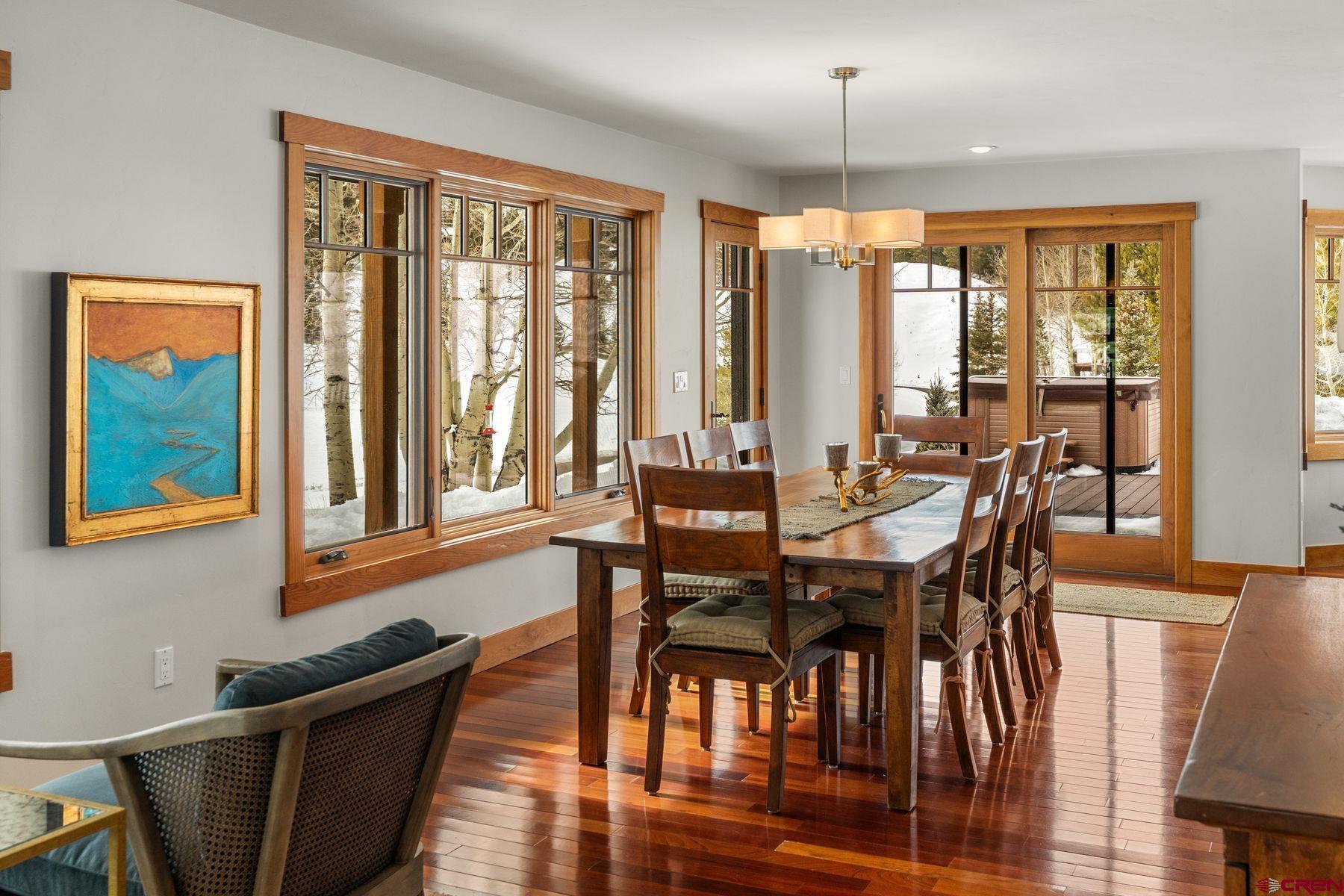 Perched on 1.36 acres in the exclusive Alpine Meadows subdivision, this meticulously crafted, fully furnished home offers the rare combination of year-round recreation, privacy, and proximity—just minutes from both historic downtown Crested Butte and Crested Butte Mountain Resort. This 2,957-square-foot residence showcases a stone wood-burning fireplace, Brazilian Cherry hardwood floors, radiant in-floor heating, vaulted ceilings, and an open floor plan maximizing natural light. South-facing windows throughout frame Nicholson Lake and the surrounding mountain views. Additionally, the exterior was just repainted last summer. The chef's kitchen features granite countertops, state-of-the-art appliances, professional five-burner gas range, and an oversized granite island with integrated storage—designed for both culinary creativity and effortless entertaining. Living spaces flow seamlessly into a spectacular 1,000-square-foot western-facing Trex deck with panoramic Slate River Valley views. The upper level houses three spacious bedrooms, a second living room, and a loft to ensure guests have plenty of space. The primary suite serves as a true sanctuary, featuring generous proportions with an indulgent ensuite featuring an oversized steam shower. A well-appointed office/den features custom built-in cabinetry and a wrap-around desk for remote work. Extraordinary recreational access sets this property apart—located just 200 yards from Slate River Road winter trailhead and Gunnison National Forest boundary. Snowmobile, cross-country ski, mountain bike, and hike directly from your front door. Alpine Meadows residents enjoy private Nicholson Lake access for fishing and boating—an exclusive amenity for this intimate community. This beautiful home combines sophisticated mountain elegance with unmatched outdoor access, delivering four-season living at its finest.
