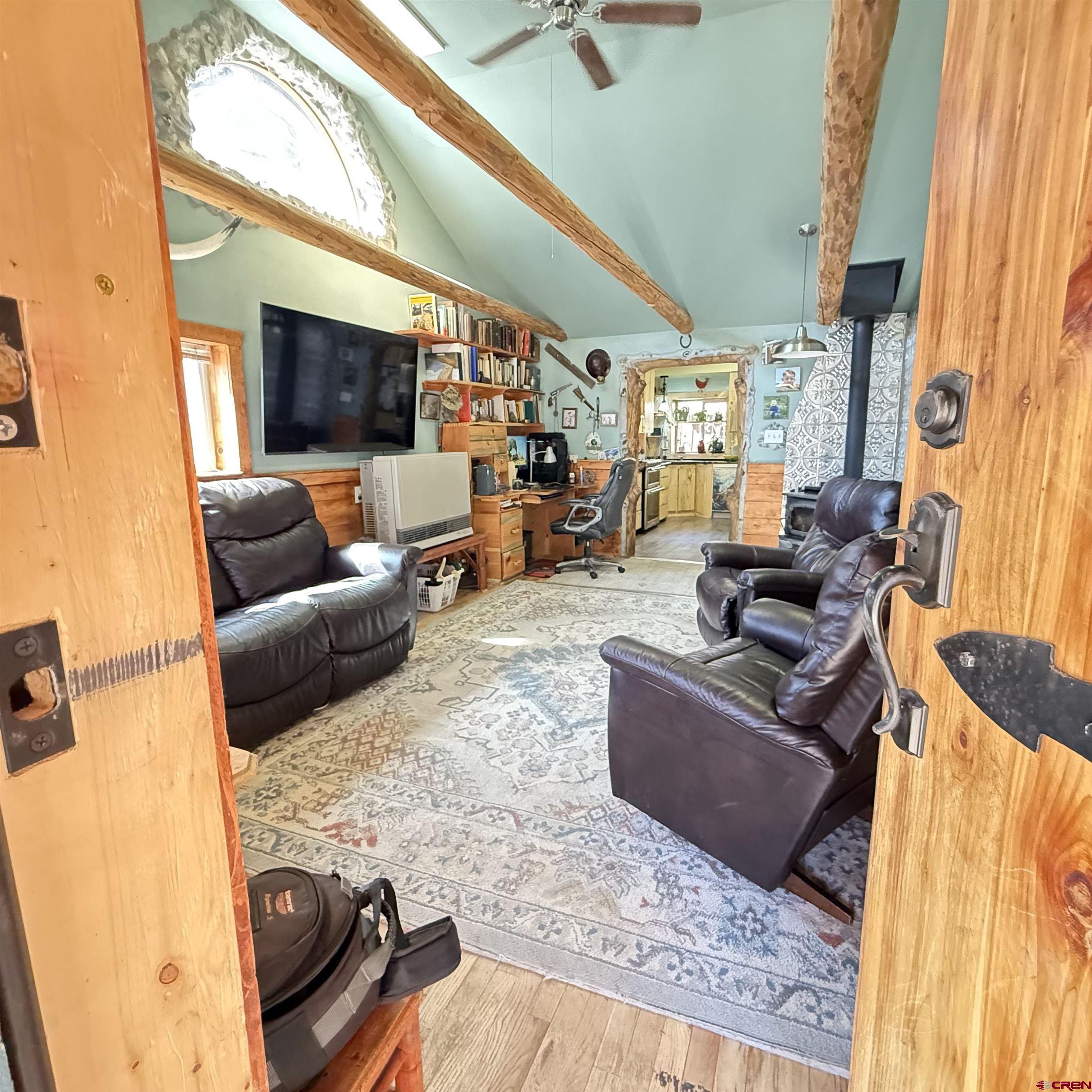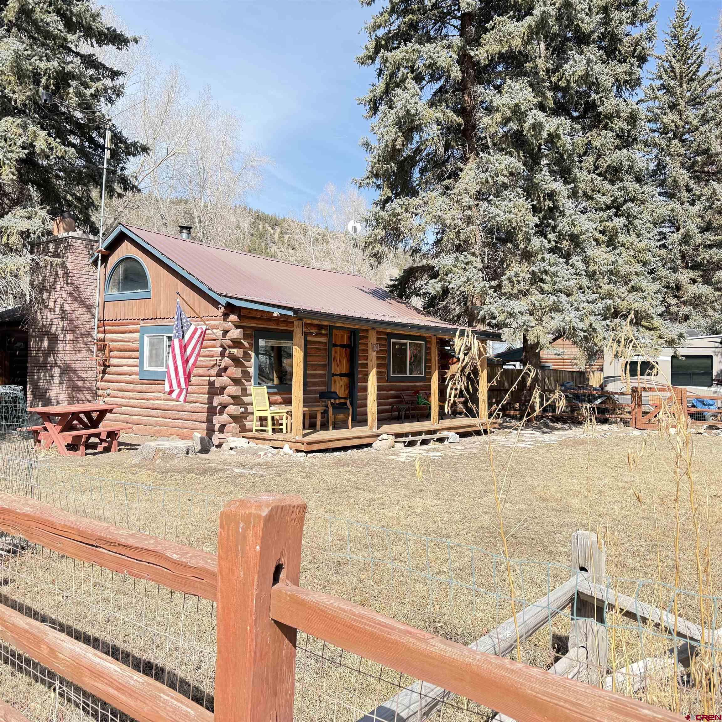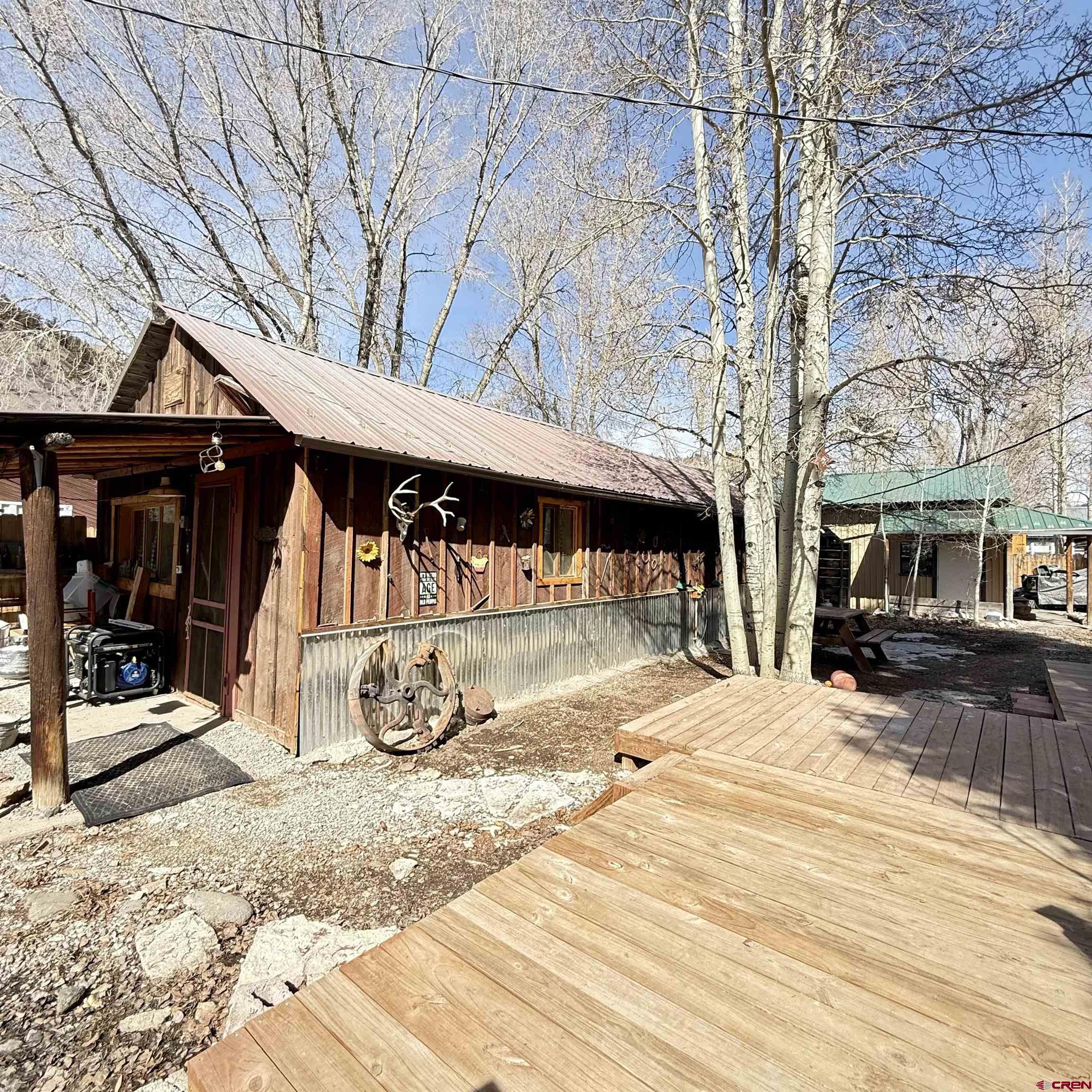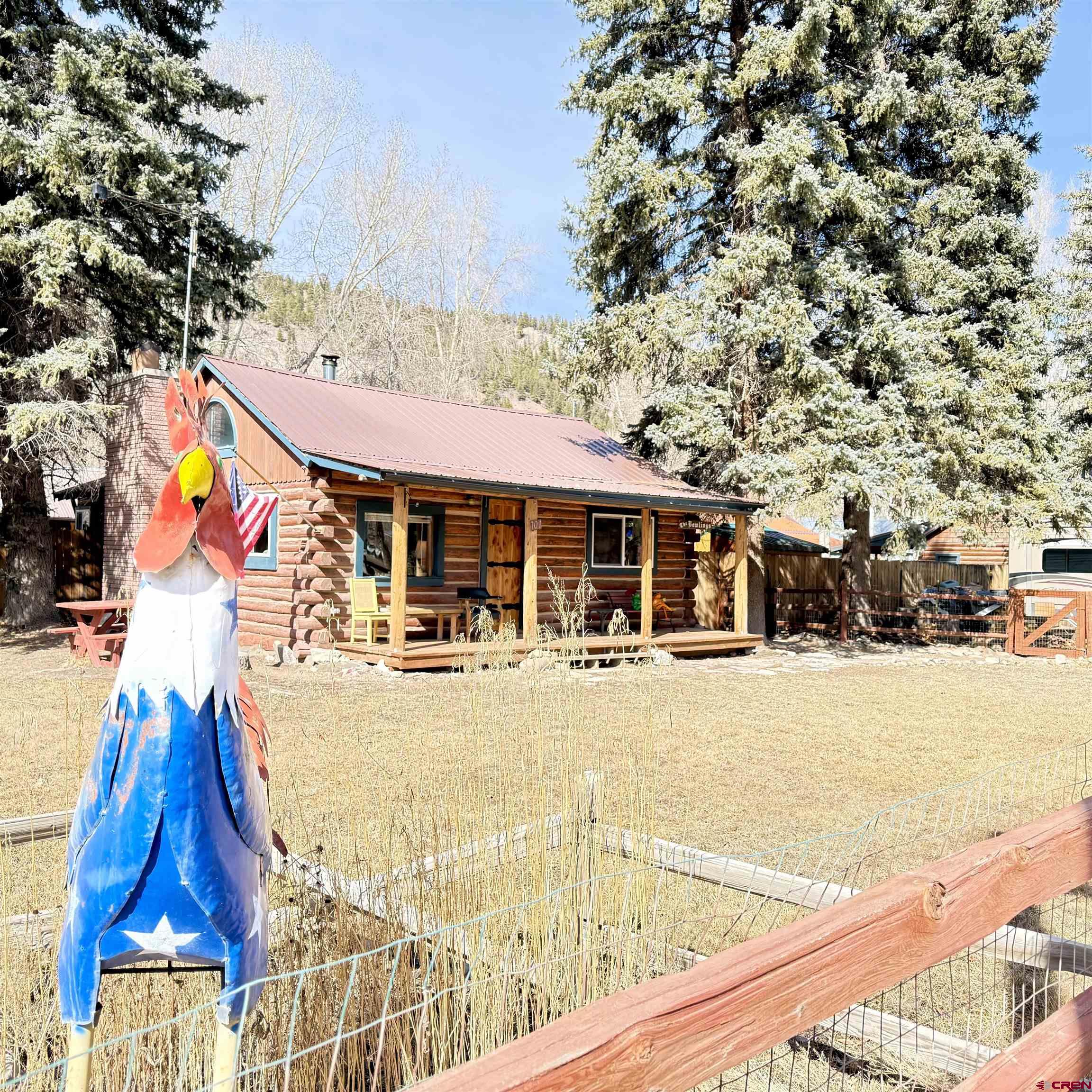 Charming mountain retreat in the heart of Lake City! This 1-bedroom, 1-bath home offers thoughtfully updated living space with character, warmth, and modern improvements throughout. Since purchasing, the owners have completed extensive upgrades including updated electrical and plumbing, new insulation, drywall installation, and replacement double-pane windows. The kitchen has been beautifully remodeled with newer appliances and handcrafted beetle-kill wood cabinetry, creating a true Colorado mountain feel. Flooring has been replaced and some kept to the original hard-wood floors, ceilings were opened up and vaulted for a more spacious design, a built-in desk was added, and barn doors bring added charm and functionality. The bedroom was redesigned to include a walk-in closet, and the bathroom has been fully renovated. Heating and ambiance are enhanced with both a cozy wood-burning stove and a Rinnai heater, offering efficient comfort year-round. A nice sized deck creates the perfect space to relax and enjoy the mountain setting. Situated on four city lots, this property provides rare in-town space to spread out, park an RV, and enjoy true mountain living. The fenced front and back yards make this property especially appealing for dog lovers, offering both security and room to roam. A ready-to-go chicken coop makes it easy to start your own hobby farm or embrace a more self-sufficient lifestyle. In addition to the main home, the property features a separate exterior cabin of over 700 square feet, ideal for guests, studio use, or flexible additional living space. There is also a spacious Detached Garage of over 700 square feet, offering ample room for storage, outdoor gear, ATVs, or workshop use. Just blocks from Lake City, restaurants, shops, hiking and Jeep trails, and access to the surrounding mountains, this property offers year-round adventure right outside your door. All square footage measurements are approximate; buyer to verify all measurements and property details.
