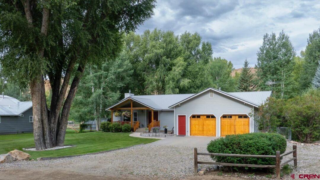 Welcome to 129 Park Dr, Gunnison, Colorado, located in the esteemed Island Acres neighborhood. This property is nestled near the Gunnison River and borders the West Branch of the Gunnison River, offering a tranquil environment mere minutes from downtown, Western Colorado University, the Gunnison Whitewater Park, and diverse recreational opportunities throughout Gunnison County. Dos Rios Golf Course is also conveniently nearby with Hartman's Recreational Area a short bike ride from your front door. The grounds feature well-maintained lawns, mature Pine and Aspen trees, and a variety of wildlife including birds, owls, pigeons, ravens, deer, squirrels, and foxes. The property is bordered by the West Branch of the Gunnison providing water for lawn irrigation. Outdoor spaces are welcoming for summer and autumn activities; ample grassy areas invite recreation, and a playhouse offers enjoyment for children or grandchildren. The Cumberland Shed allows for storage or workshop space, while the Weatherport provides additional room for lawn equipment and other items. Parking for a camper is readily available. This ranch-style home is both attractive and meticulously cared for. The open-concept living and dining areas face east and south, ensuring abundant natural light throughout the year via a wall of windows that integrates indoor and outdoor spaces. The kitchen is equipped with granite countertops, tiled backsplash, a comprehensive appliance package, generous cabinetry, and a built-in pantry. 129 Park Drive includes three bedrooms and two-and-a-half baths. The primary suite is expansive, featuring a large walk-in closet, an impressive bathroom with an oversized vanity, double sinks, walk-in shower, and jetted tub for a private spa-like retreat. The two guest bedrooms are spacious with sizable closets, and the guest powder bath adds convenience. This residence combines desirable location and excellent condition, presenting an exceptional opportunity as it is move-in ready. Whether you desire full-time living or a second home, this property has much to offer. It won't last long and we look forward to showing you this property.