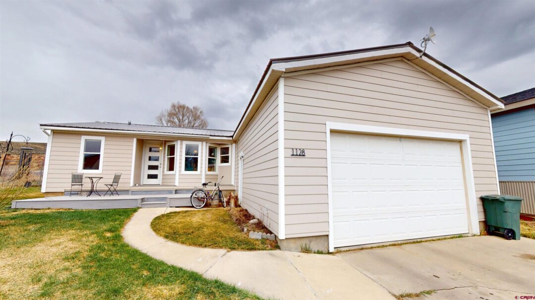 Welcome home to 1128 Colorado Circle. Move-in-ready 3 bed, 2 bath home on owned land with an oversized/tall garage (576 sf +/-), backing up to university open space. Recent upgrades include a fully remodeled primary bathroom, a newer metal roof, updated siding, modern front door, and a large Trex deck for low maintenance outdoor living. Located just 1 and 1/2 blocks from the Gunnison Rec Center, bus stop, Natural Grocers, and Walmart, offering exceptional convenience. The low HOA dues provide snow removal, irrigation and lawn care, with owner installed sprinklers set out seasonally on the lot, The home has in-ground sprinklers. An adjacent grassy and level irrigated lot owned by seller, known as 1130 N Colorado Circle, is available separately for $118,000.00 or by negotiation, offering flexibility and future potential development. Rare combination of condition, ownership, garage utility, and location in Gunnison. Gunnison is located on the Western Slope and surrounding by 87 percent public lands offering incredible outdoor recreation to fish Blue Mesa, Ski Crested Butte or Monarch Mountain. Hartman's Rec Area offers miles of mountain biking for the beginner and advanced rider. Gunnison offers a private FBO and Jetport for ease of travel. Don't miss this opportunity to live and play in the Gunnison Valley.
