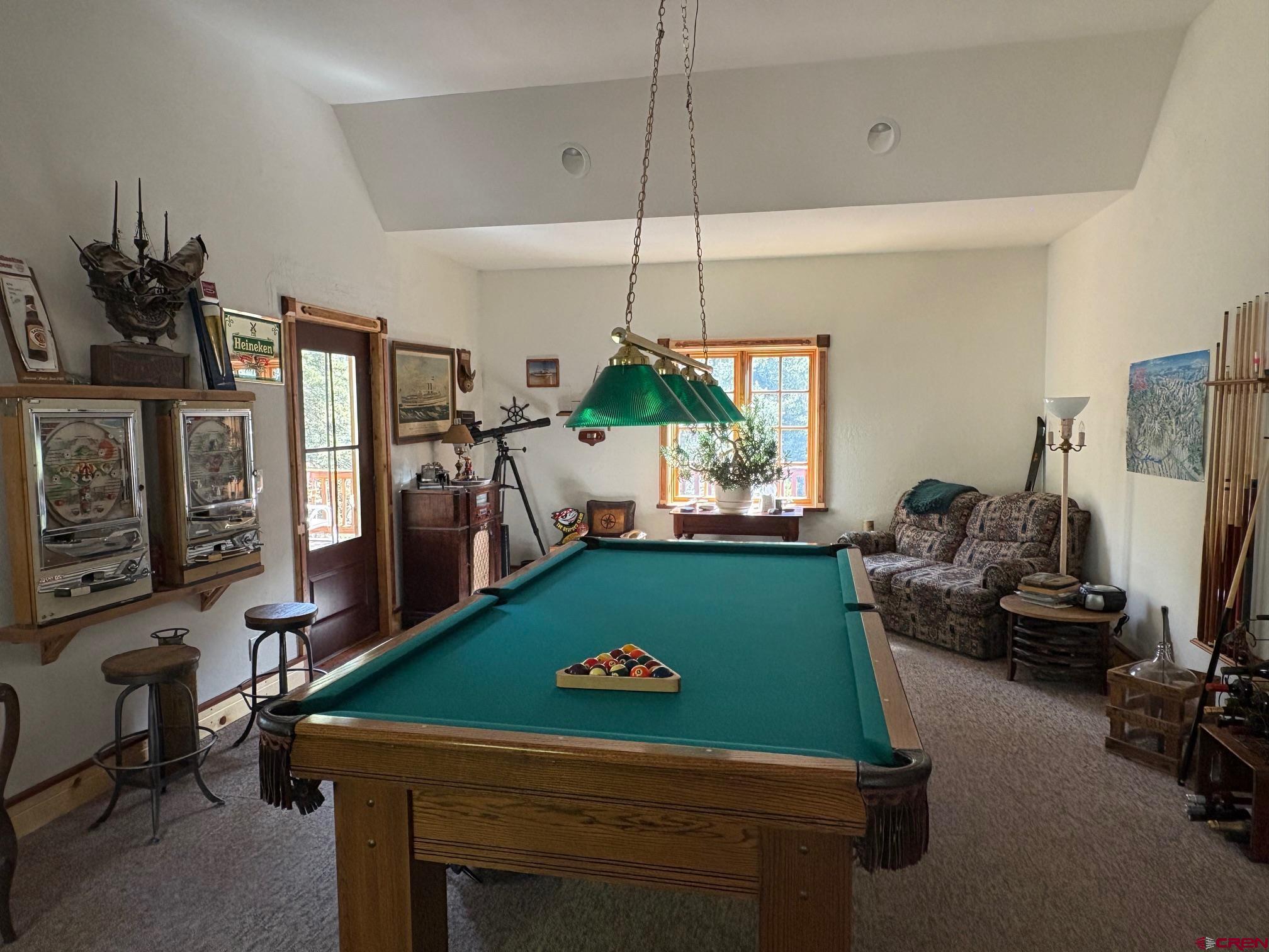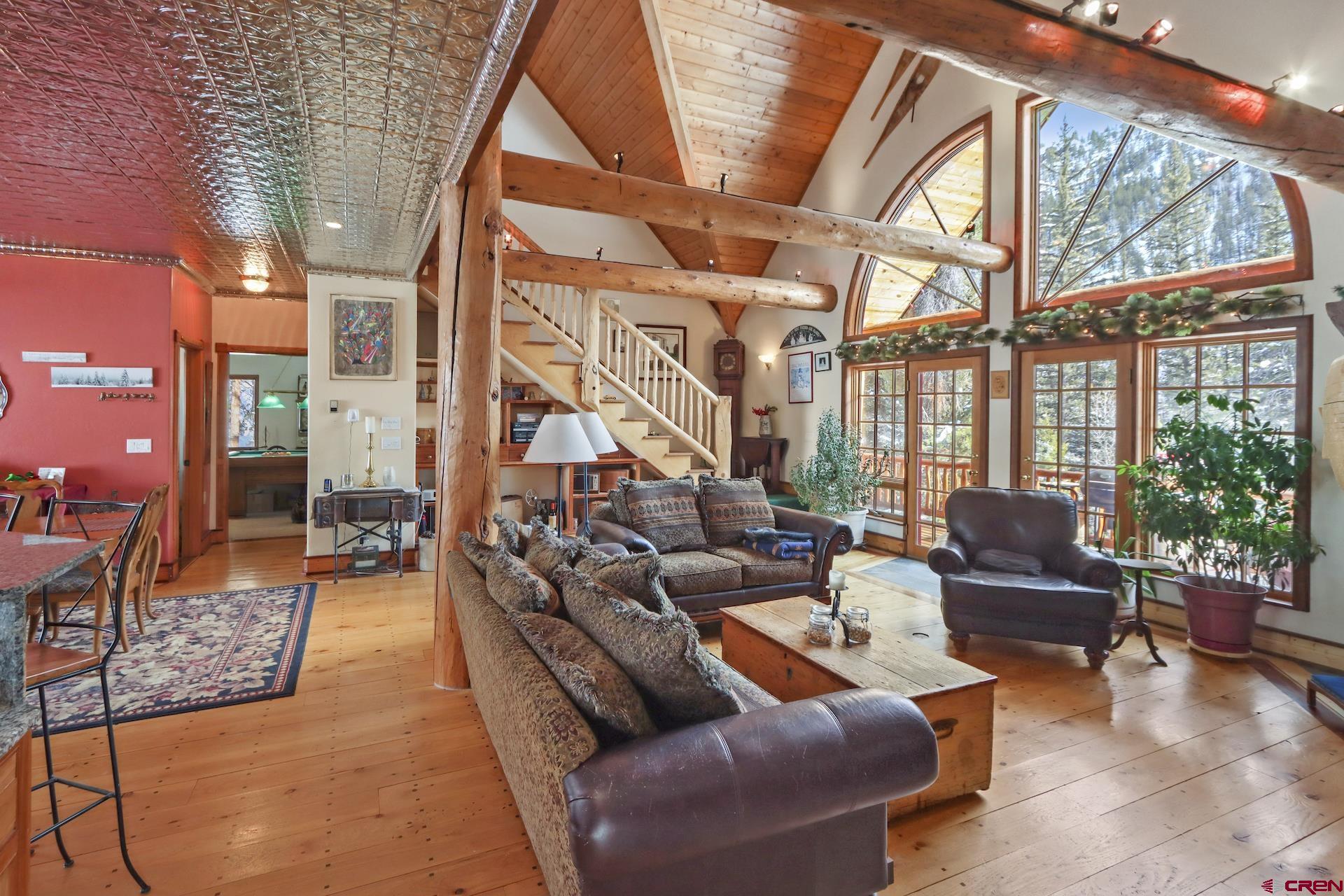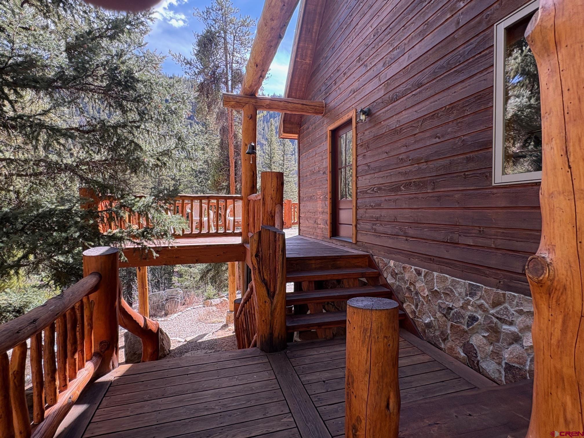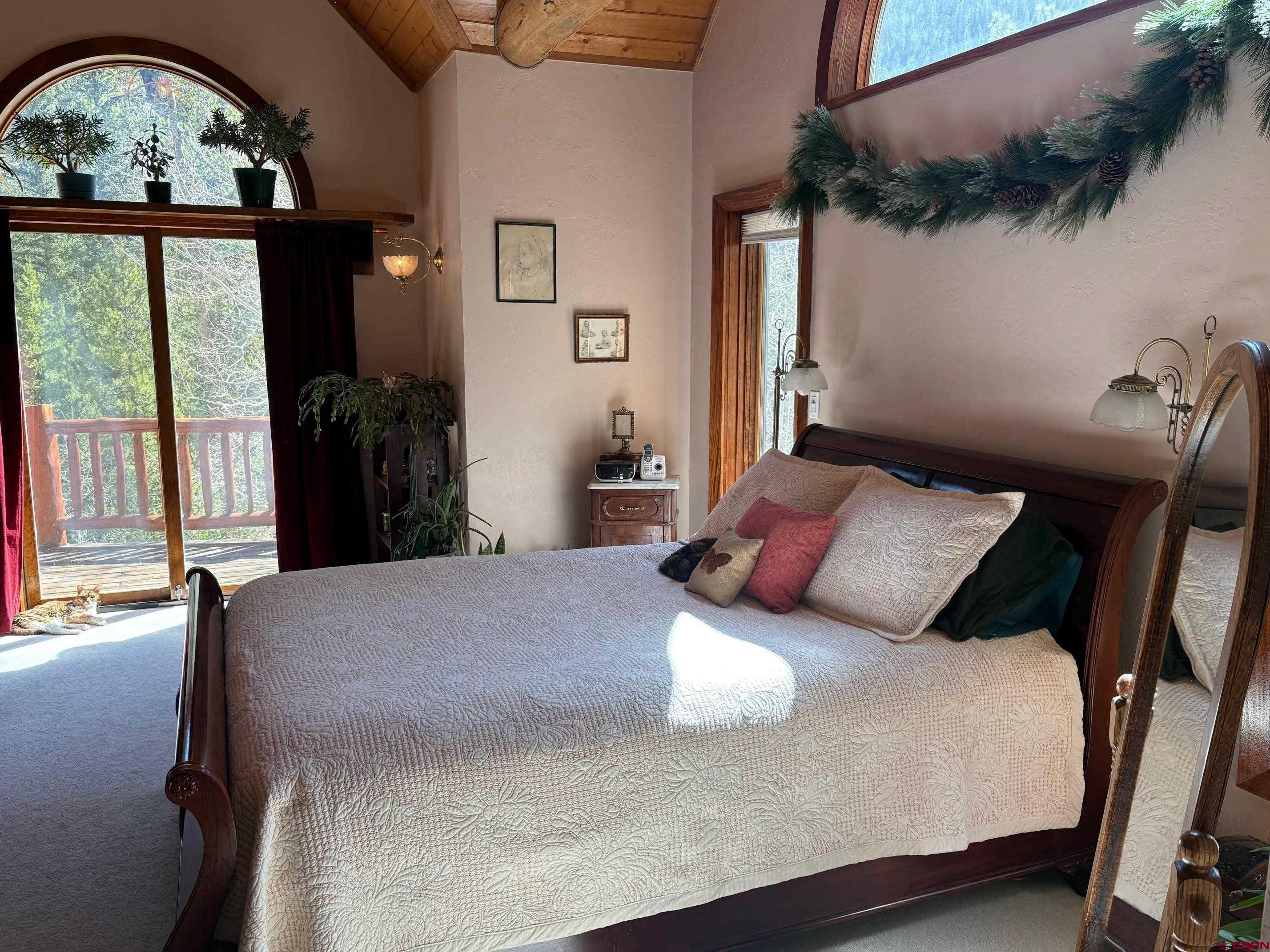 Welcome to 1463 County Road 744 — a distinctive mountain retreat nestled in the sought-after Spring Creek Canyon, just outside of Almont, Colorado. Set on 4.9 acres bordering the Gunnison National Forest, this property offers exceptional privacy, private fishing access across the road, and the tranquil sound of Spring Creek, all with year-round access via a paved county road. Built in 2000, the home features 3 bedrooms, 2.5 bathrooms, and approximately 2,400 square feet of living space, plus an additional ~1,900 square feet in the walk-out basement. The lower level includes an oversized garage, flexible bonus spaces, and abundant storage. Designed for comfort and efficiency, the home is constructed with a foam block foundation and features geothermal in-floor heat throughout. The main level showcases an open-concept great room with soaring cathedral ceilings, expansive windows, and a striking double-sided river rock wood-burning fireplace. The kitchen is appointed with custom cherry cabinetry, granite countertops, and a distinctive tin ceiling that continues into the dining area, adding warmth and character. A door off the rec/pool room provides direct access to the deck, enhancing indoor-outdoor flow. Upstairs, two additional bedrooms and a full bathroom overlook the main living space, creating a functional and inviting layout. Throughout the home, custom hardwood millwork highlights a blend of high-end wood species, including mahogany, walnut, and teak. Outside, the landscaped backyard features a dry-stacked stone wall and a central fire pit, ideal for gathering under Colorado’s open skies. A standout feature of the property, “The Cave,” is a one-of-a-kind handcrafted wine retreat built from reclaimed local materials — a truly unique space for entertaining. Ideally located between Gunnison and Crested Butte, this property offers convenient access to year-round recreation. In the summer months, enjoy fishing, hiking, biking, horseback riding, rock climbing, and ATV/Jeep trails. In the winter, take advantage of world-class downhill and cross-country skiing, snowmobiling, and snowshoeing. Nearby Spring Creek and Taylor Reservoirs, along with dining and entertainment at Harmel’s Resort, enhance the lifestyle this exceptional property provides. A rare opportunity to own a distinctive home in one of the Gunnison Valley’s most desirable canyon settings.