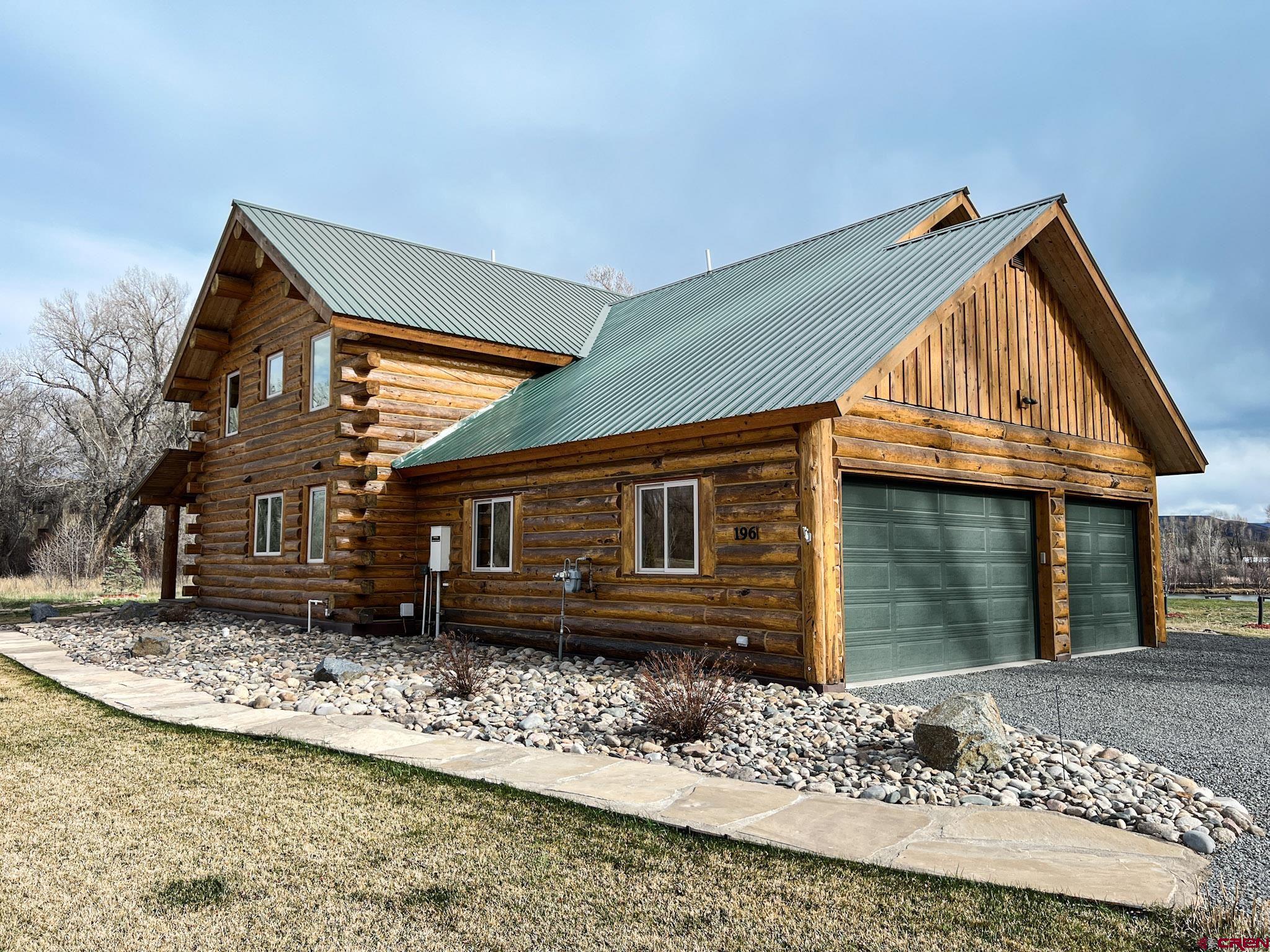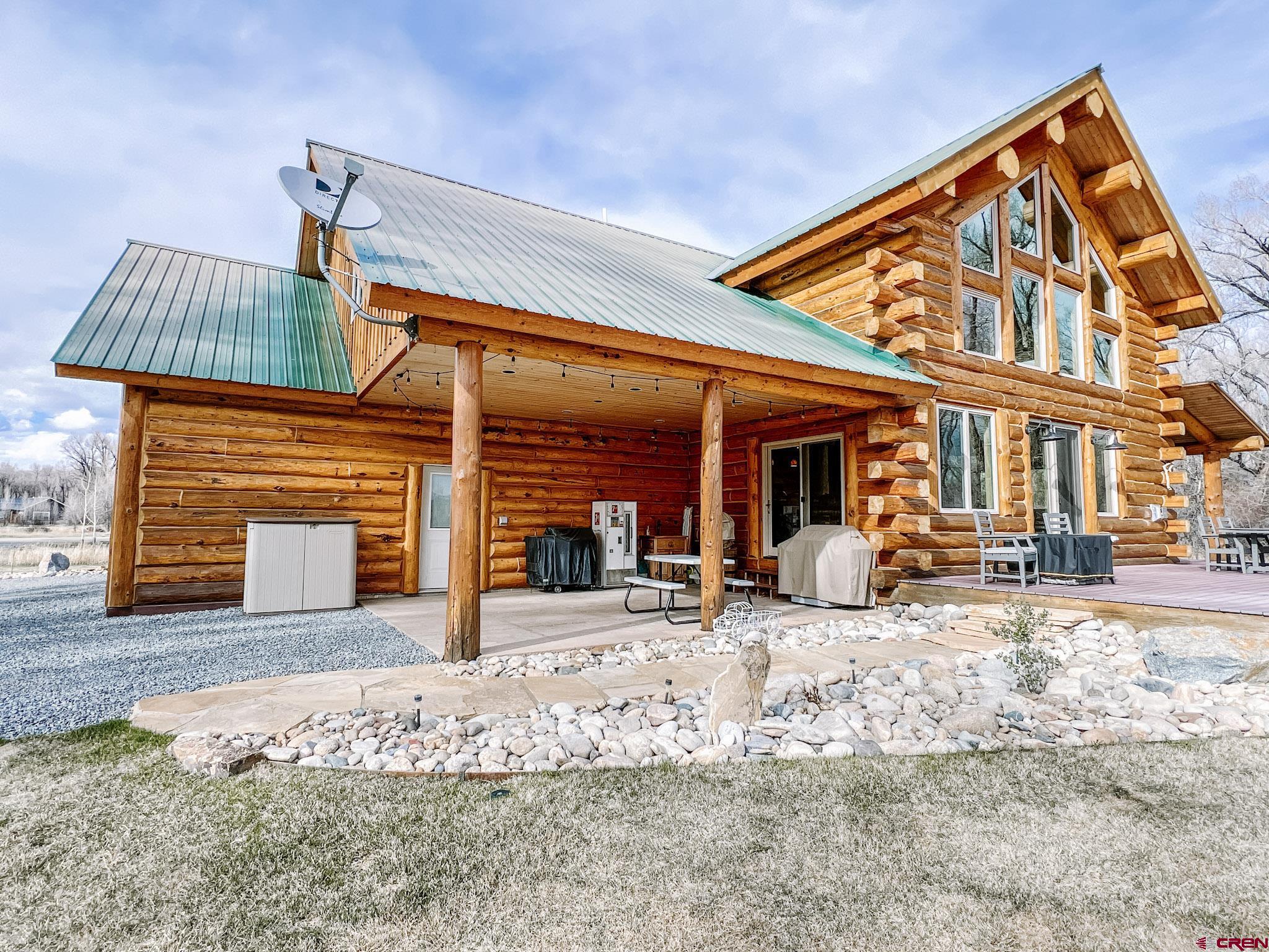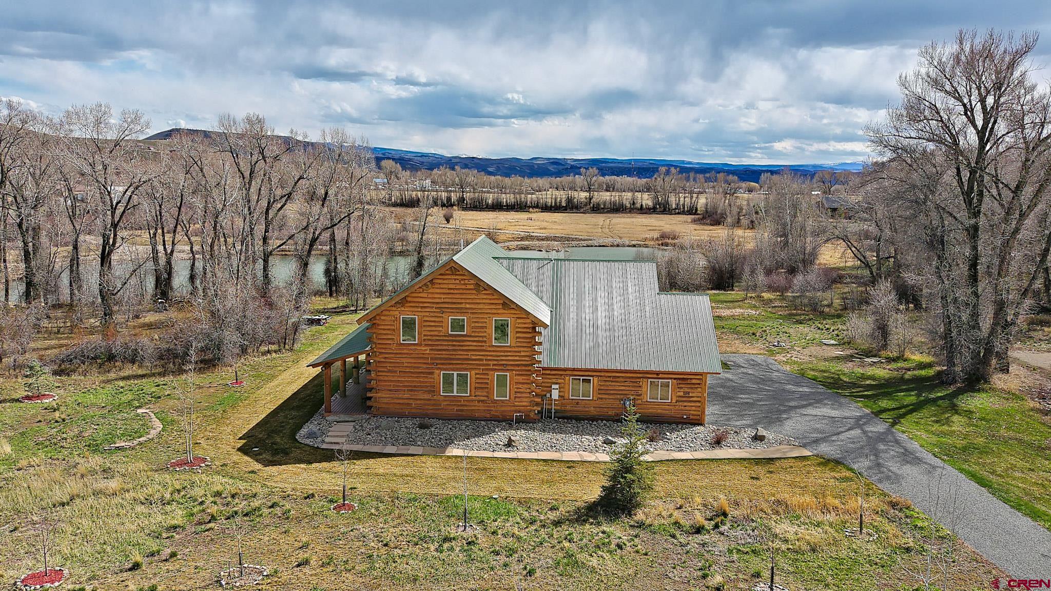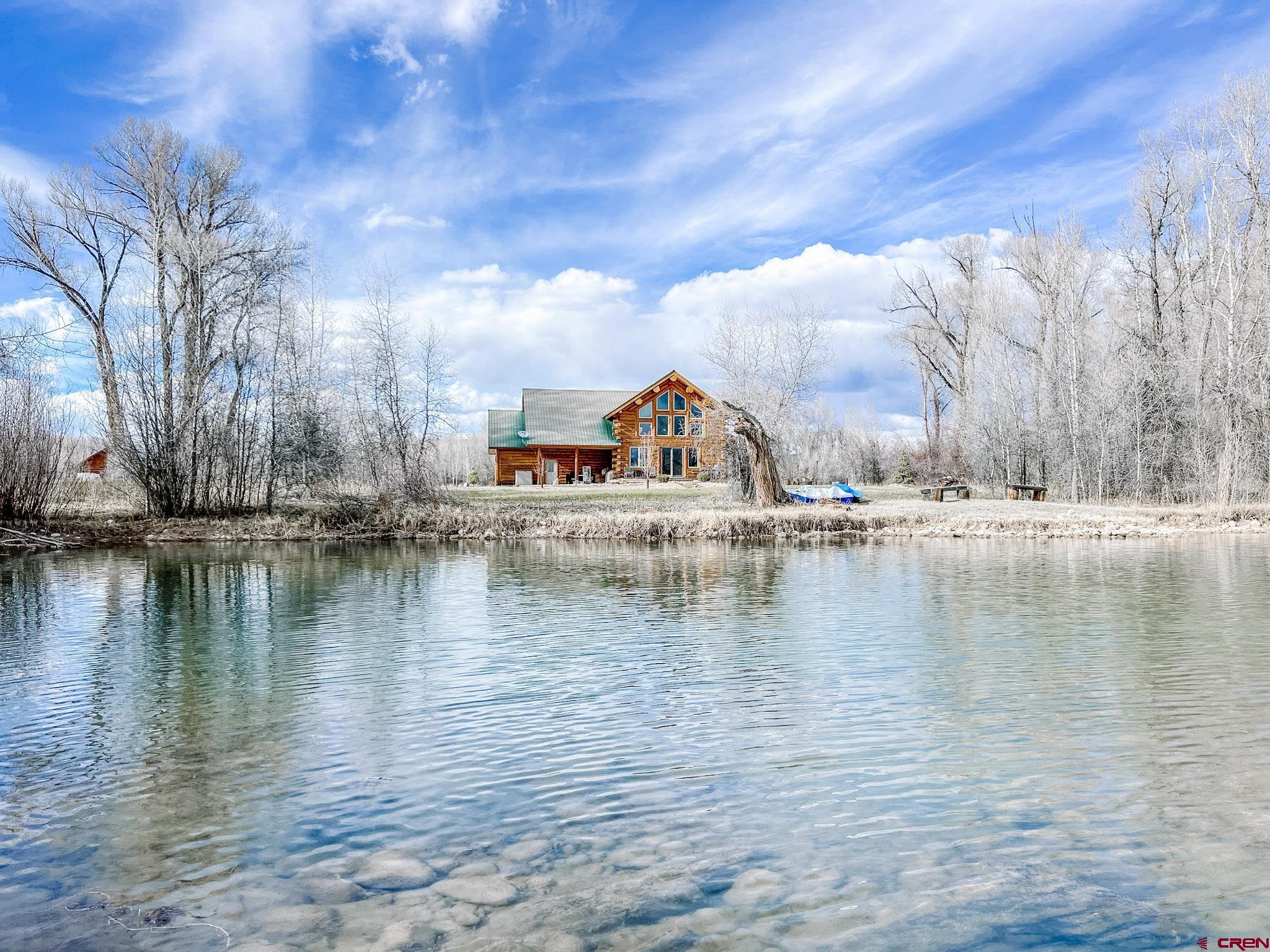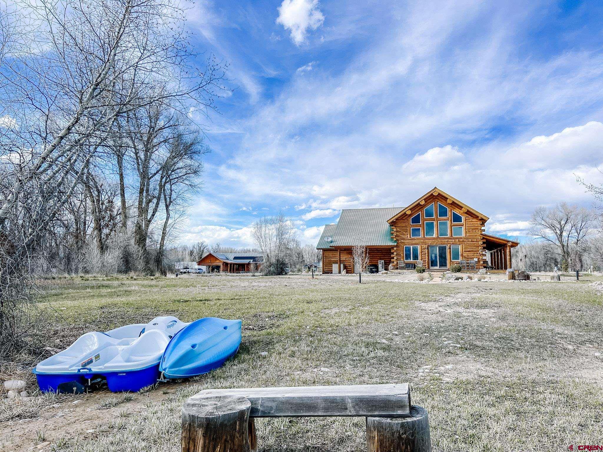 Welcome to this beautifully crafted Colorado log home in the desirable Riverwalk Estates community, set on approximately one acre and built with authentic D-logs sourced right here in Colorado. Offering a rare blend of craftsmanship, comfort and warmth with in-floor radiant heath throughout and south facing windows, and an enjoyable mountain lifestyle. This neighborhood provides access to private fishing ponds, private Gunnison River access, scenic hiking trails, and abundant wildlife including moose, elk, and deer. The open-concept main level features soaring vaulted ceilings, a stunning gas fireplace, and a spacious living area filled with natural light. The kitchen is designed for both function and gathering, complete with granite countertops, a gas range, and ample space for entertaining. The main-level primary suite offers convenience and privacy, featuring a double vanity, two walk-in closets, and a well-appointed three-quarter bathroom with a shower. A laundry room and additional half bath are also located on the main level, along with access to the attached 3-car garage totaling~ 919 Sq ft. Upstairs, you’ll find flexible living spaces including additional bedrooms and loft areas, along with a three-quarter bathroom with a shower. The home is configured as a four-bedroom property; however, one bedroom does not include a closet and is currently utilized as an office. Another bedroom is set up as a custom movie theater and features additional storage space accessed through the closet. Outdoor living is just as inviting with a large deck built from Track Decking and totaling ~854 Sq Ft , a covered patio with gas hookups totaling ~313 Sq Ft, and a flagstone sidewalk that leads to a gorgeous fire pit also created from flagstone —perfect for enjoying the peaceful surroundings. The landscaped yard features newly planted trees and plenty of space to take in the natural beauty of the area, along with a bordering pond and nearby HOA pond offering opportunities for paddleboarding and kayaking. As an added bonus, the property includes a small guest cabin for owner use, providing a comfortable space for visiting guests. Conveniently located just minutes from Gunnison and within walking distance to Garlic Mike’s, this home offers the perfect balance of privacy, recreation, and accessibility in one of the area’s most sought-after communities. Buyer to verify all square footage.