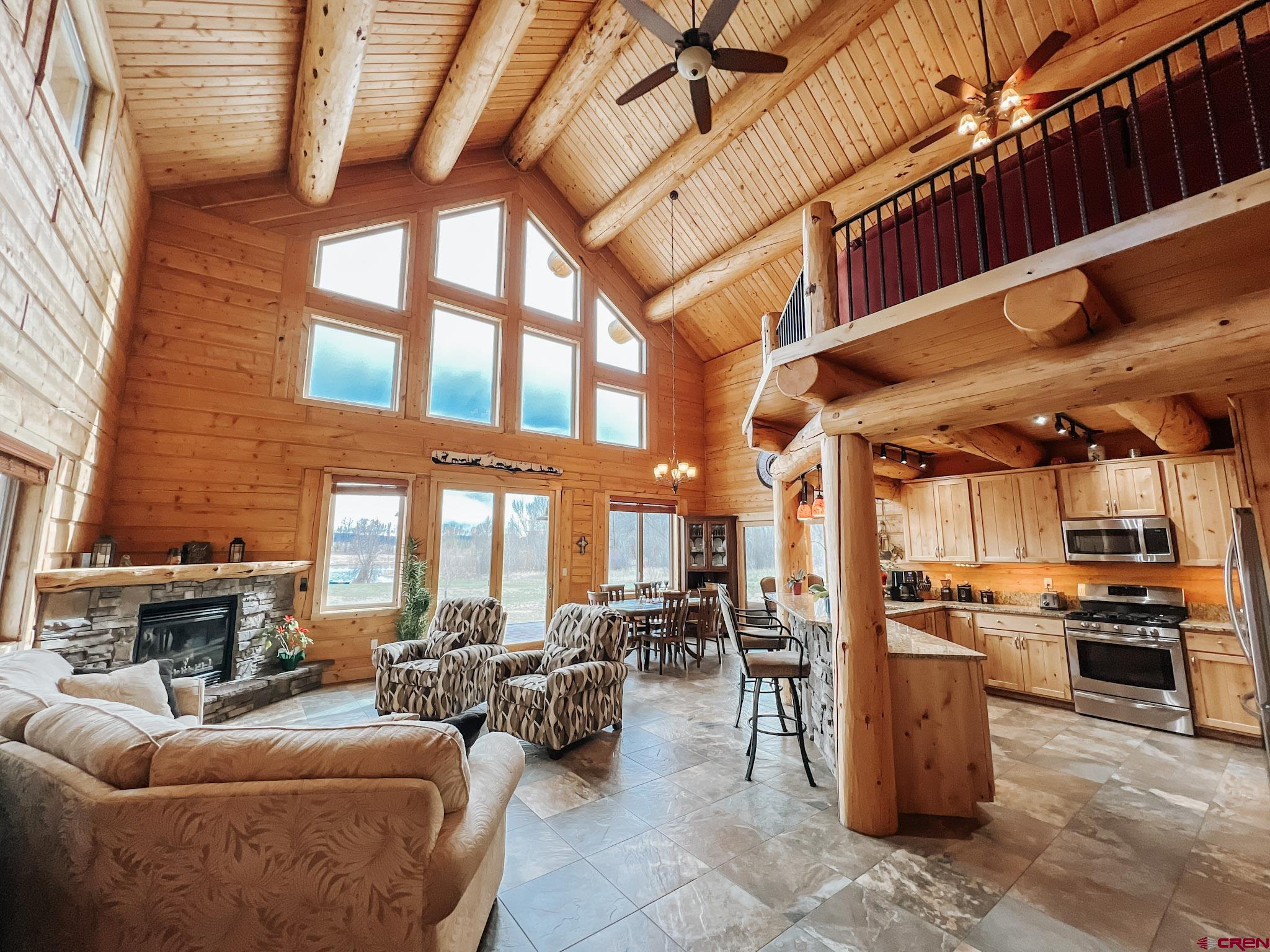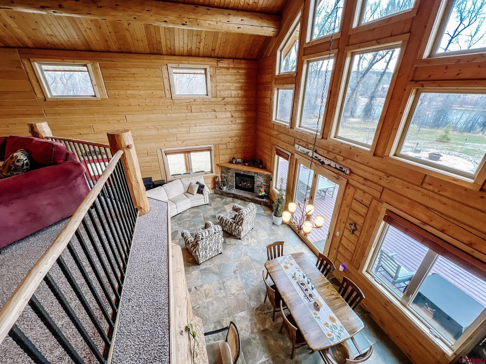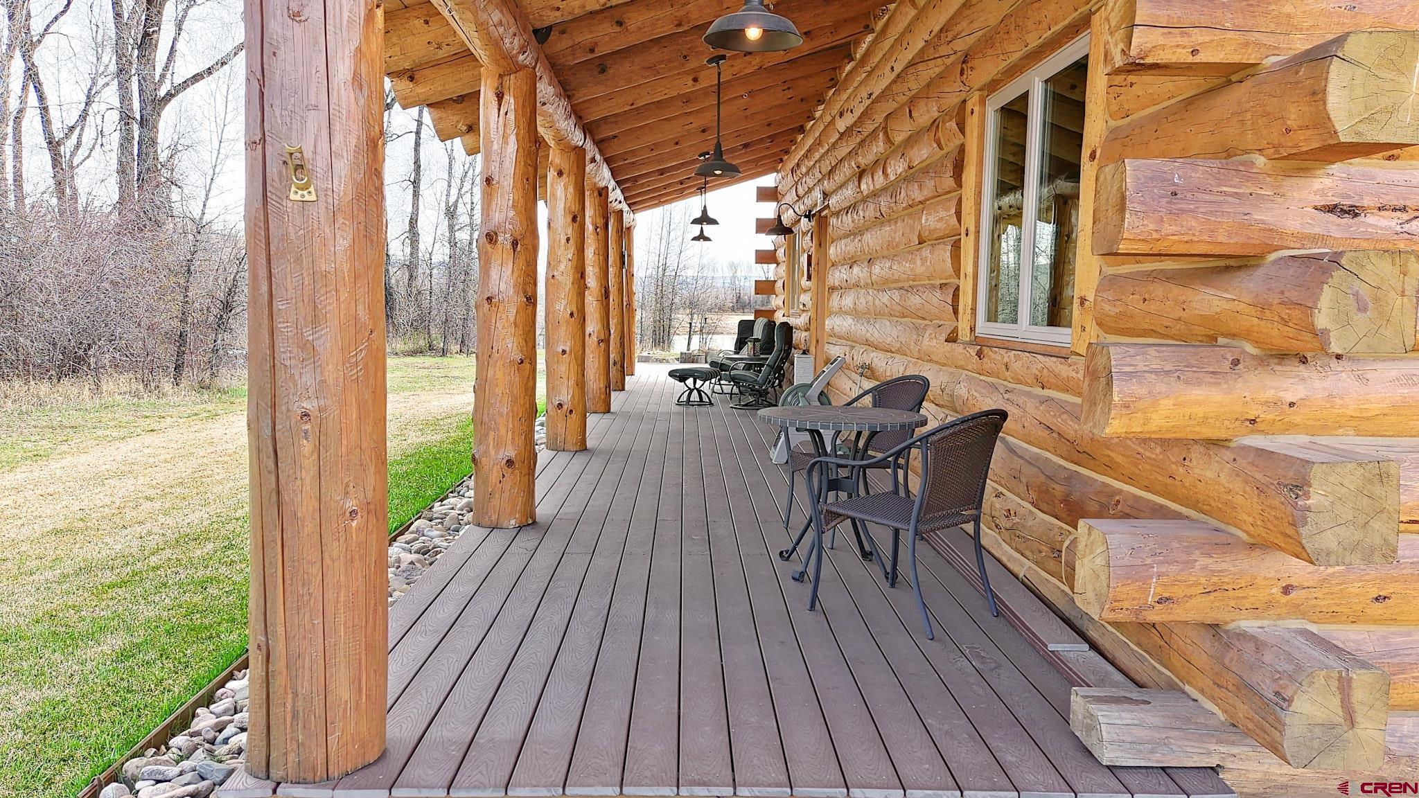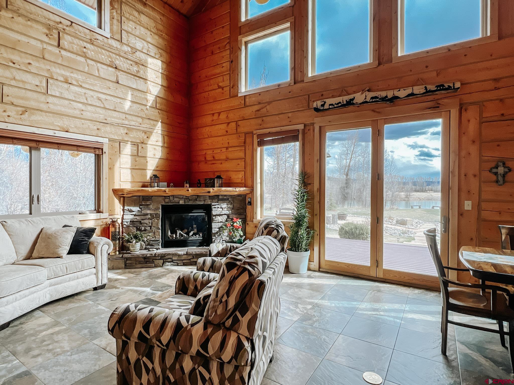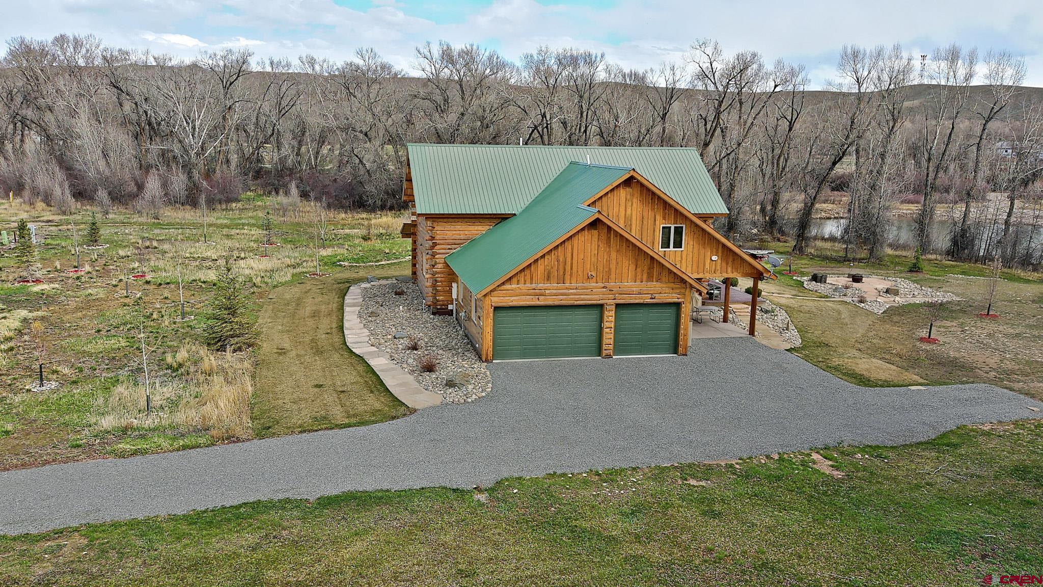 Welcome to this beautifully crafted Colorado log home in the desirable Riverwalk Estates community, set on approximately one acre and built with authentic D-logs sourced right here in Colorado. Offering a rare blend of craftsmanship, comfort and warmth with in-floor radiant heath throughout and south facing windows, and an enjoyable mountain lifestyle. This neighborhood provides access to private fishing ponds, private Gunnison River access, scenic hiking trails, and abundant wildlife including moose, elk, and deer. The open-concept main level features soaring vaulted ceilings, a stunning gas fireplace, and a spacious living area filled with natural light. The kitchen is designed for both function and gathering, complete with granite countertops, a gas range, and ample space for entertaining. The main-level primary suite offers convenience and privacy, featuring a double vanity, two walk-in closets, and a well-appointed three-quarter bathroom with a shower. A laundry room and additional half bath are also located on the main level, along with access to the attached 3-car garage totaling~ 919 Sq ft. Upstairs, you’ll find flexible living spaces including additional bedrooms and loft areas, along with a three-quarter bathroom with a shower. The home is configured as a four-bedroom property; however, one bedroom does not include a closet and is currently utilized as an office. Another bedroom is set up as a custom movie theater and features additional storage space accessed through the closet. Outdoor living is just as inviting with a large deck built from Track Decking and totaling ~854 Sq Ft , a covered patio with gas hookups totaling ~313 Sq Ft, and a flagstone sidewalk that leads to a gorgeous fire pit also created from flagstone —perfect for enjoying the peaceful surroundings. The landscaped yard features newly planted trees and plenty of space to take in the natural beauty of the area, along with a bordering pond and nearby HOA pond offering opportunities for paddleboarding and kayaking. As an added bonus, the property includes a small guest cabin for owner use, providing a comfortable space for visiting guests. Conveniently located just minutes from Gunnison and within walking distance to Garlic Mike’s, this home offers the perfect balance of privacy, recreation, and accessibility in one of the area’s most sought-after communities. Buyer to verify all square footage.