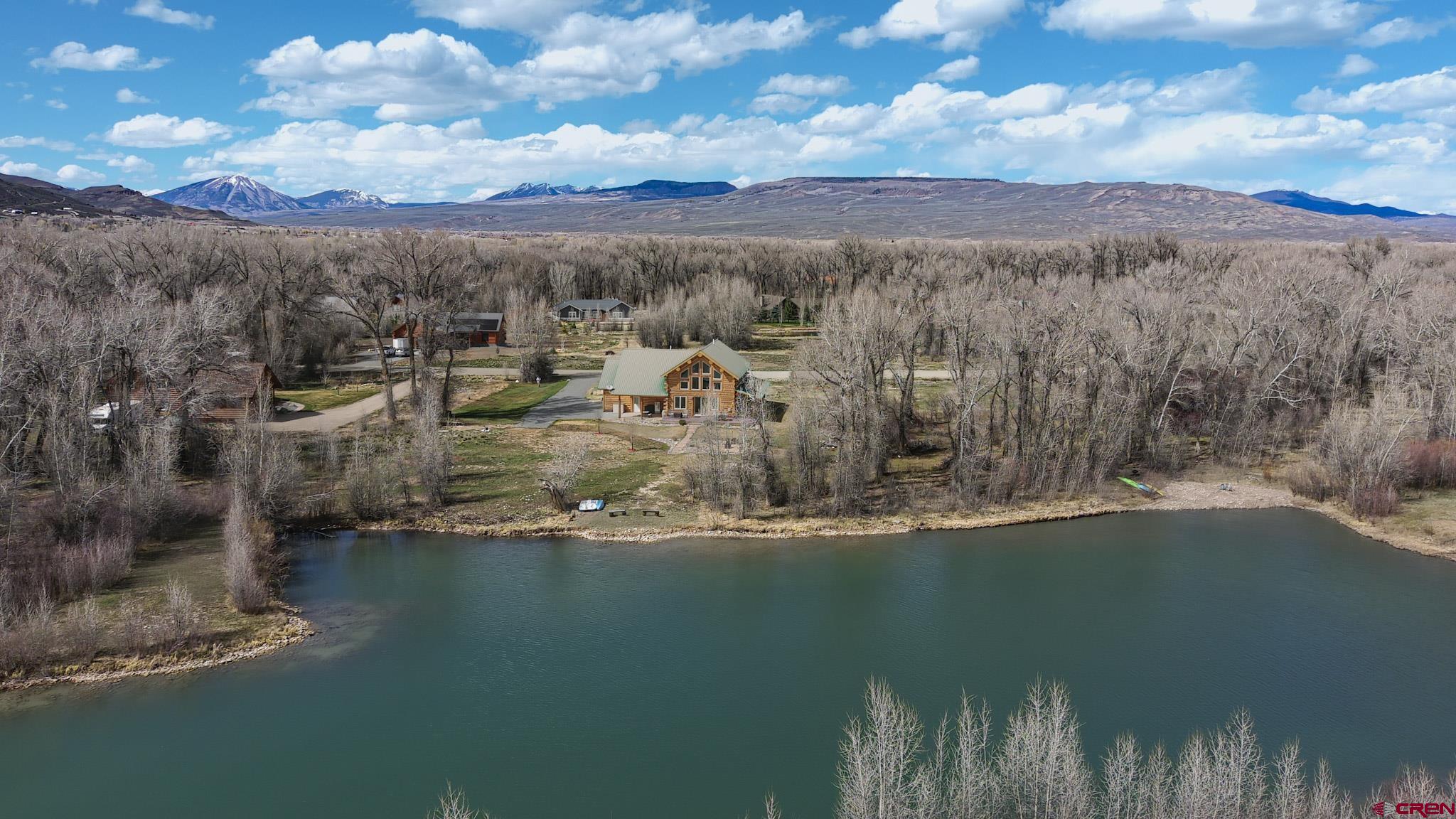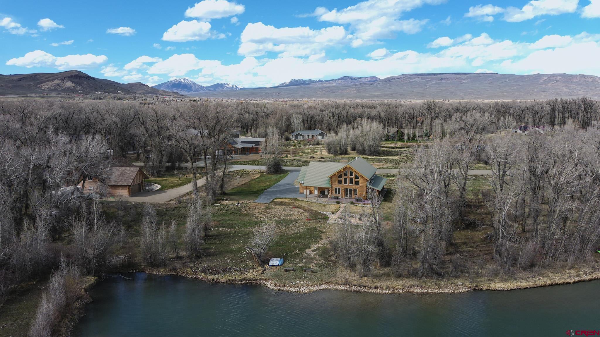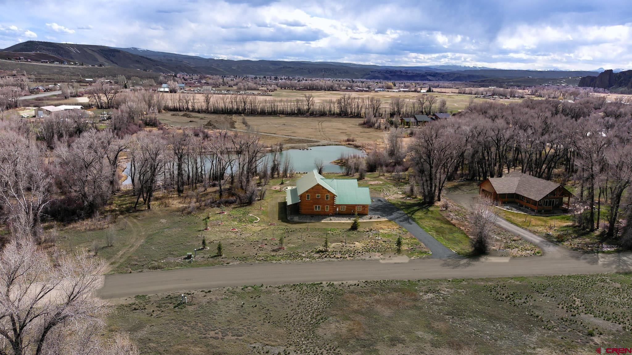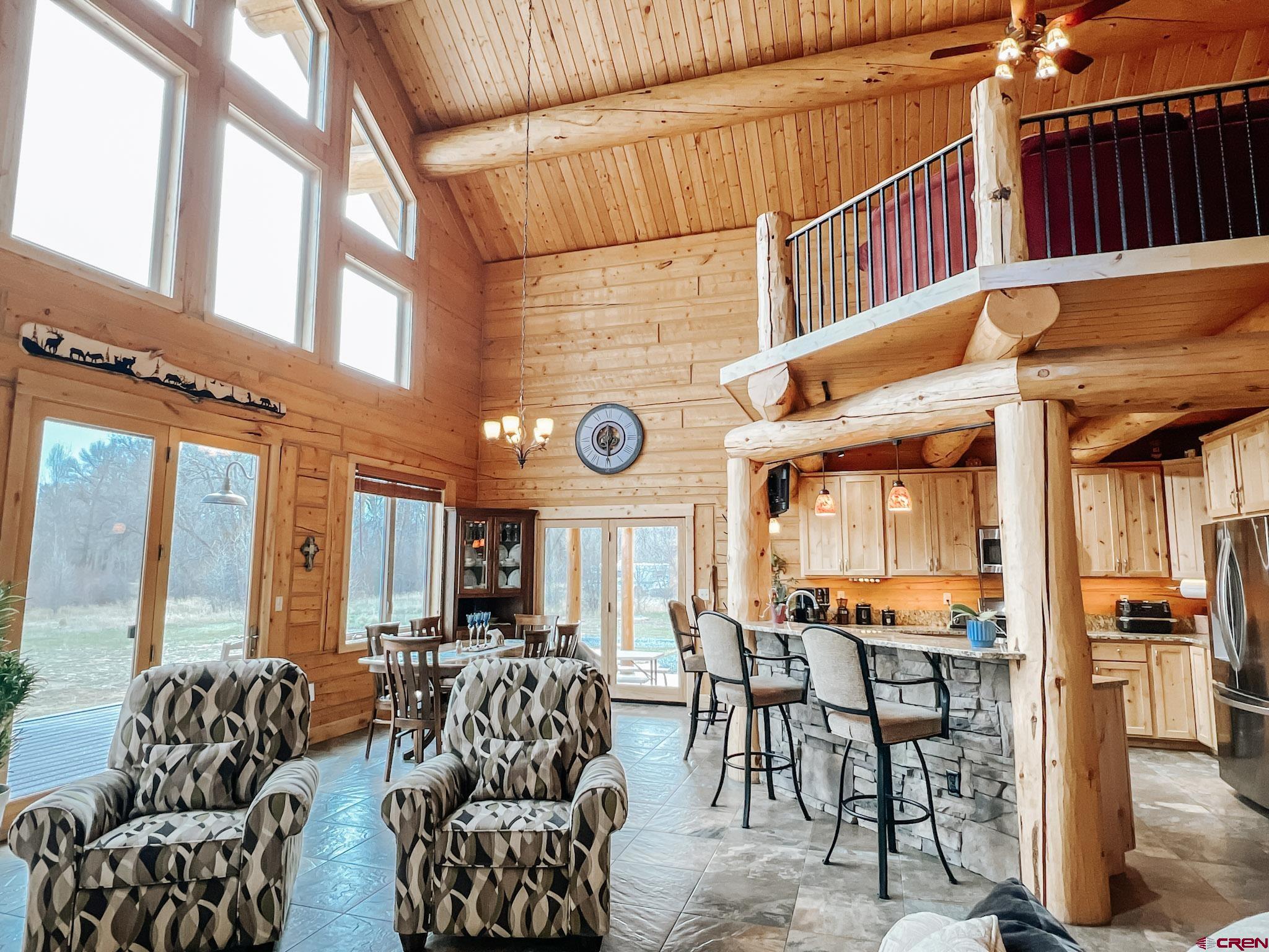 Welcome to this beautifully crafted Colorado log home in the desirable Riverwalk Estates community, set on approximately one acre and built with authentic D-logs sourced right here in Colorado. Offering a rare blend of craftsmanship, comfort and warmth with in-floor radiant heath throughout and south facing windows, and an enjoyable mountain lifestyle. This neighborhood provides access to private fishing ponds, private Gunnison River access, scenic hiking trails, and abundant wildlife including moose, elk, and deer. The open-concept main level features soaring vaulted ceilings, a stunning gas fireplace, and a spacious living area filled with natural light. The kitchen is designed for both function and gathering, complete with granite countertops, a gas range, and ample space for entertaining. The main-level primary suite offers convenience and privacy, featuring a double vanity, two walk-in closets, and a well-appointed three-quarter bathroom with a shower. A laundry room and additional half bath are also located on the main level, along with access to the attached 3-car garage totaling~ 919 Sq ft. Upstairs, you’ll find flexible living spaces including additional bedrooms and loft areas, along with a three-quarter bathroom with a shower. The home is configured as a four-bedroom property; however, one bedroom does not include a closet and is currently utilized as an office. Another bedroom is set up as a custom movie theater and features additional storage space accessed through the closet. Outdoor living is just as inviting with a large deck built from Track Decking and totaling ~854 Sq Ft , a covered patio with gas hookups totaling ~313 Sq Ft, and a flagstone sidewalk that leads to a gorgeous fire pit also created from flagstone —perfect for enjoying the peaceful surroundings. The landscaped yard features newly planted trees and plenty of space to take in the natural beauty of the area, along with a bordering pond and nearby HOA pond offering opportunities for paddleboarding and kayaking. As an added bonus, the property includes a small guest cabin for owner use, providing a comfortable space for visiting guests. Conveniently located just minutes from Gunnison and within walking distance to Garlic Mike’s, this home offers the perfect balance of privacy, recreation, and accessibility in one of the area’s most sought-after communities. Buyer to verify all square footage.