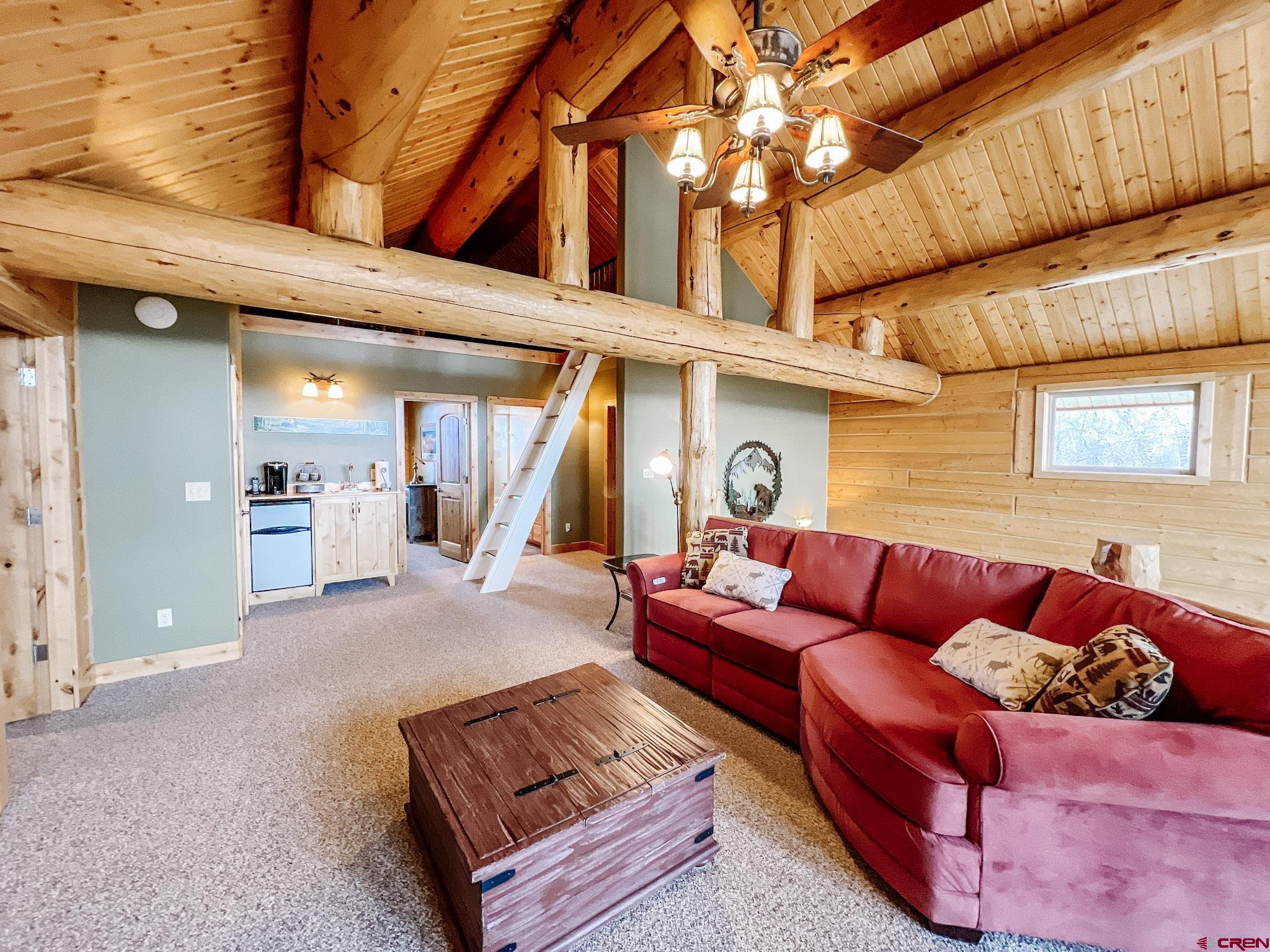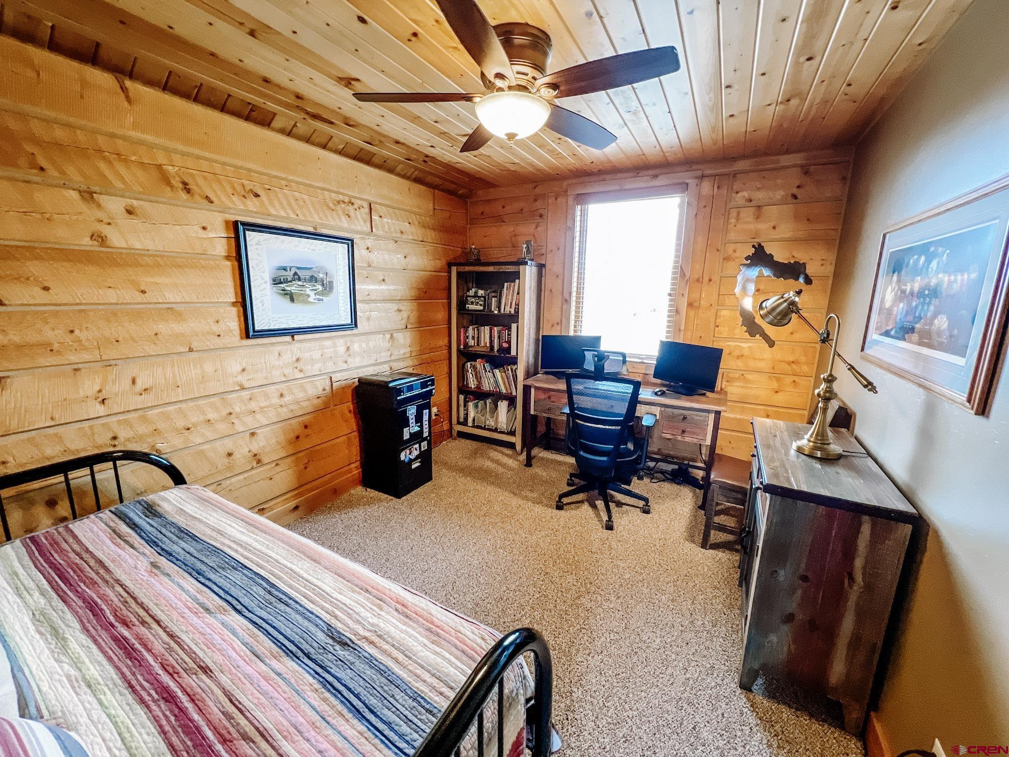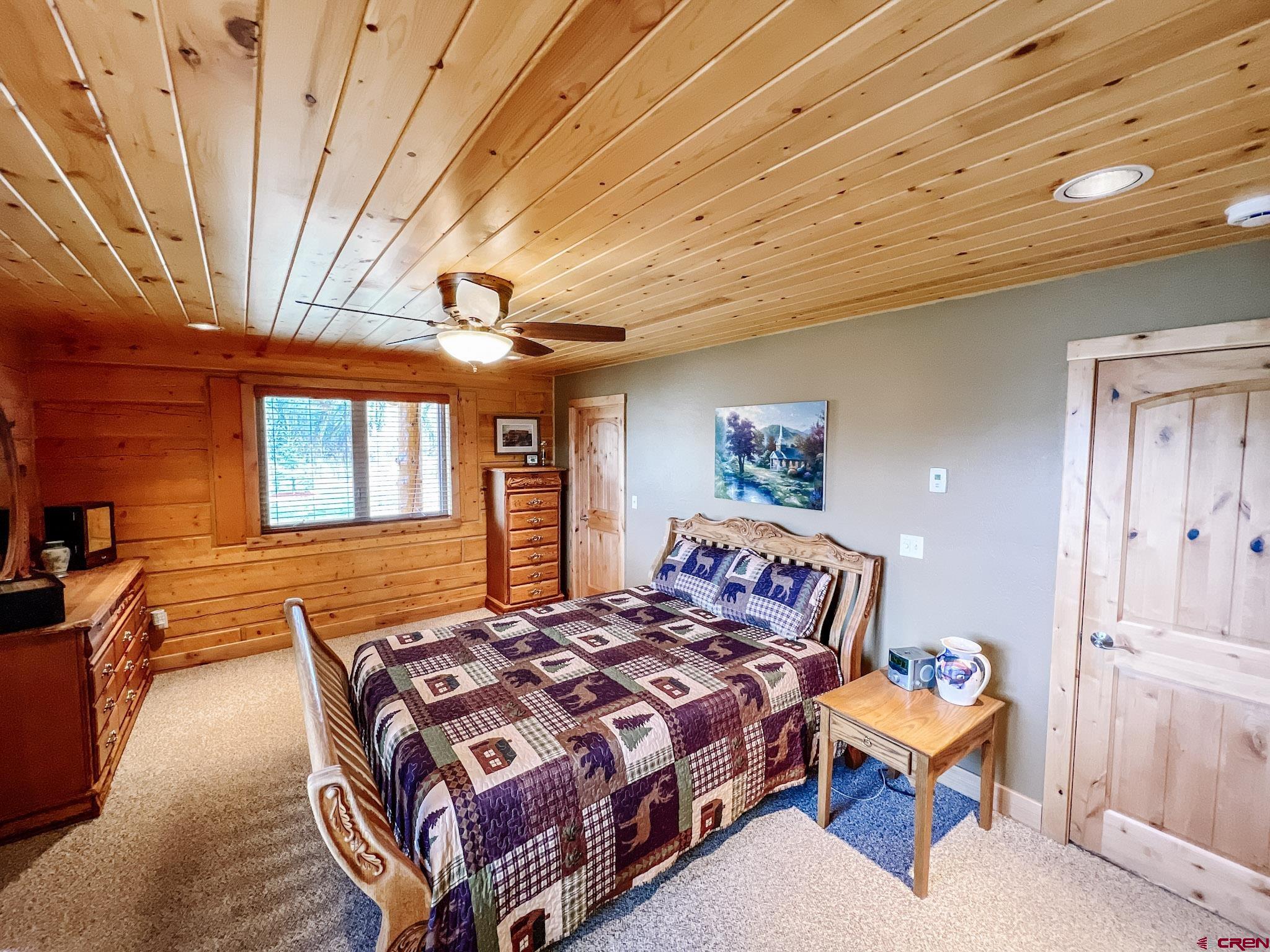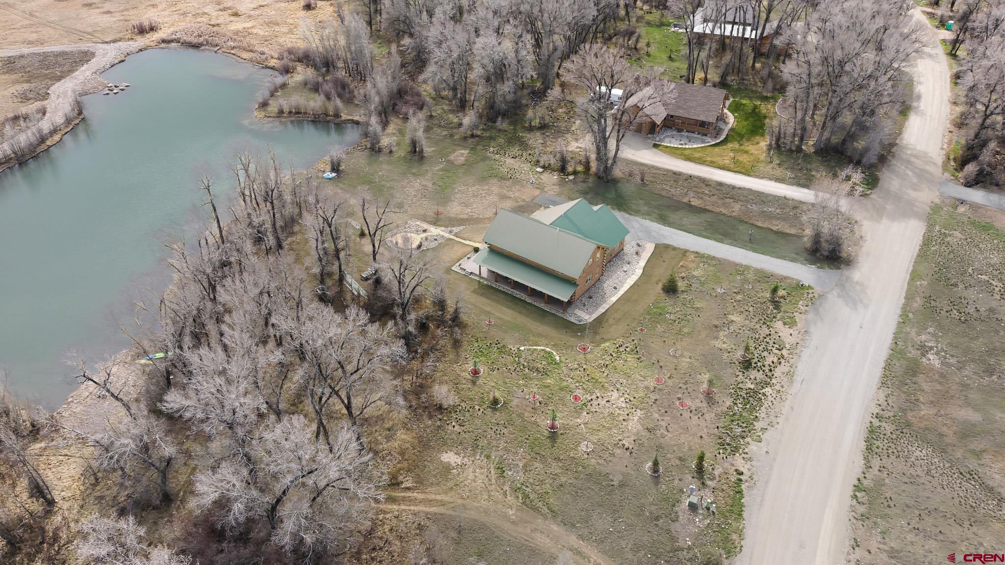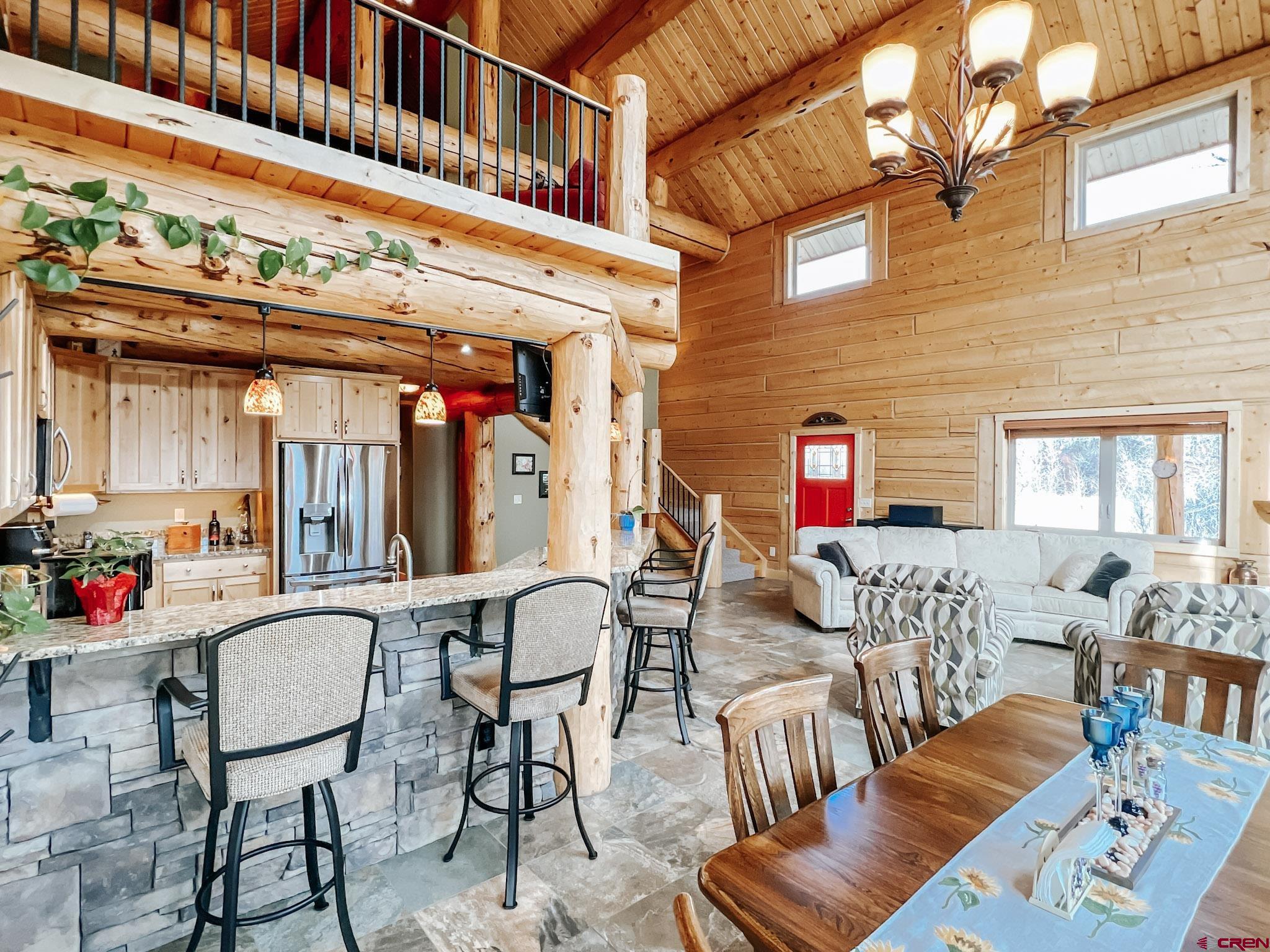 Welcome to this beautifully crafted Colorado log home in the desirable Riverwalk Estates community, set on approximately one acre and built with authentic D-logs sourced right here in Colorado. Offering a rare blend of craftsmanship, comfort and warmth with in-floor radiant heath throughout and south facing windows, and an enjoyable mountain lifestyle. This neighborhood provides access to private fishing ponds, private Gunnison River access, scenic hiking trails, and abundant wildlife including moose, elk, and deer. The open-concept main level features soaring vaulted ceilings, a stunning gas fireplace, and a spacious living area filled with natural light. The kitchen is designed for both function and gathering, complete with granite countertops, a gas range, and ample space for entertaining. The main-level primary suite offers convenience and privacy, featuring a double vanity, two walk-in closets, and a well-appointed three-quarter bathroom with a shower. A laundry room and additional half bath are also located on the main level, along with access to the attached 3-car garage totaling~ 919 Sq ft. Upstairs, you’ll find flexible living spaces including additional bedrooms and loft areas, along with a three-quarter bathroom with a shower. The home is configured as a four-bedroom property; however, one bedroom does not include a closet and is currently utilized as an office. Another bedroom is set up as a custom movie theater and features additional storage space accessed through the closet. Outdoor living is just as inviting with a large deck built from Track Decking and totaling ~854 Sq Ft , a covered patio with gas hookups totaling ~313 Sq Ft, and a flagstone sidewalk that leads to a gorgeous fire pit also created from flagstone —perfect for enjoying the peaceful surroundings. The landscaped yard features newly planted trees and plenty of space to take in the natural beauty of the area, along with a bordering pond and nearby HOA pond offering opportunities for paddleboarding and kayaking. As an added bonus, the property includes a small guest cabin for owner use, providing a comfortable space for visiting guests. Conveniently located just minutes from Gunnison and within walking distance to Garlic Mike’s, this home offers the perfect balance of privacy, recreation, and accessibility in one of the area’s most sought-after communities. Buyer to verify all square footage.
