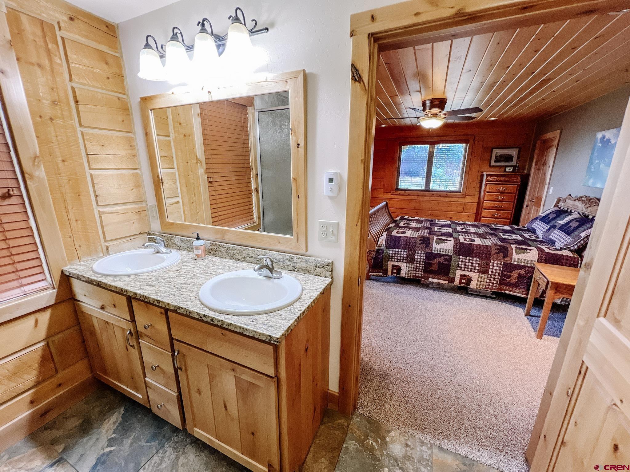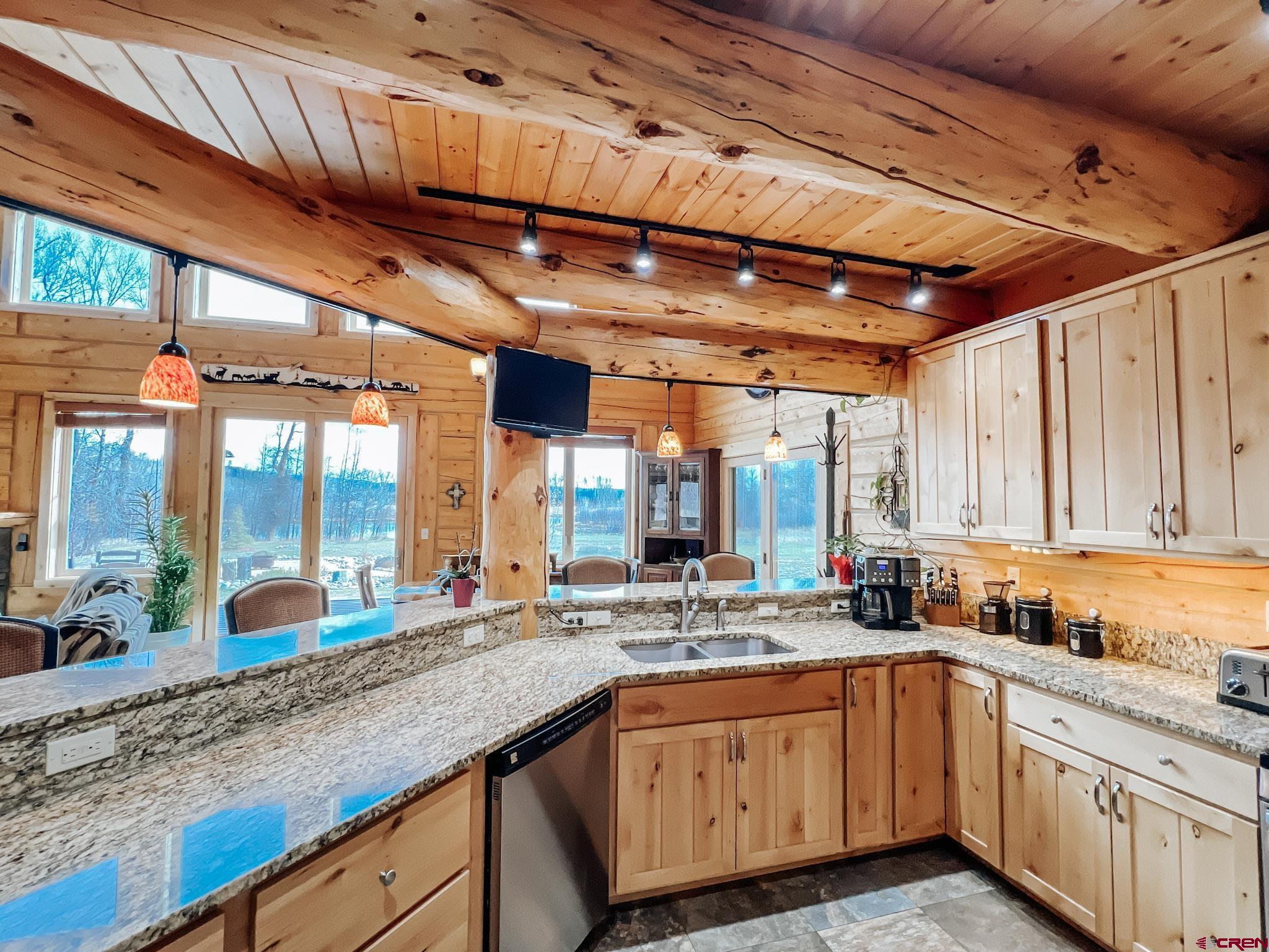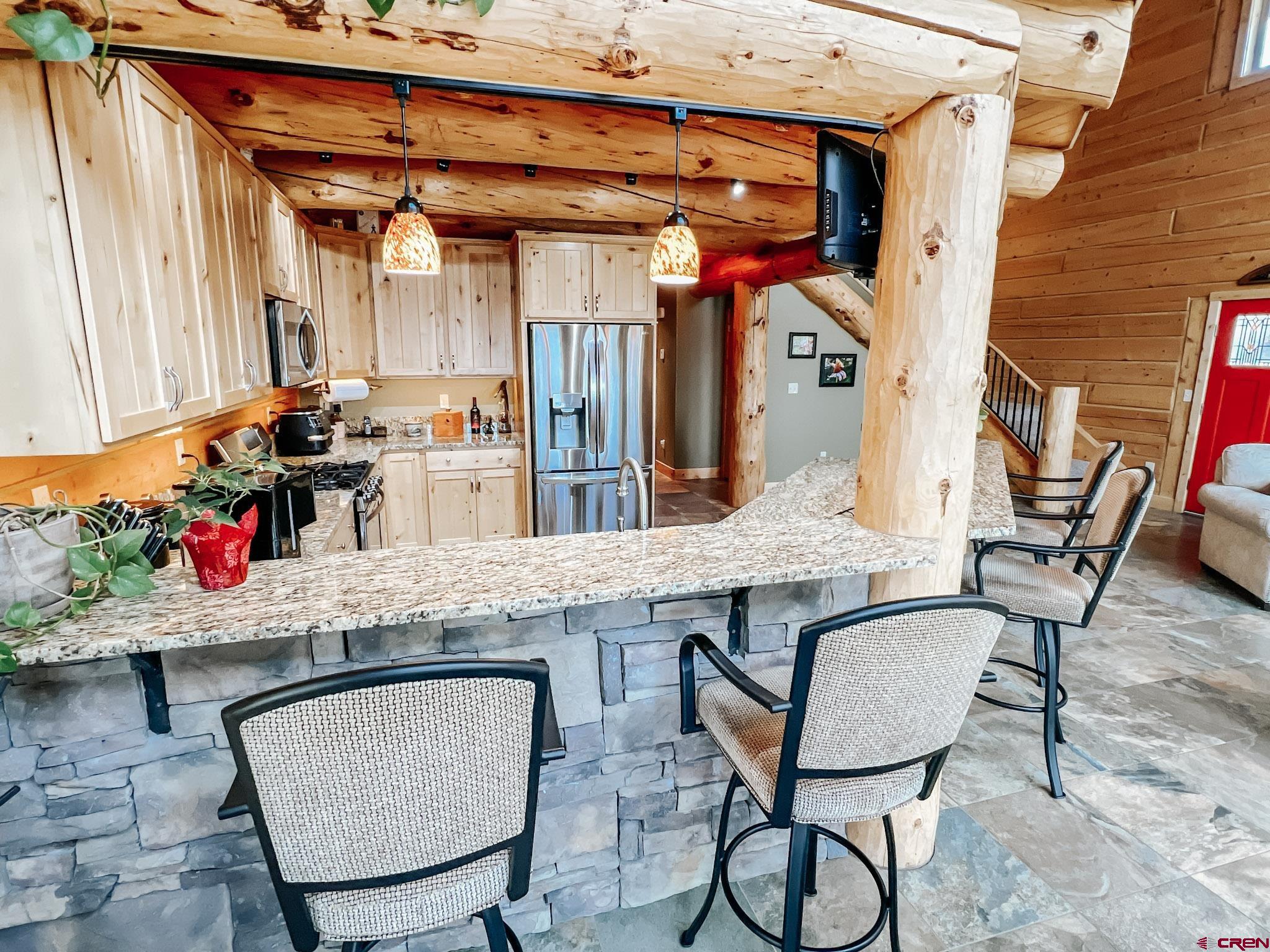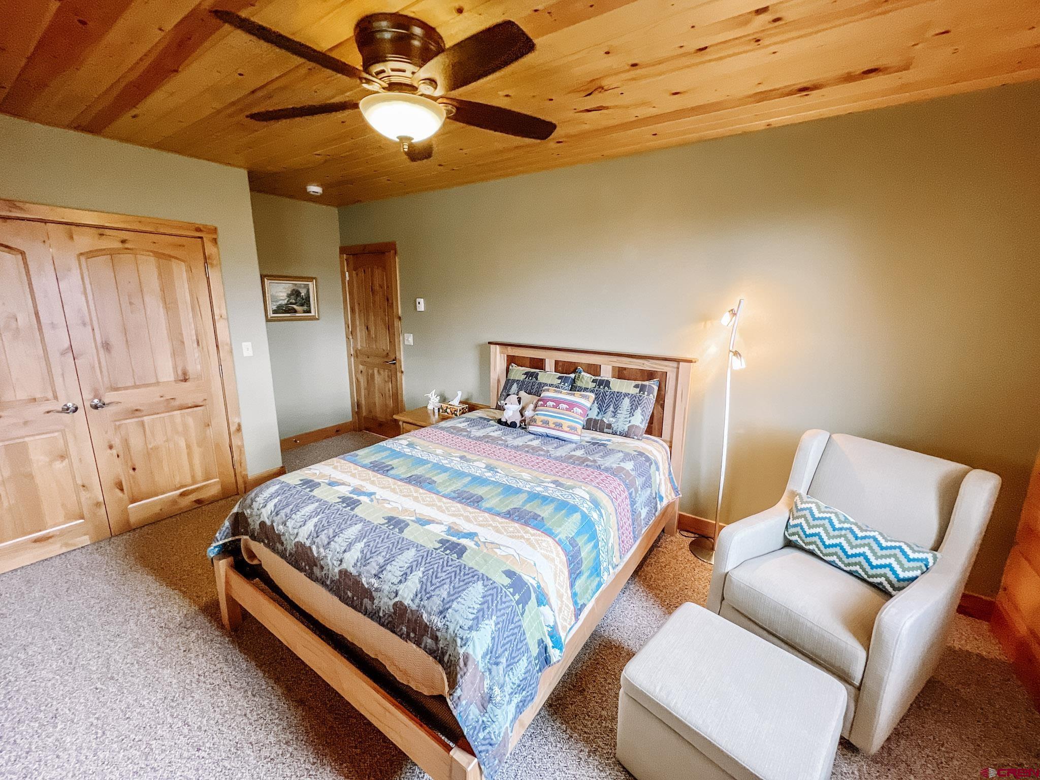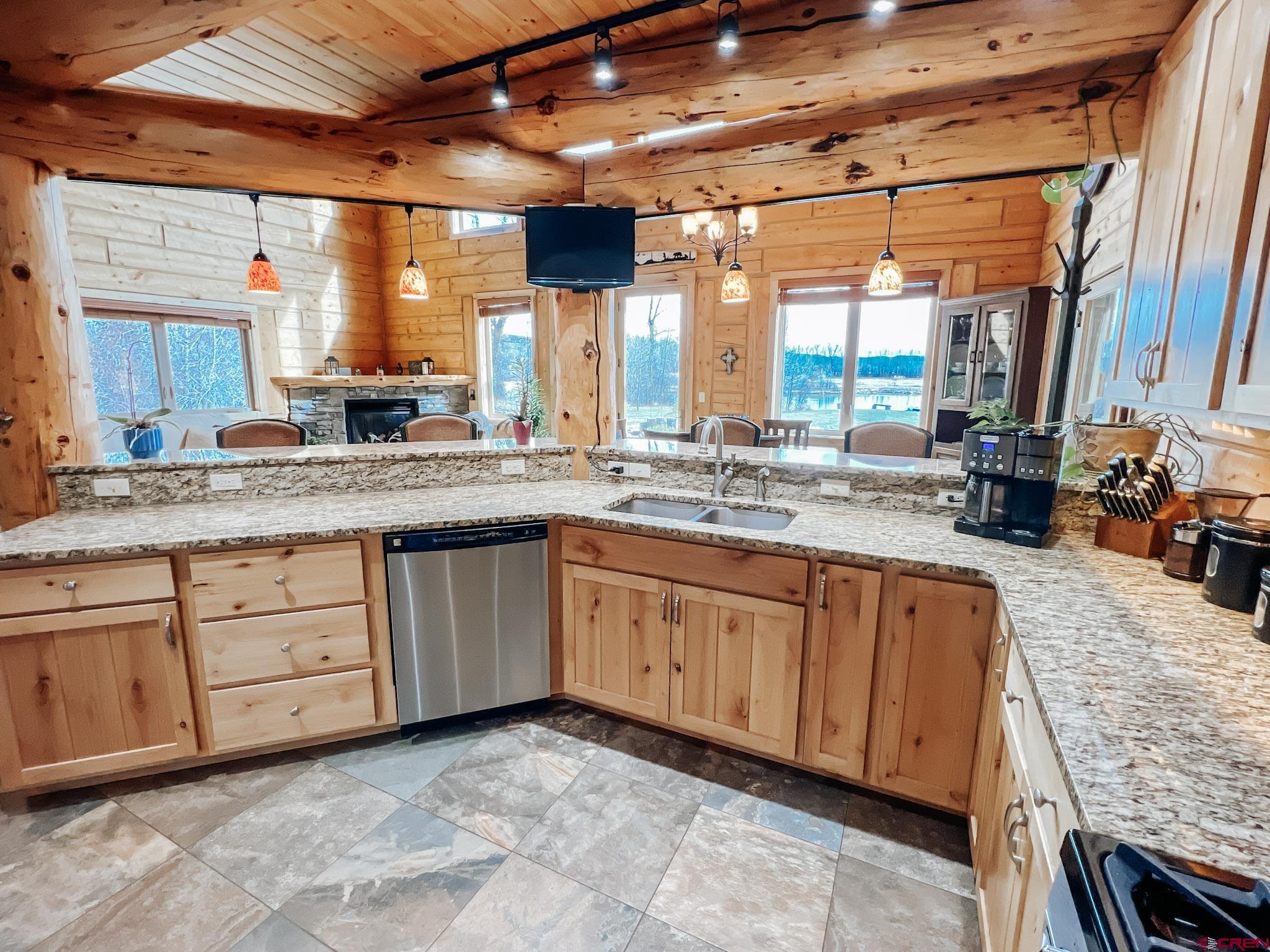 Welcome to this beautifully crafted Colorado log home in the desirable Riverwalk Estates community, set on approximately one acre and built with authentic D-logs sourced right here in Colorado. Offering a rare blend of craftsmanship, comfort and warmth with in-floor radiant heath throughout and south facing windows, and an enjoyable mountain lifestyle. This neighborhood provides access to private fishing ponds, private Gunnison River access, scenic hiking trails, and abundant wildlife including moose, elk, and deer. The open-concept main level features soaring vaulted ceilings, a stunning gas fireplace, and a spacious living area filled with natural light. The kitchen is designed for both function and gathering, complete with granite countertops, a gas range, and ample space for entertaining. The main-level primary suite offers convenience and privacy, featuring a double vanity, two walk-in closets, and a well-appointed three-quarter bathroom with a shower. A laundry room and additional half bath are also located on the main level, along with access to the attached 3-car garage totaling~ 919 Sq ft. Upstairs, you’ll find flexible living spaces including additional bedrooms and loft areas, along with a three-quarter bathroom with a shower. The home is configured as a four-bedroom property; however, one bedroom does not include a closet and is currently utilized as an office. Another bedroom is set up as a custom movie theater and features additional storage space accessed through the closet. Outdoor living is just as inviting with a large deck built from Track Decking and totaling ~854 Sq Ft , a covered patio with gas hookups totaling ~313 Sq Ft, and a flagstone sidewalk that leads to a gorgeous fire pit also created from flagstone —perfect for enjoying the peaceful surroundings. The landscaped yard features newly planted trees and plenty of space to take in the natural beauty of the area, along with a bordering pond and nearby HOA pond offering opportunities for paddleboarding and kayaking. As an added bonus, the property includes a small guest cabin for owner use, providing a comfortable space for visiting guests. Conveniently located just minutes from Gunnison and within walking distance to Garlic Mike’s, this home offers the perfect balance of privacy, recreation, and accessibility in one of the area’s most sought-after communities. Buyer to verify all square footage.