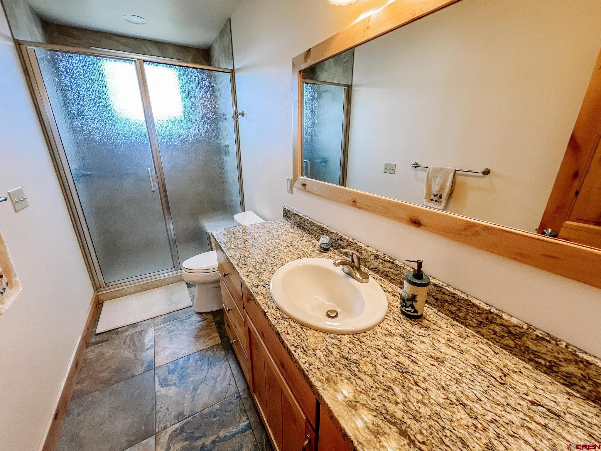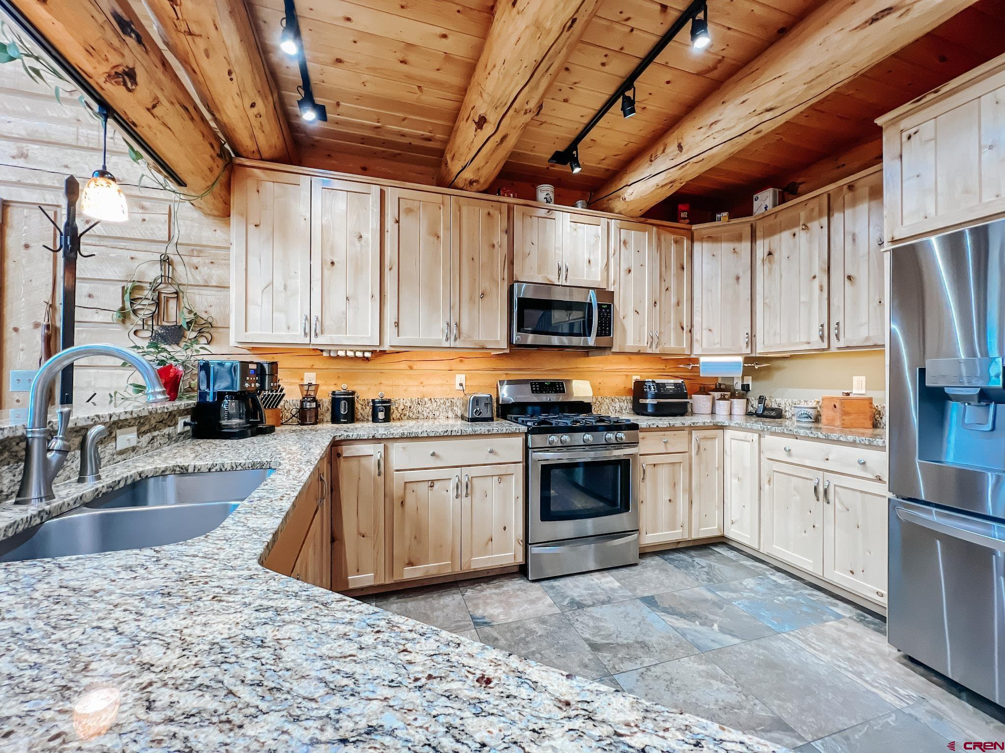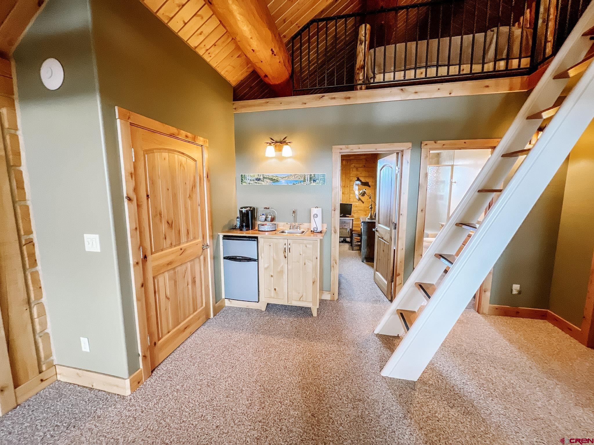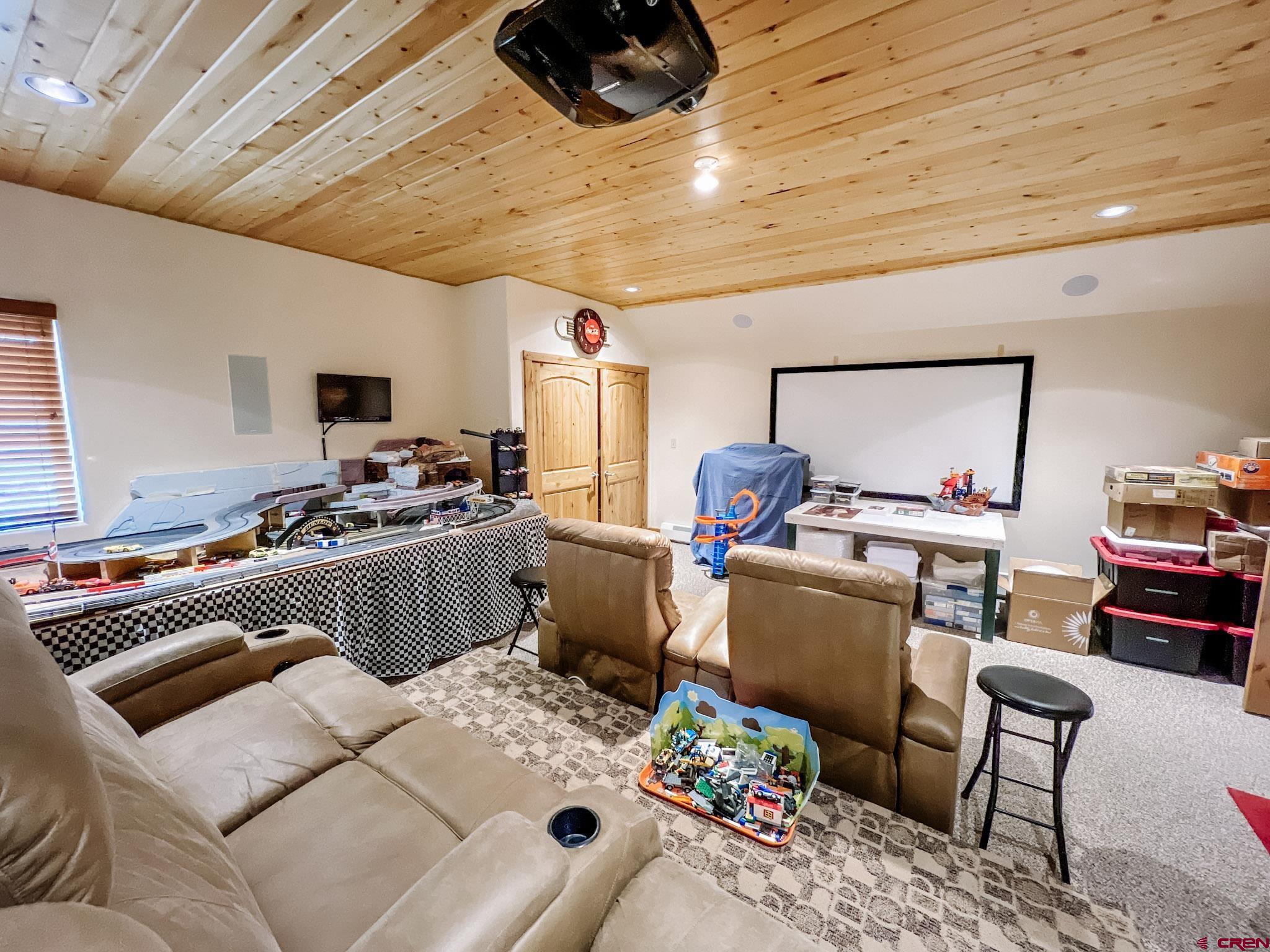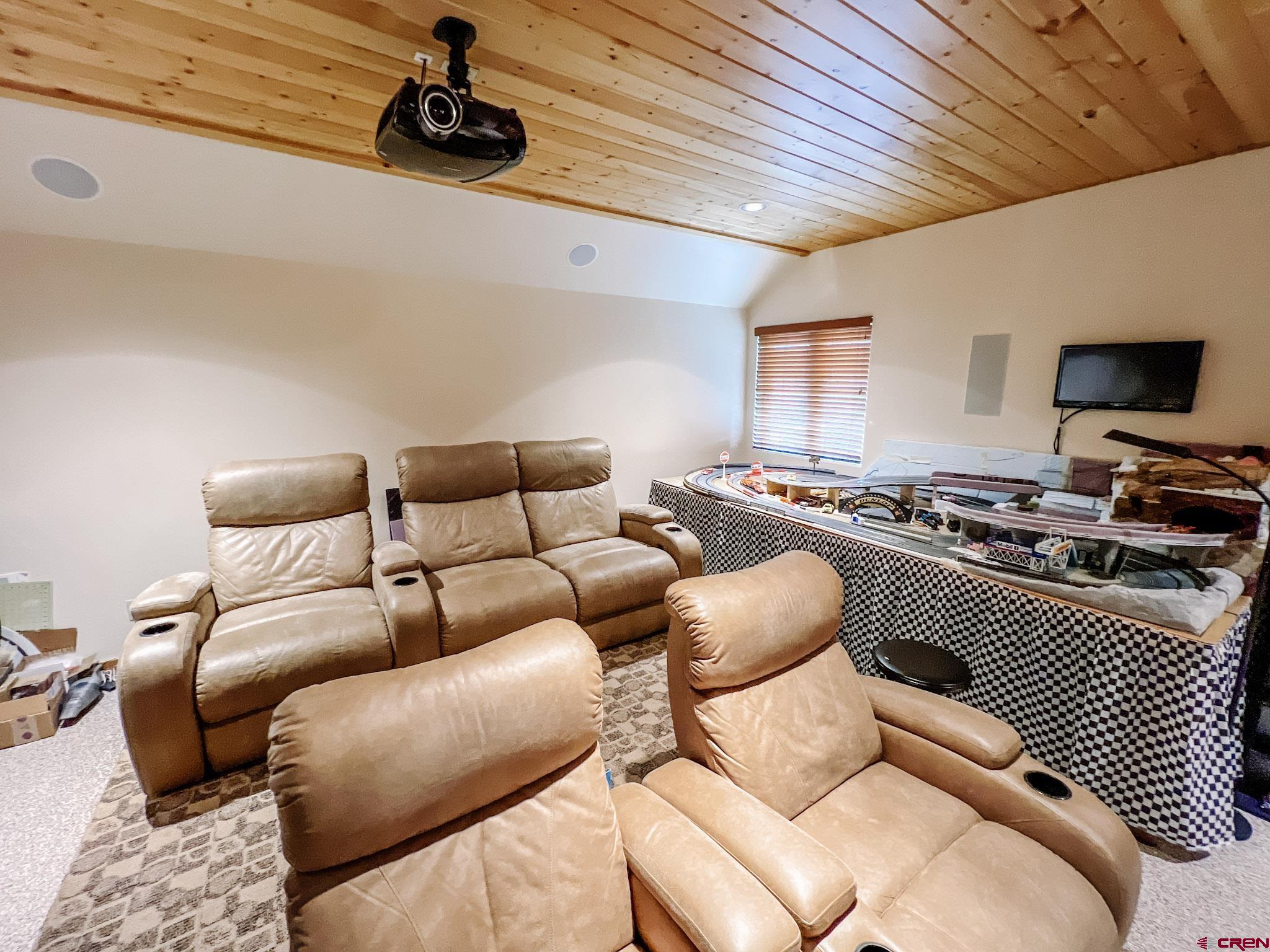 Welcome to this beautifully crafted Colorado log home in the desirable Riverwalk Estates community, set on approximately one acre and built with authentic D-logs sourced right here in Colorado. Offering a rare blend of craftsmanship, comfort and warmth with in-floor radiant heath throughout and south facing windows, and an enjoyable mountain lifestyle. This neighborhood provides access to private fishing ponds, private Gunnison River access, scenic hiking trails, and abundant wildlife including moose, elk, and deer. The open-concept main level features soaring vaulted ceilings, a stunning gas fireplace, and a spacious living area filled with natural light. The kitchen is designed for both function and gathering, complete with granite countertops, a gas range, and ample space for entertaining. The main-level primary suite offers convenience and privacy, featuring a double vanity, two walk-in closets, and a well-appointed three-quarter bathroom with a shower. A laundry room and additional half bath are also located on the main level, along with access to the attached 3-car garage totaling~ 919 Sq ft. Upstairs, you’ll find flexible living spaces including additional bedrooms and loft areas, along with a three-quarter bathroom with a shower. The home is configured as a four-bedroom property; however, one bedroom does not include a closet and is currently utilized as an office. Another bedroom is set up as a custom movie theater and features additional storage space accessed through the closet. Outdoor living is just as inviting with a large deck built from Track Decking and totaling ~854 Sq Ft , a covered patio with gas hookups totaling ~313 Sq Ft, and a flagstone sidewalk that leads to a gorgeous fire pit also created from flagstone —perfect for enjoying the peaceful surroundings. The landscaped yard features newly planted trees and plenty of space to take in the natural beauty of the area, along with a bordering pond and nearby HOA pond offering opportunities for paddleboarding and kayaking. As an added bonus, the property includes a small guest cabin for owner use, providing a comfortable space for visiting guests. Conveniently located just minutes from Gunnison and within walking distance to Garlic Mike’s, this home offers the perfect balance of privacy, recreation, and accessibility in one of the area’s most sought-after communities. Buyer to verify all square footage.